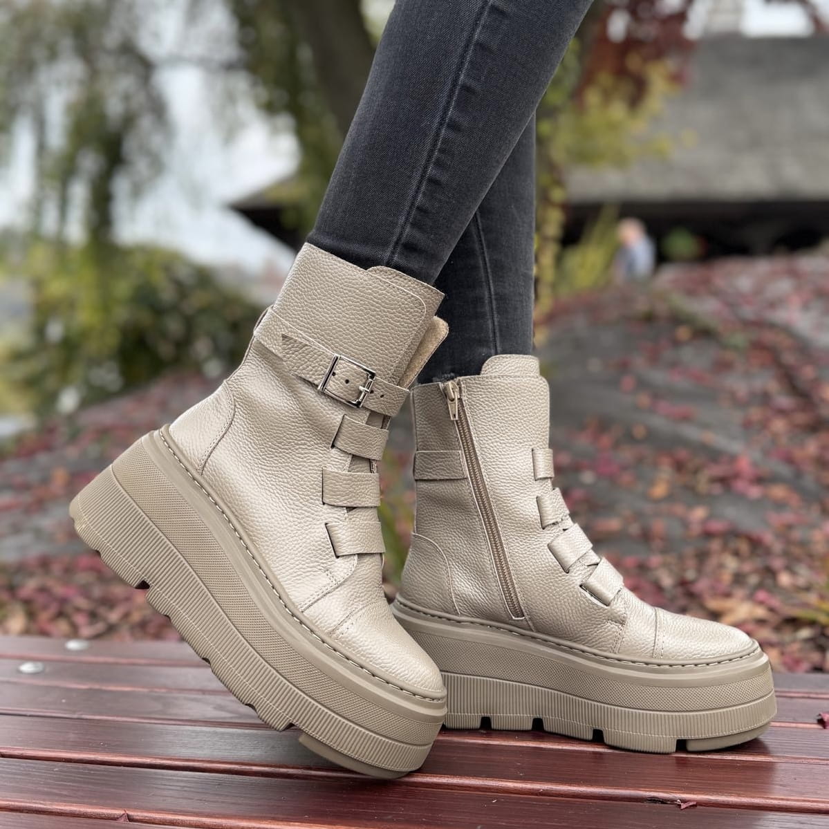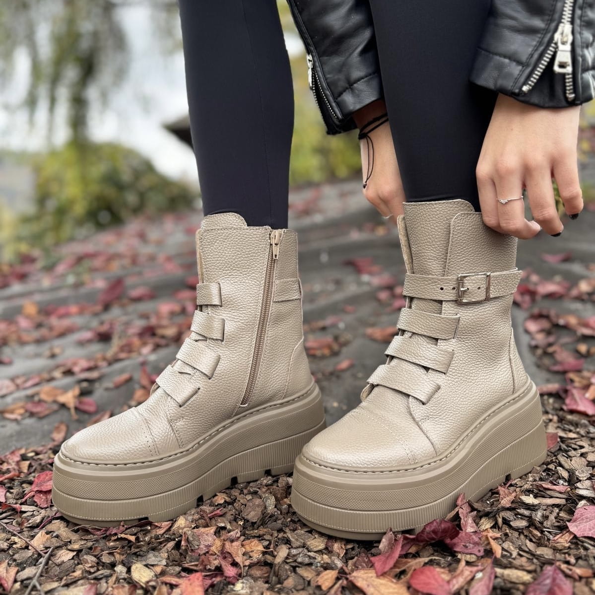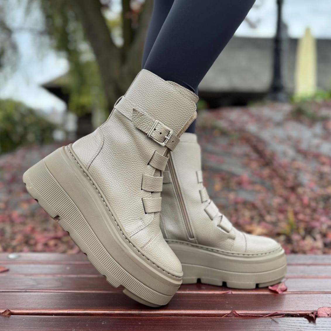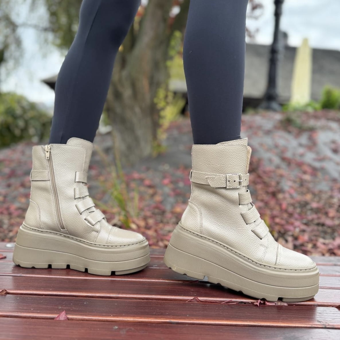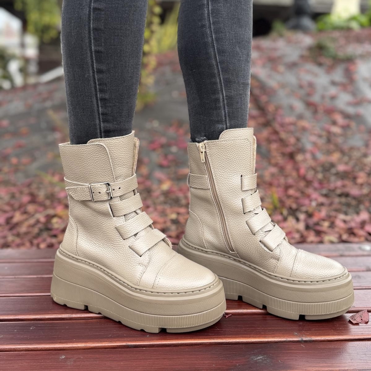 Beżowe Botki Damskie na podwyższonej podeszwie LURSO model DAGIE BEIGE