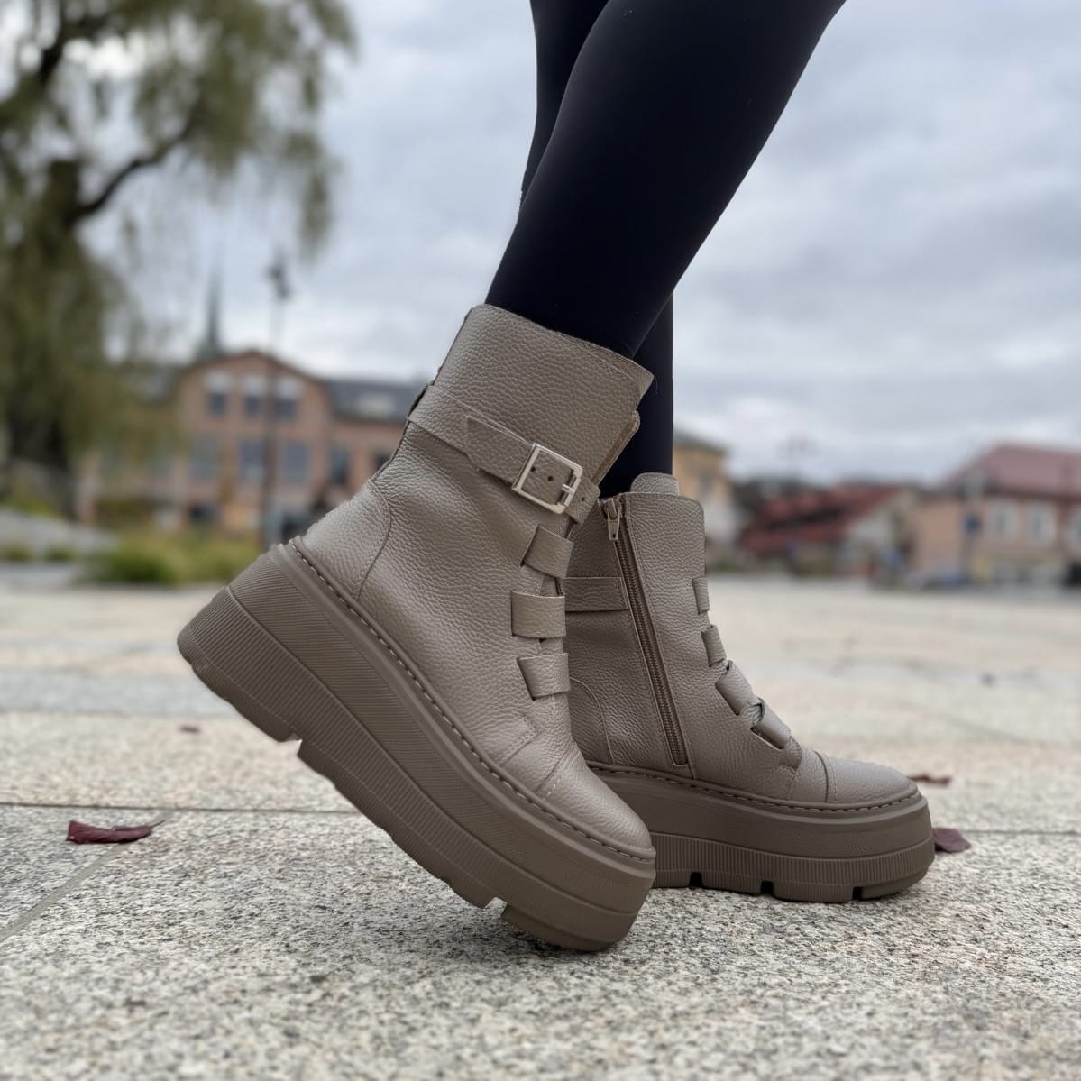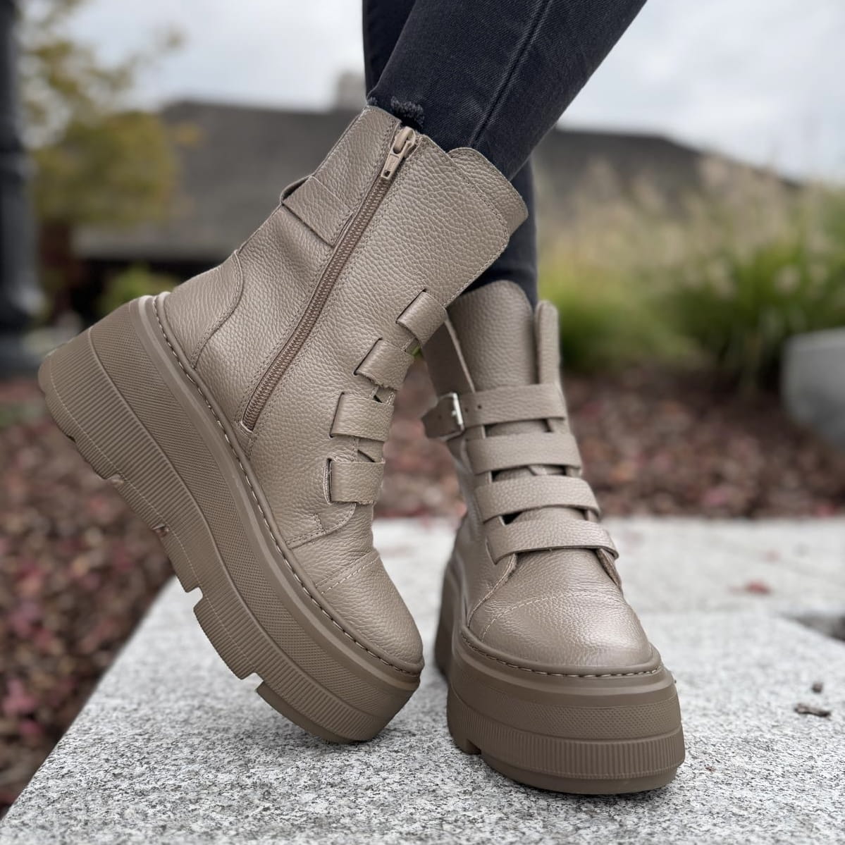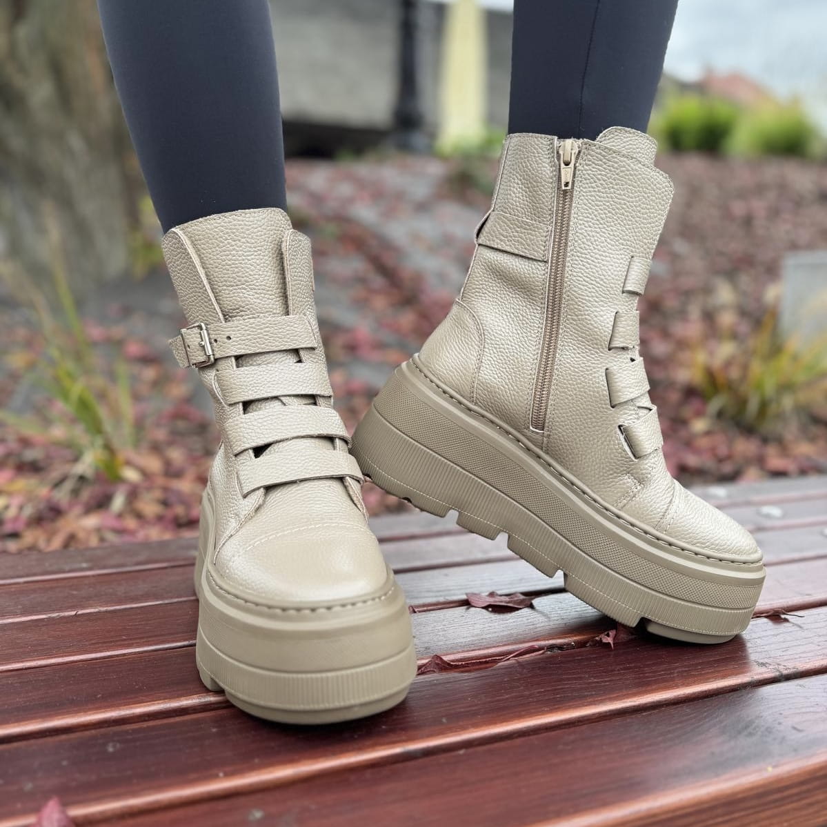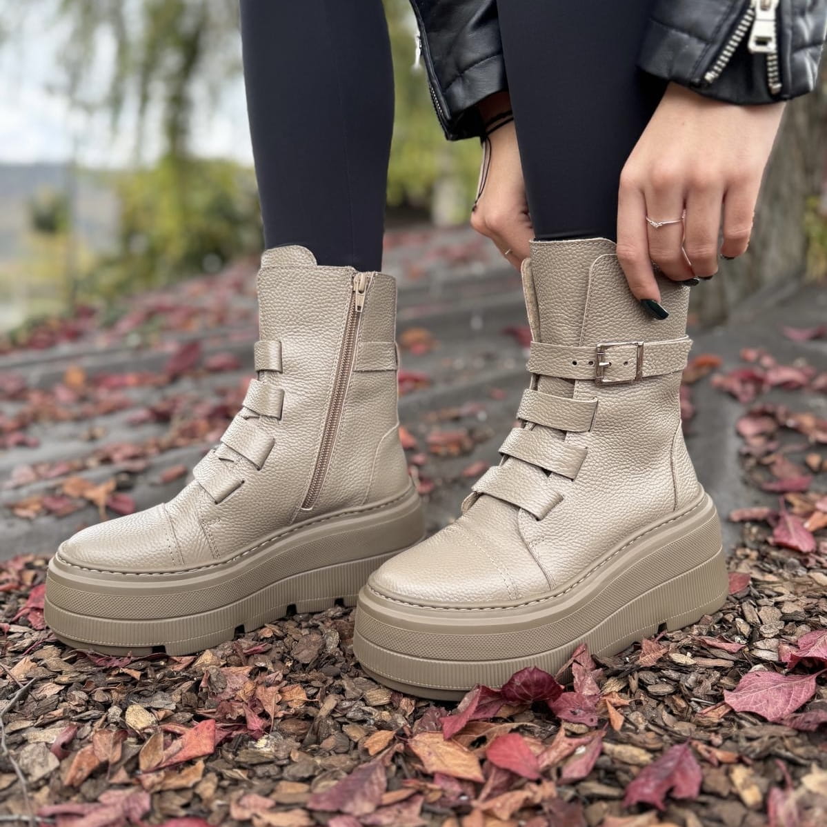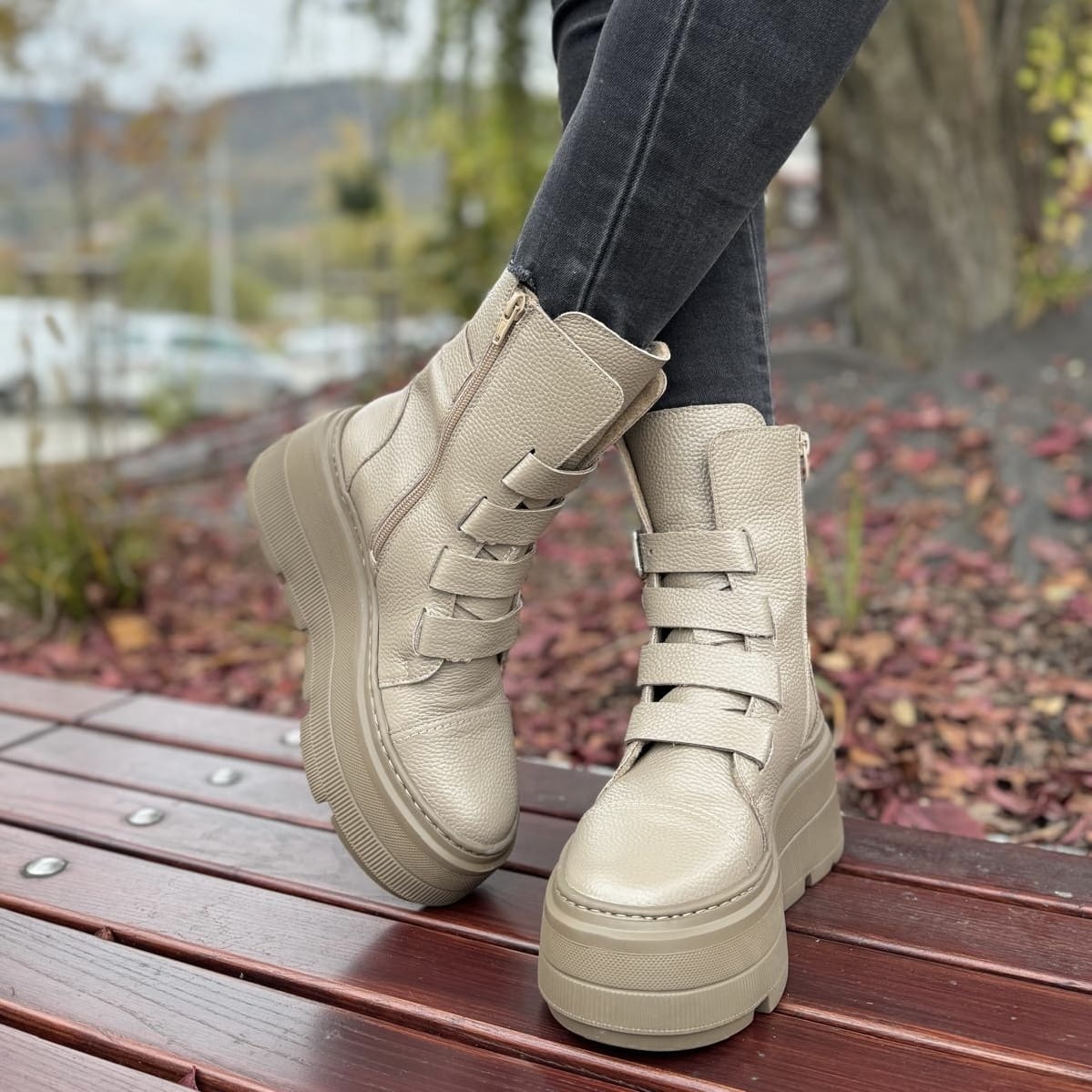 Beżowe Botki Damskie na podwyższonej podeszwie LURSO model DAGIE BEIGE