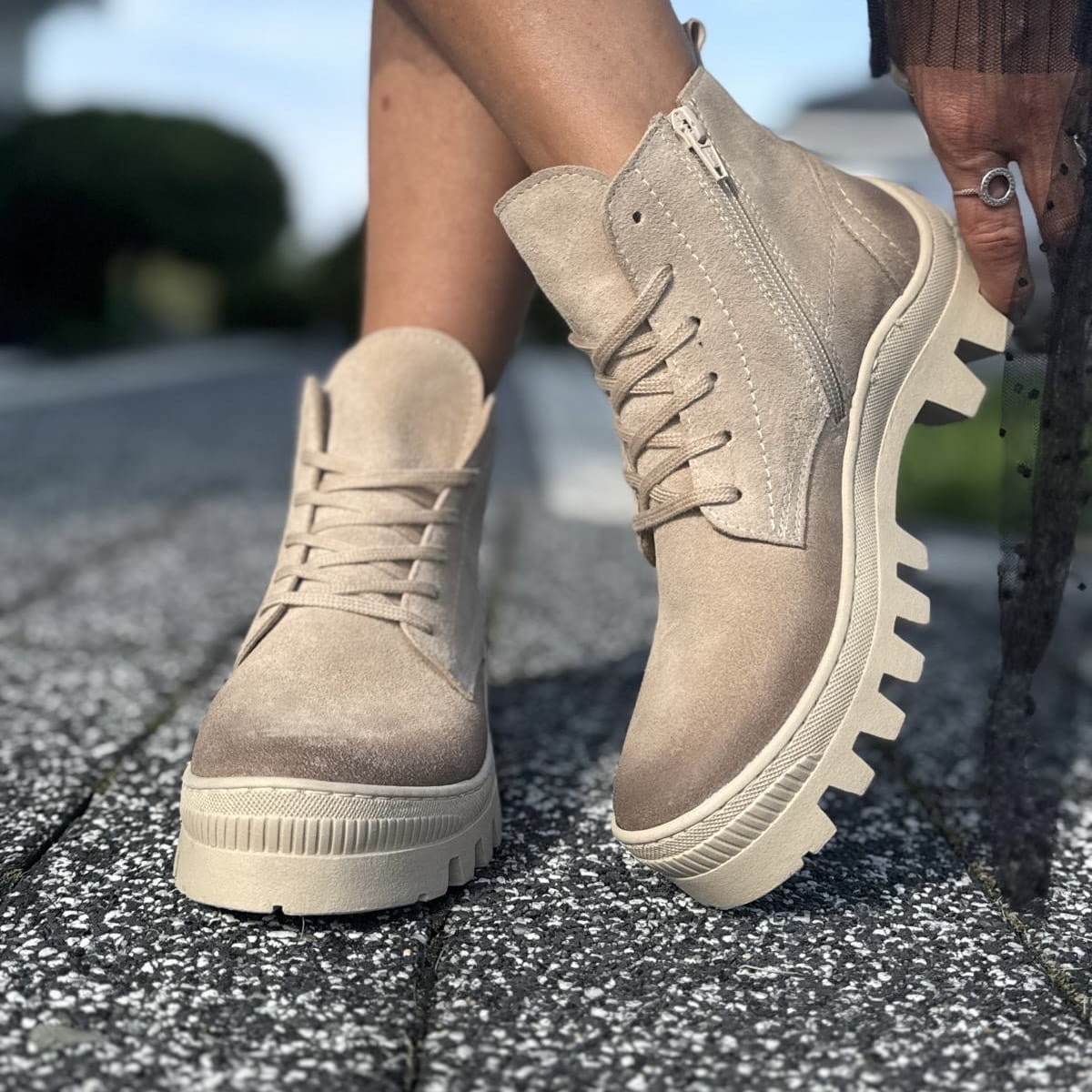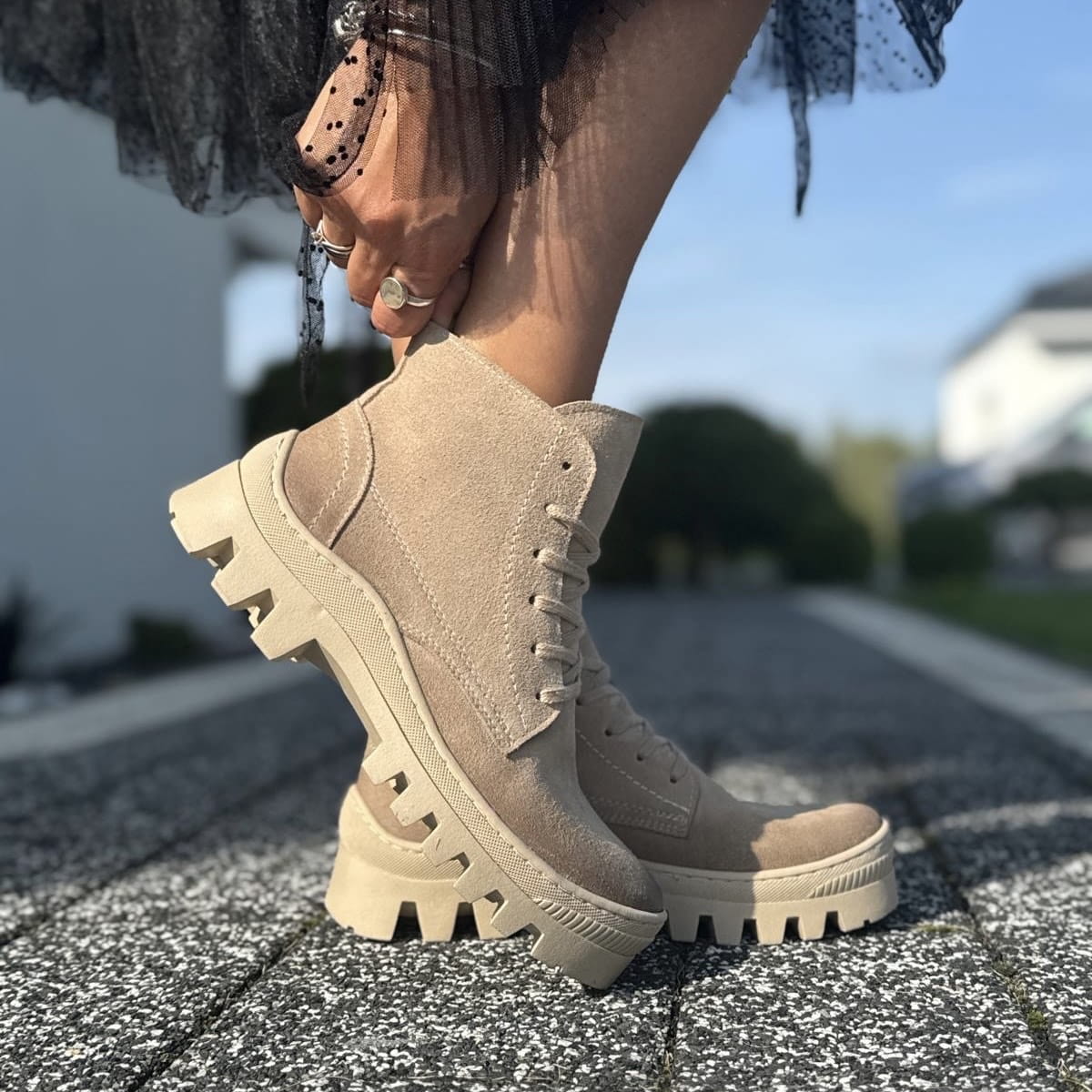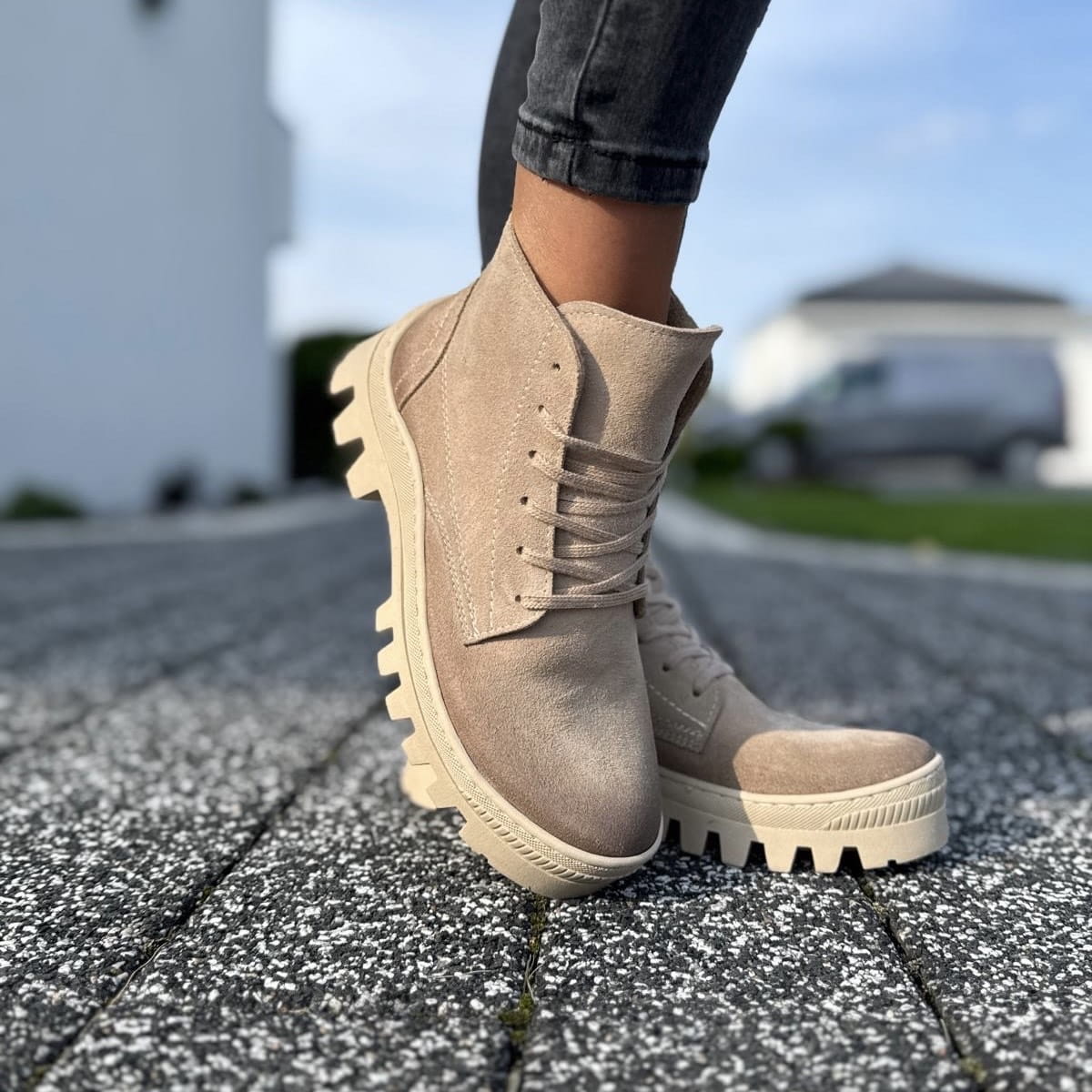 Beżowe Ocieplane Traperki Damskie LURSO model TORPE BEIGE skóra naturalna