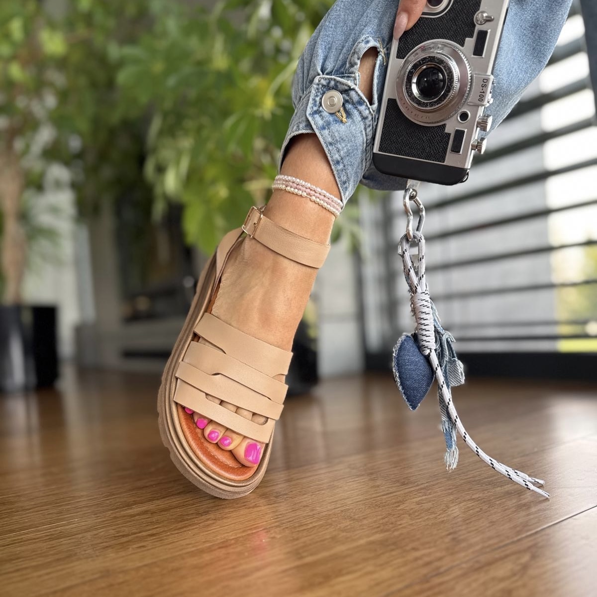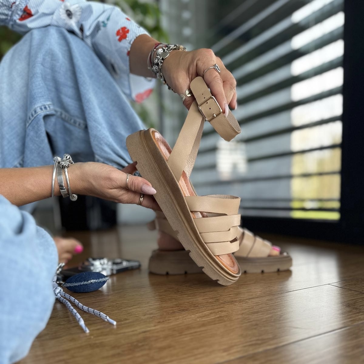 Przepiękne skórzane sandały damskie POZZO BEIGE