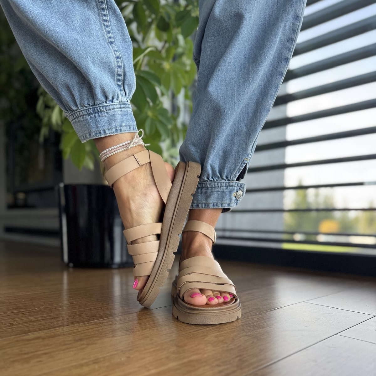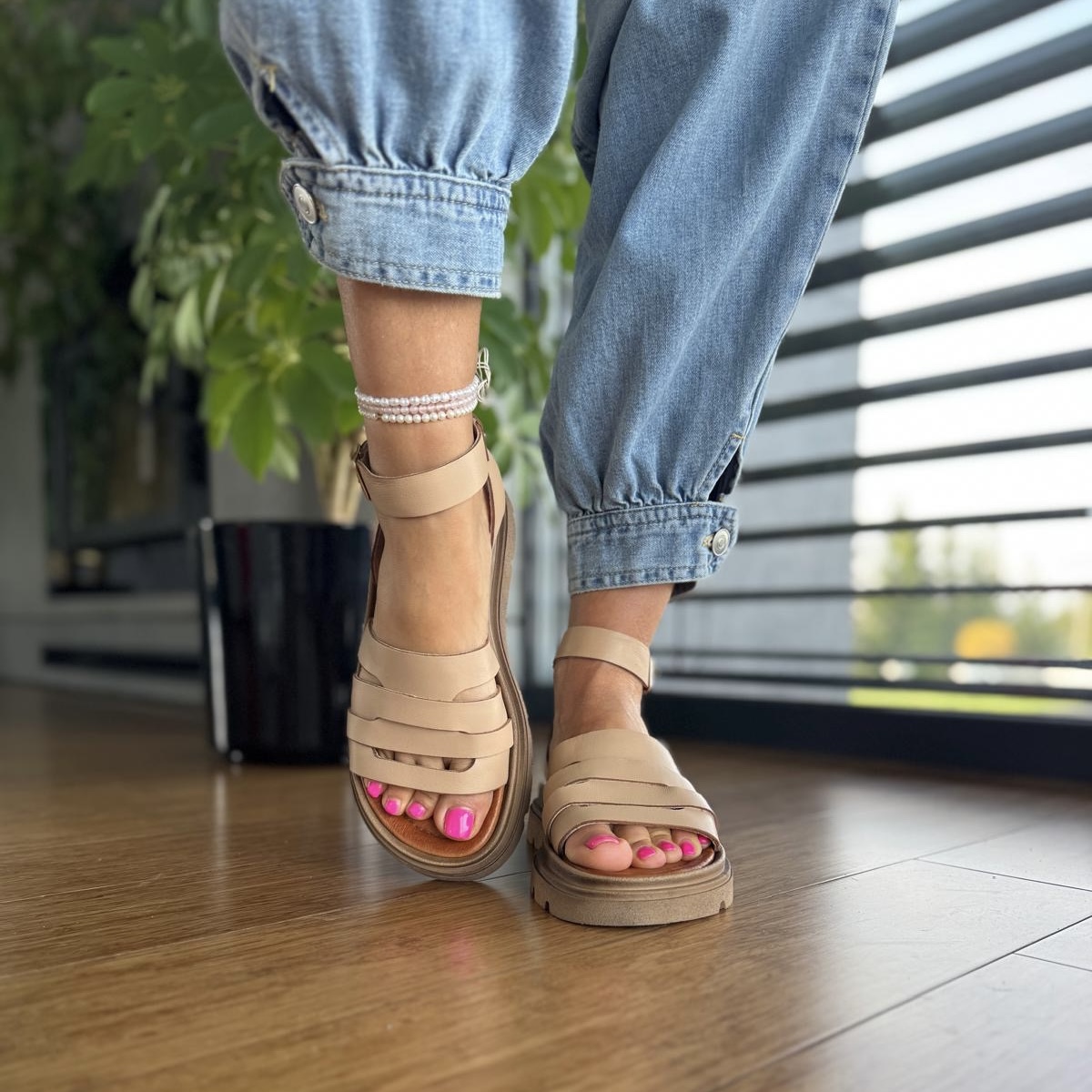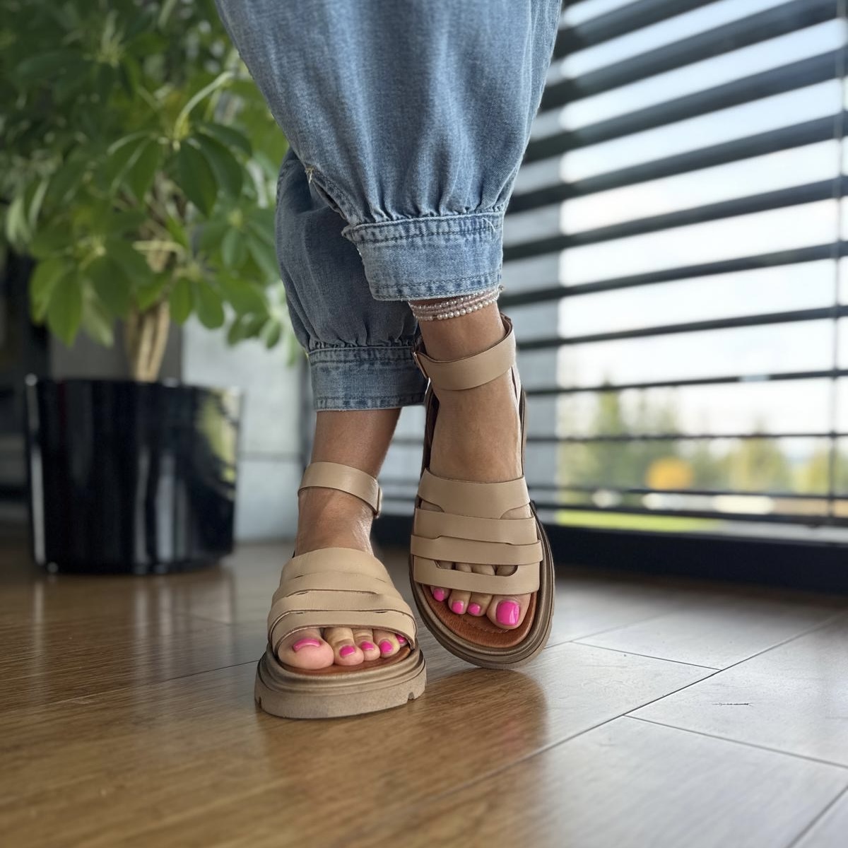 Beżowe Sandały Damskie LURSO model POZZO BEIGE skóra naturalna