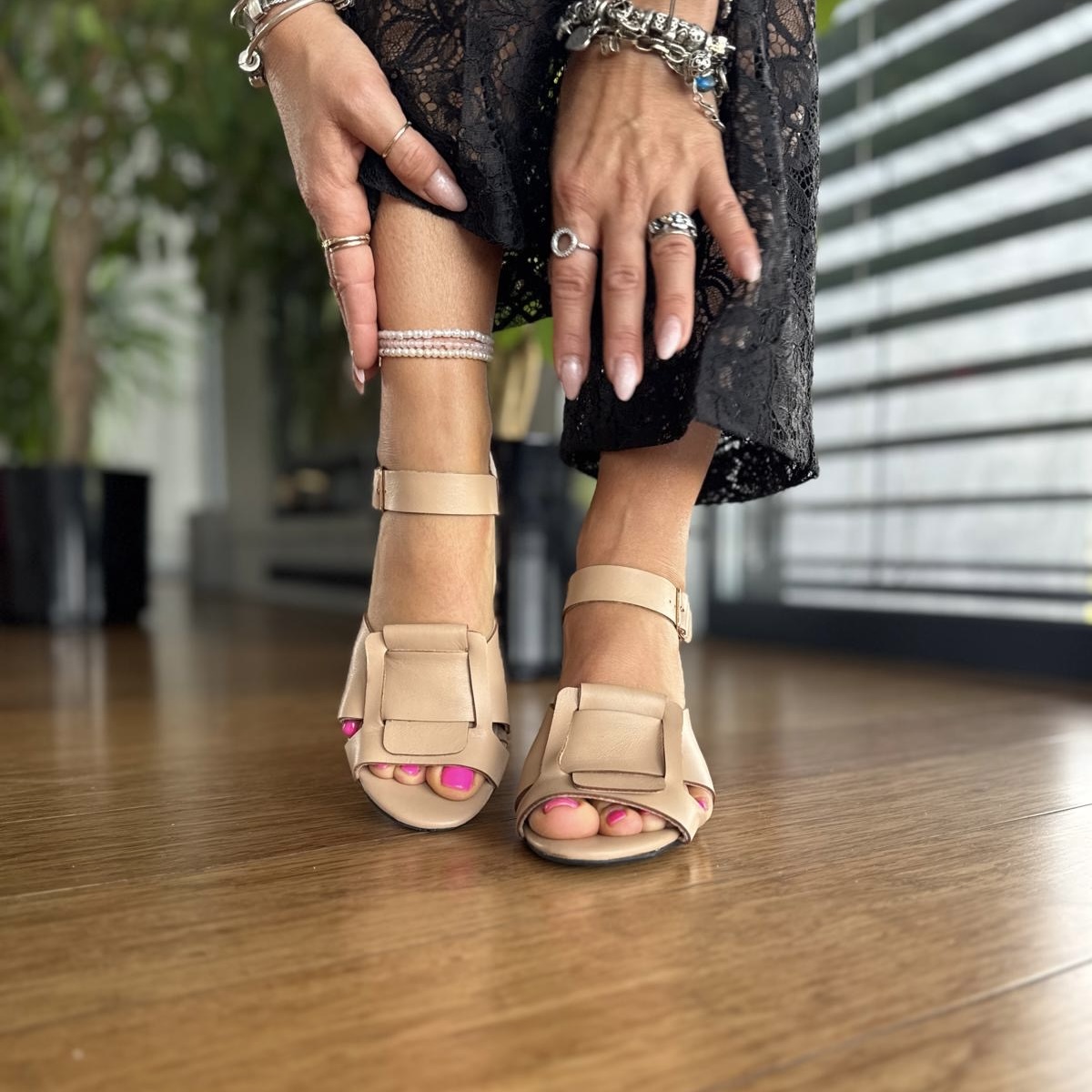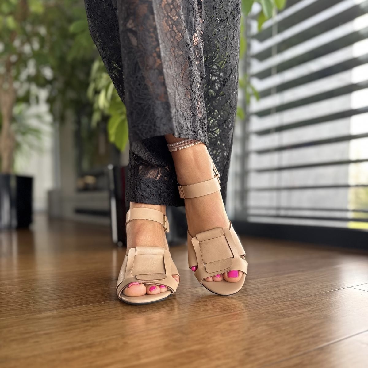 Beżowe Sandały Damskie na obcasie LURSO model FERRIO BEIGE skóra naturalna