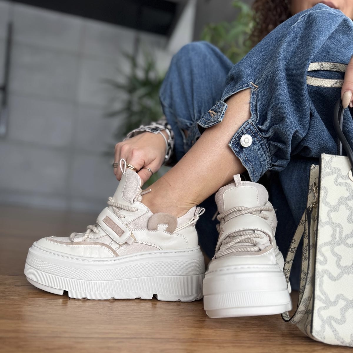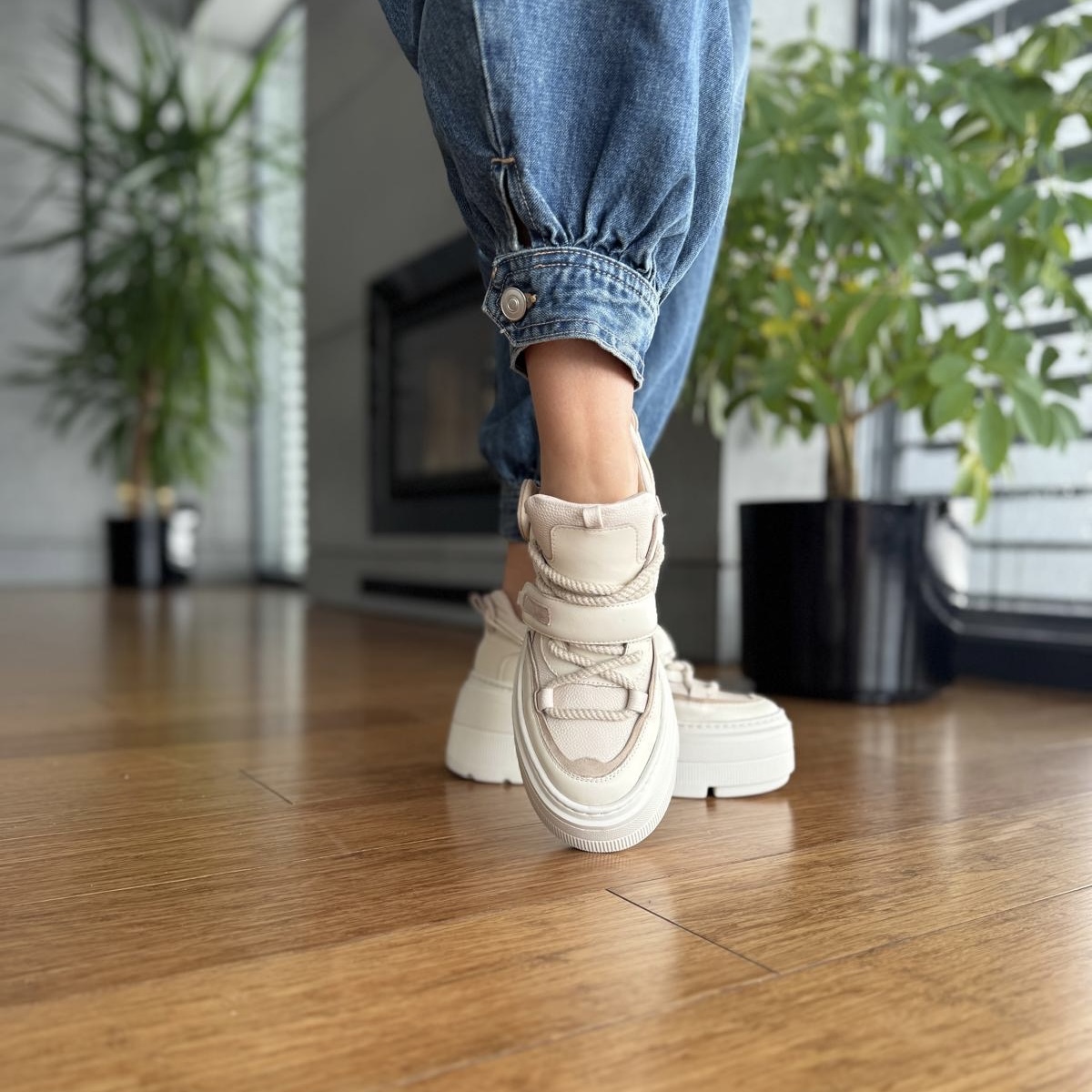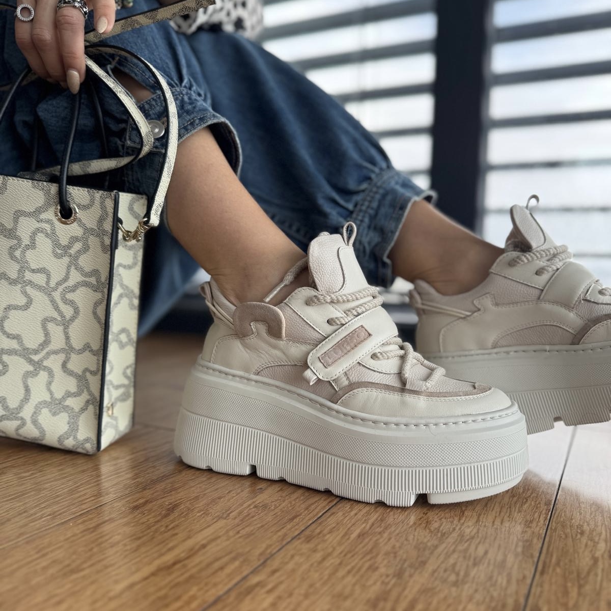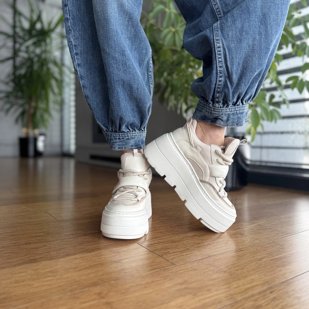 Beżowe Sneakersy Damskie na platformie ALTREI BEIGE skóra naturalna