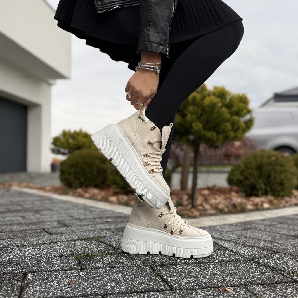 Beżowe Sneakersy Damskie na wysokiej podeszwie LURSO model BUSI BEIGE skóra naturalna