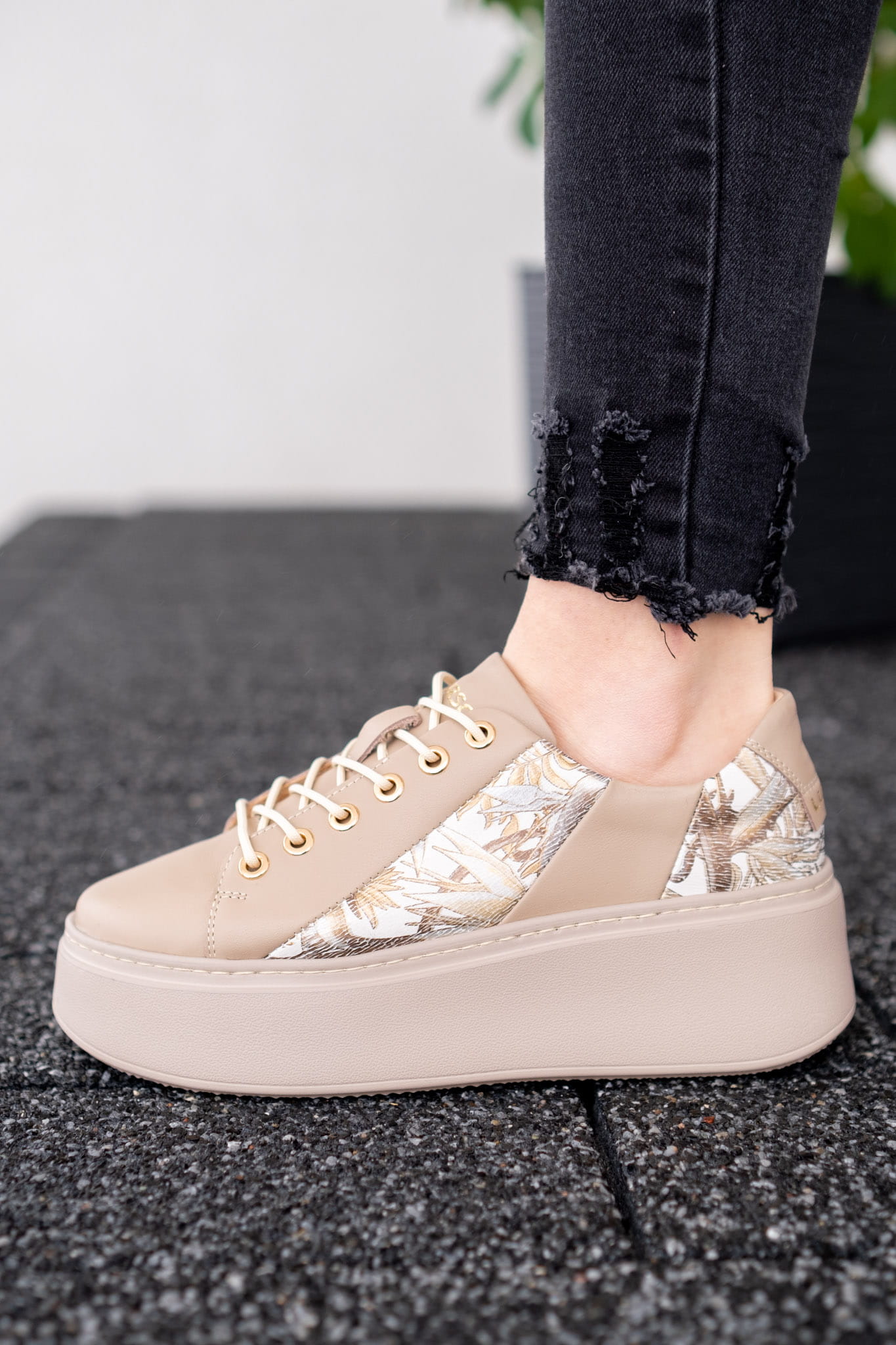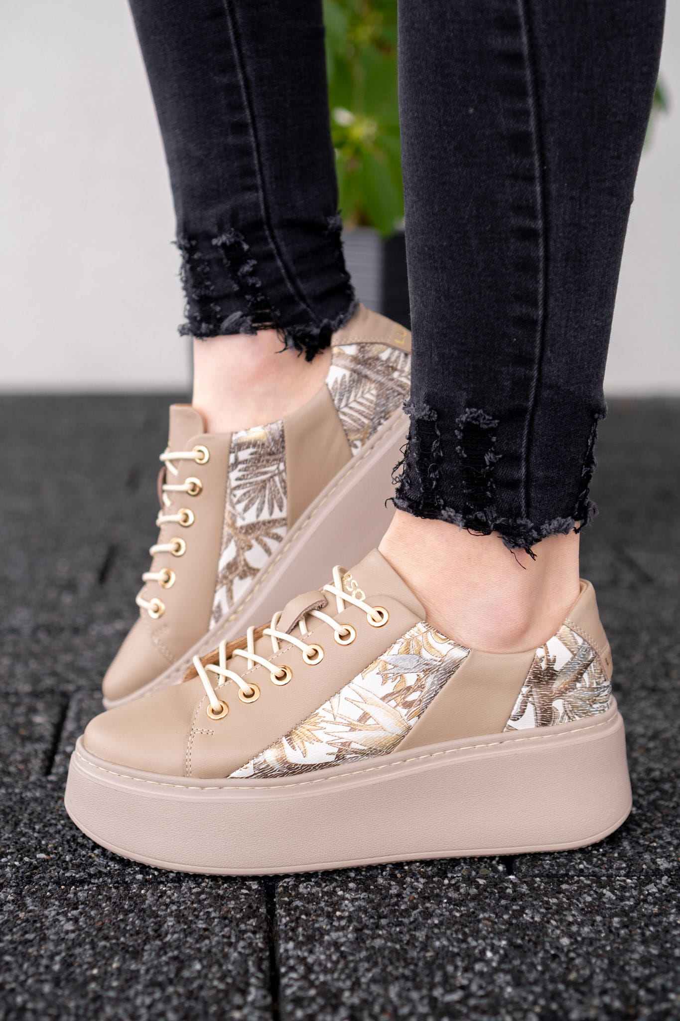 Beżowe Trampki Damskie LURSO model AGATHE BEIGE skóra naturalna