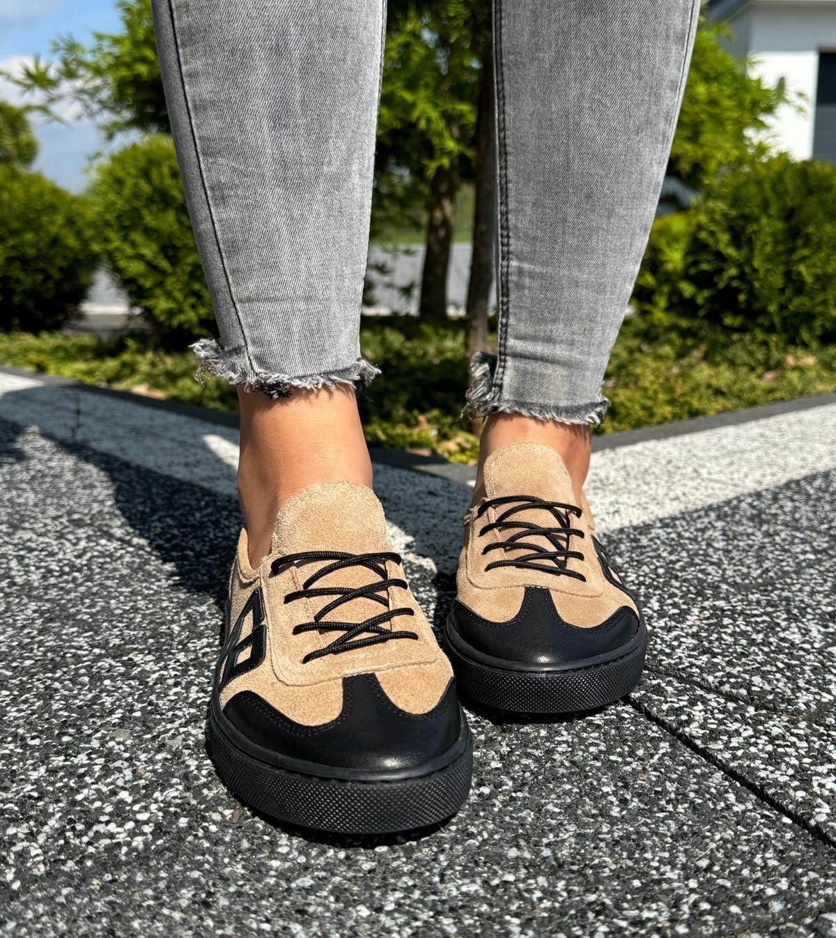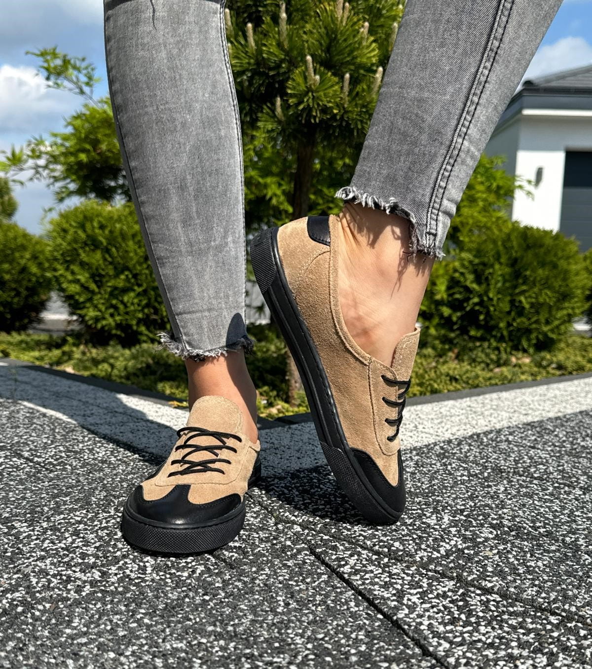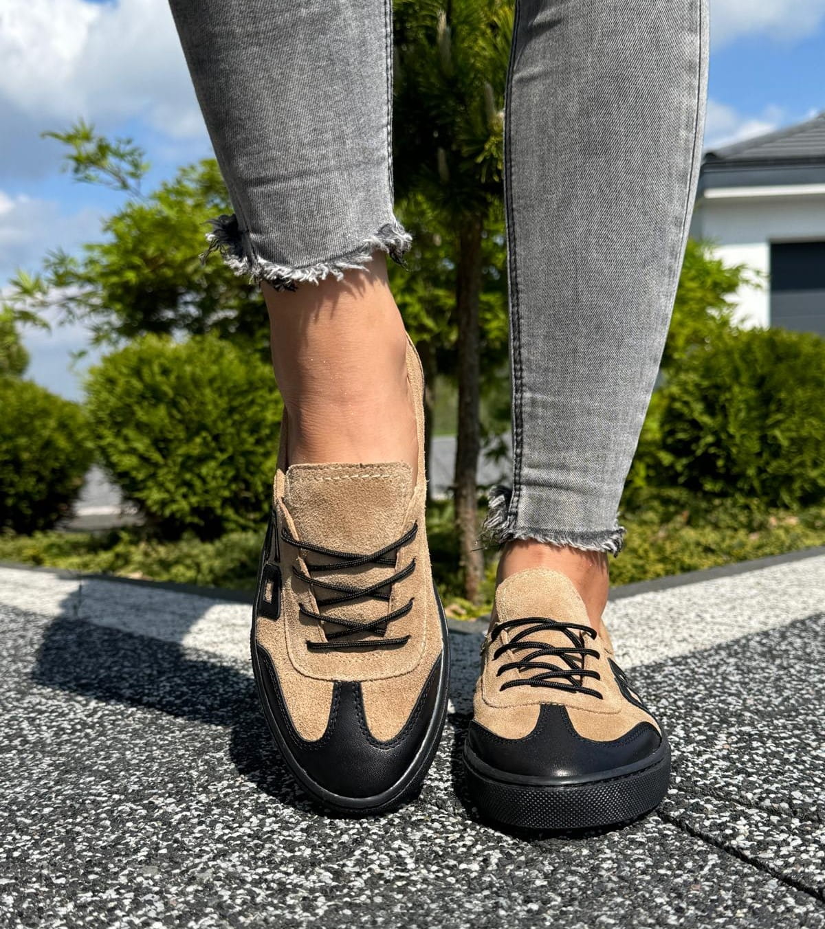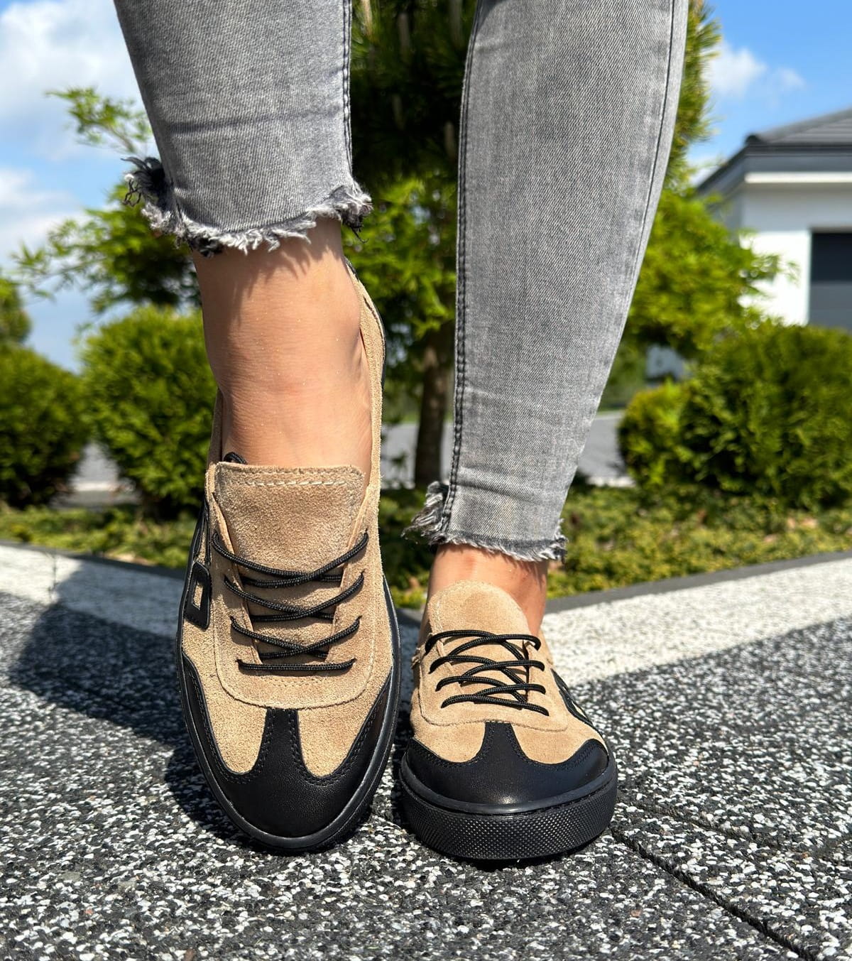 Beżowo-czarny Trampek Damski LURSO model ALGHERO BEIGE skóra naturalna