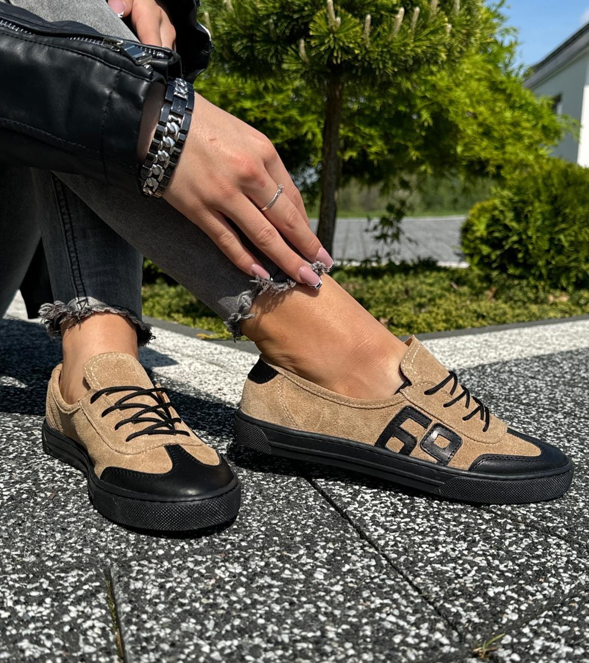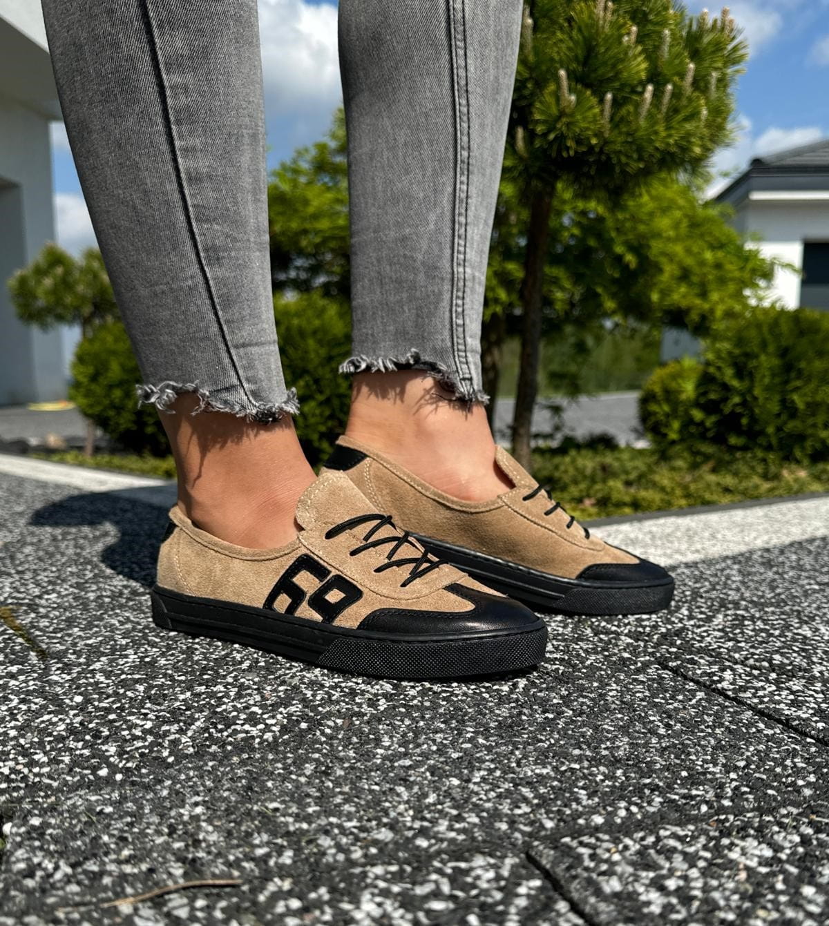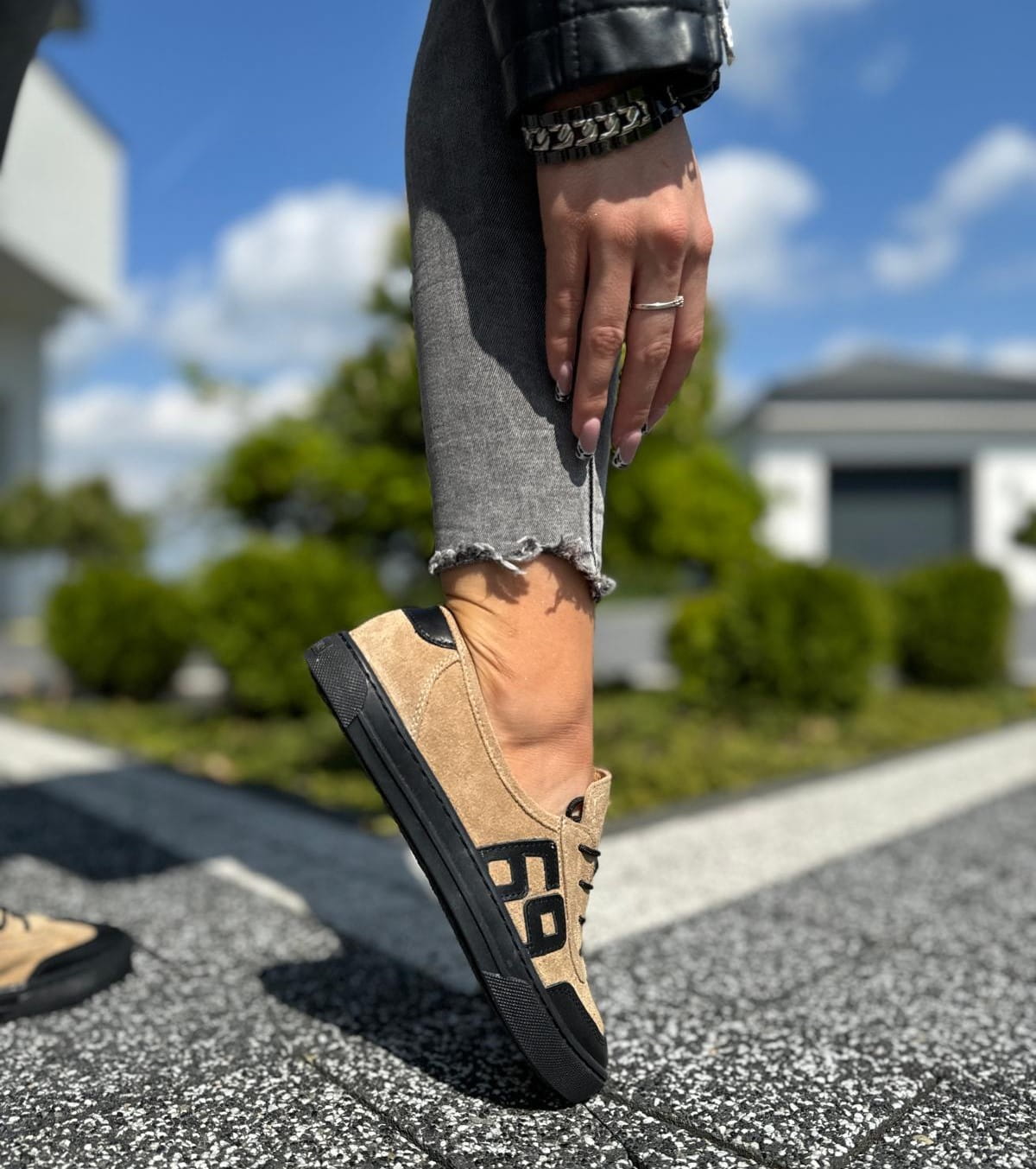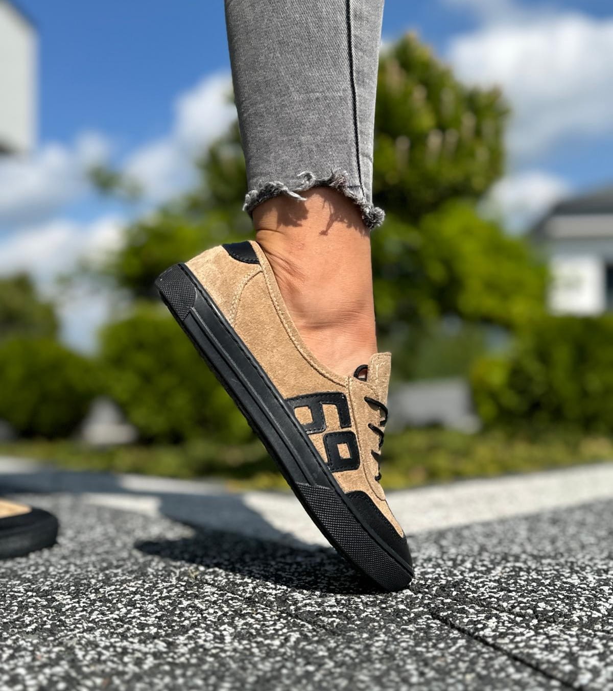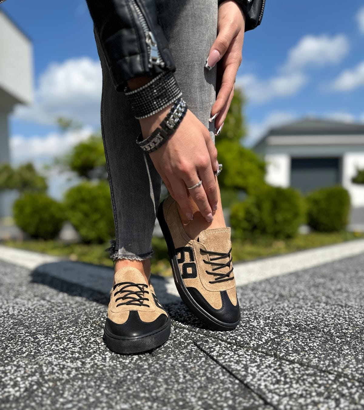 Beżowo-czarny Trampek Damski LURSO model ALGHERO BEIGE skóra naturalna