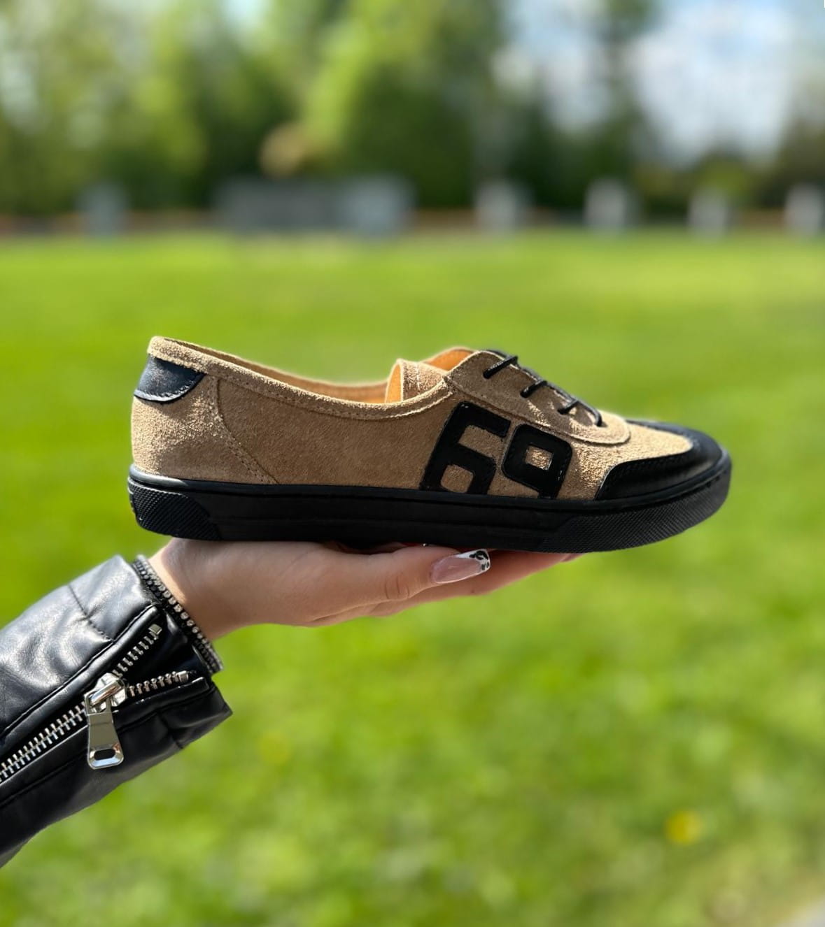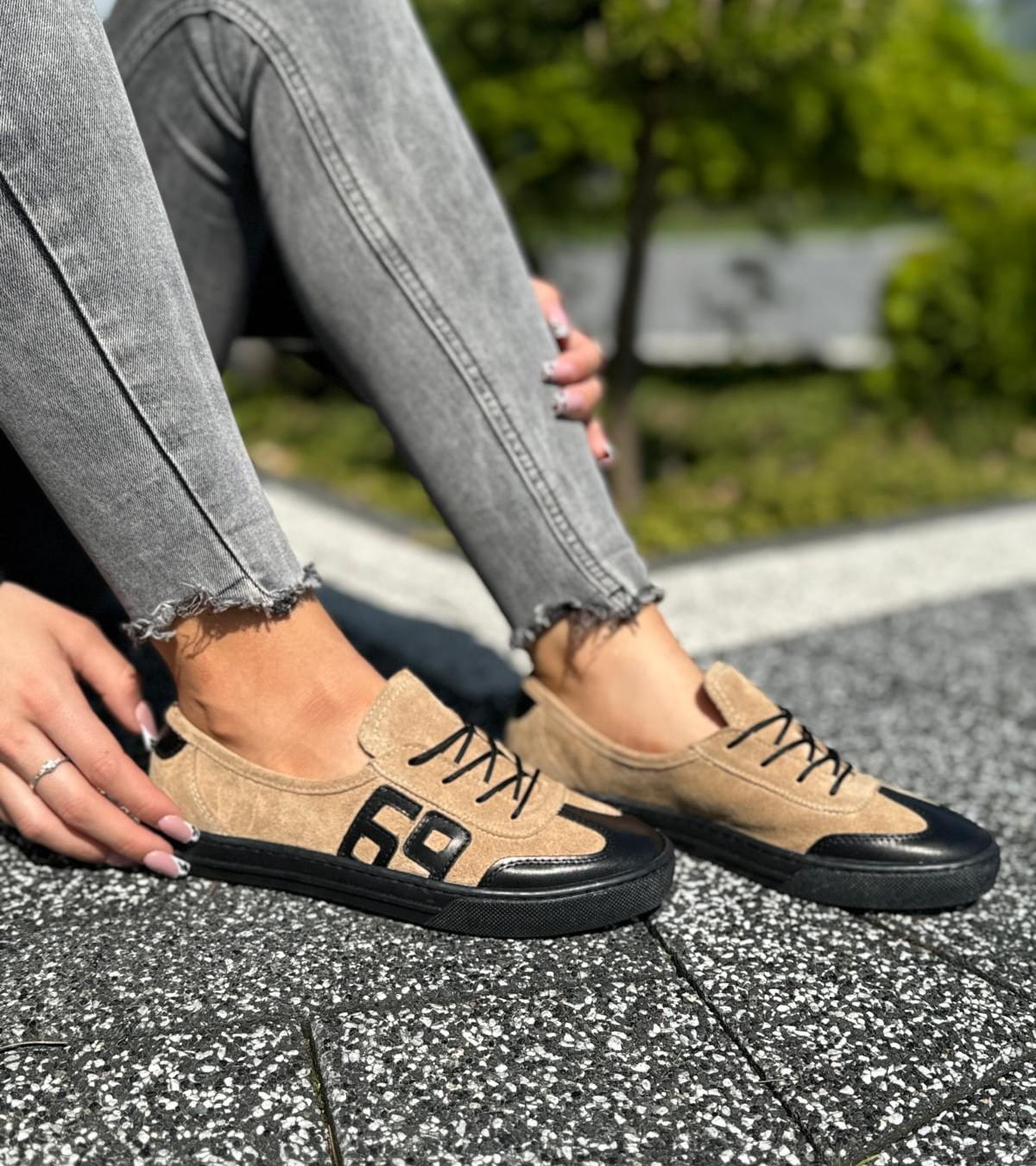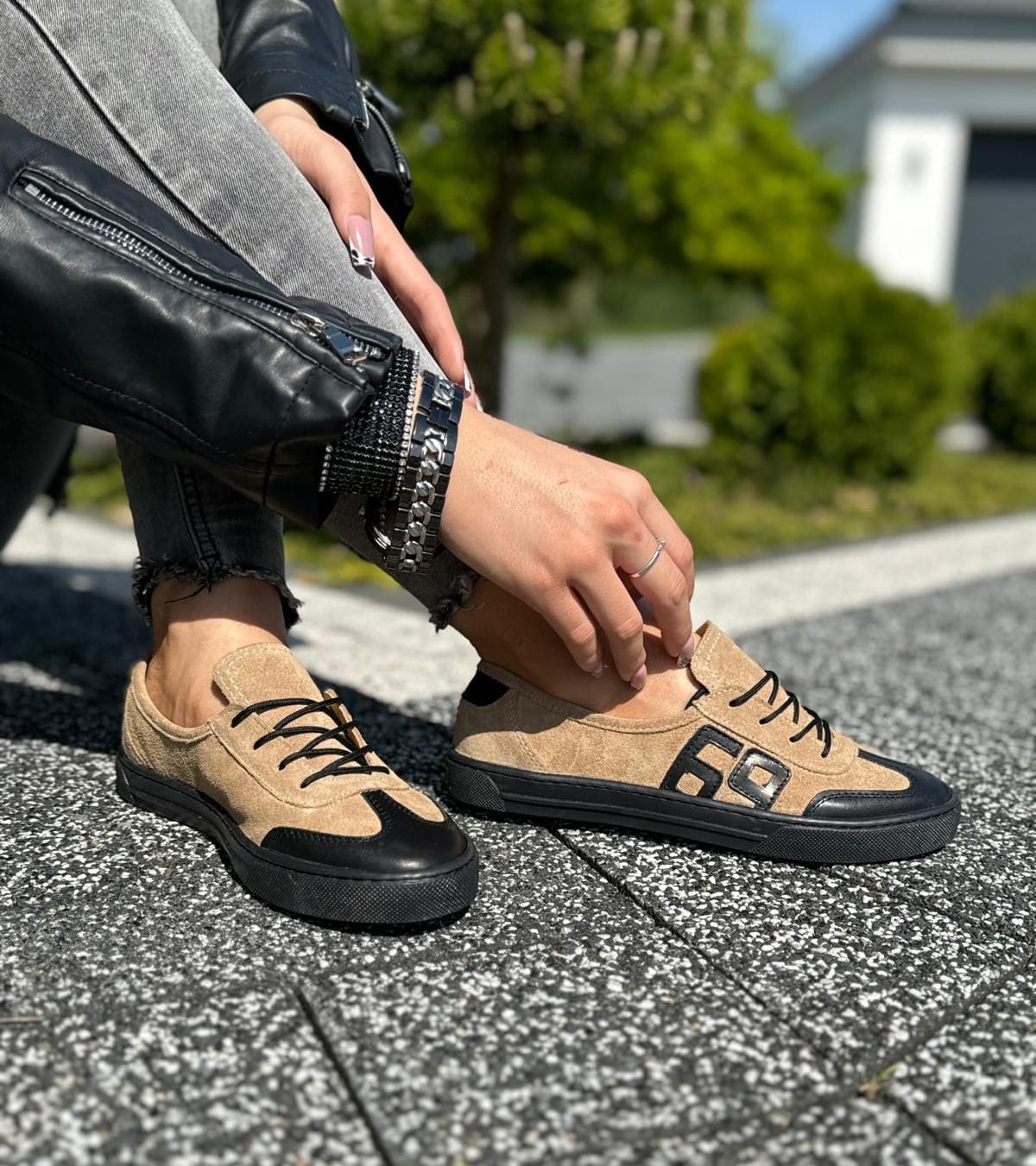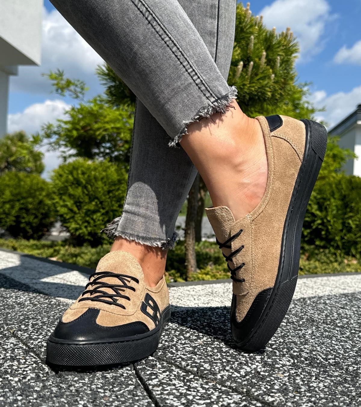 Beżowo-czarny Trampek Damski LURSO model ALGHERO BEIGE skóra naturalna
