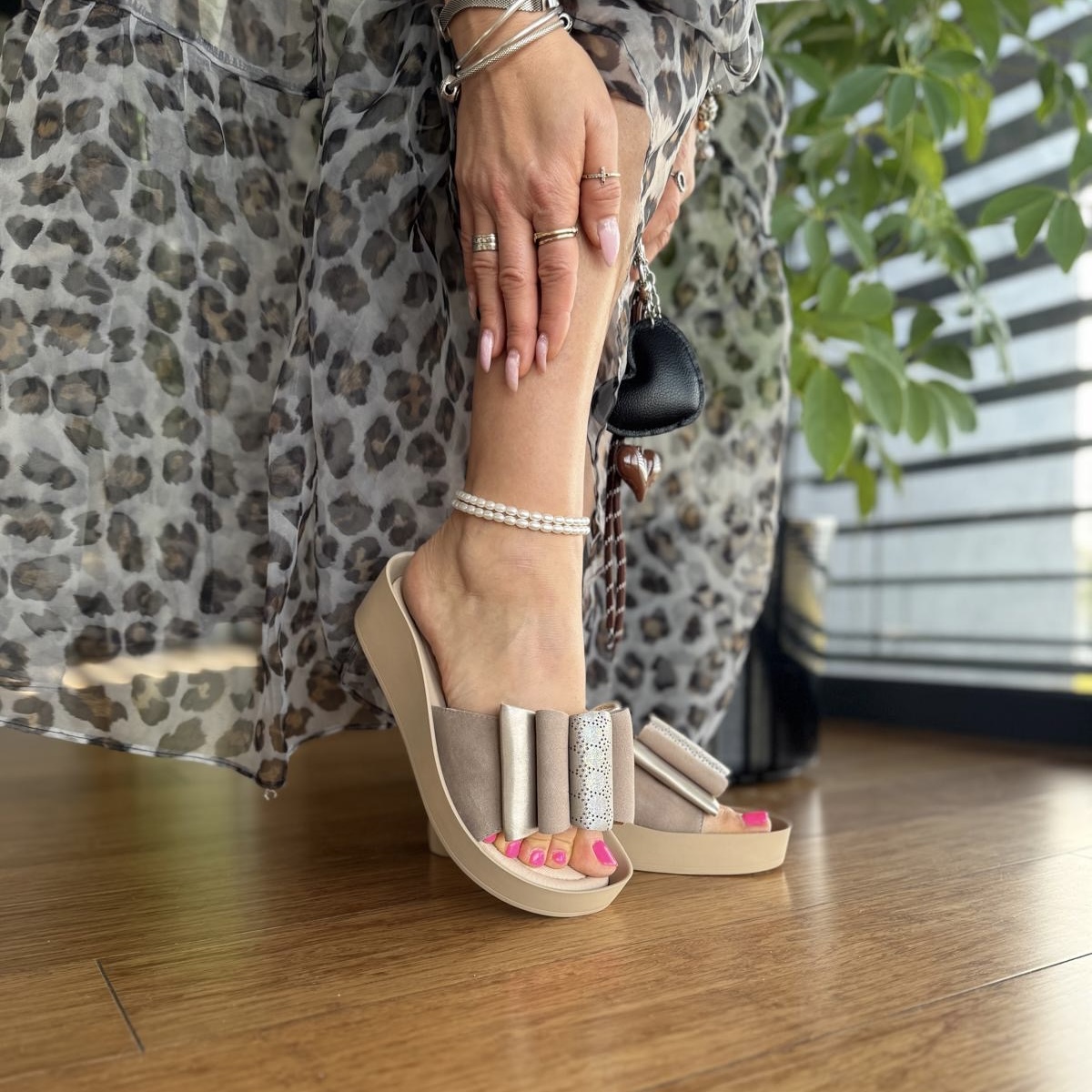 Pieve to cudowne klapki damskie. Buty zostały ozdobione bardzo oryginalną, skórzaną i wykonaną ręcznie ozdobą. Zastosowana podeszwa jest bardzo wygodna i lekka.