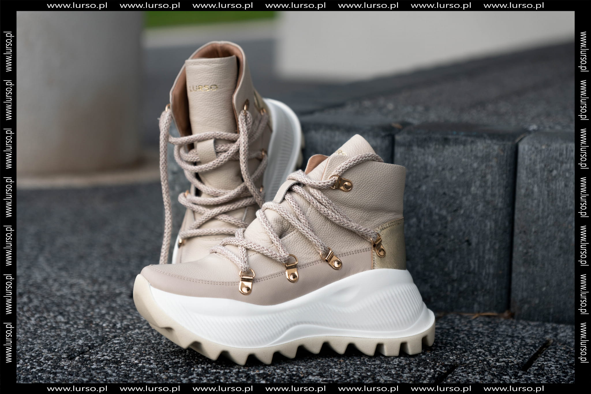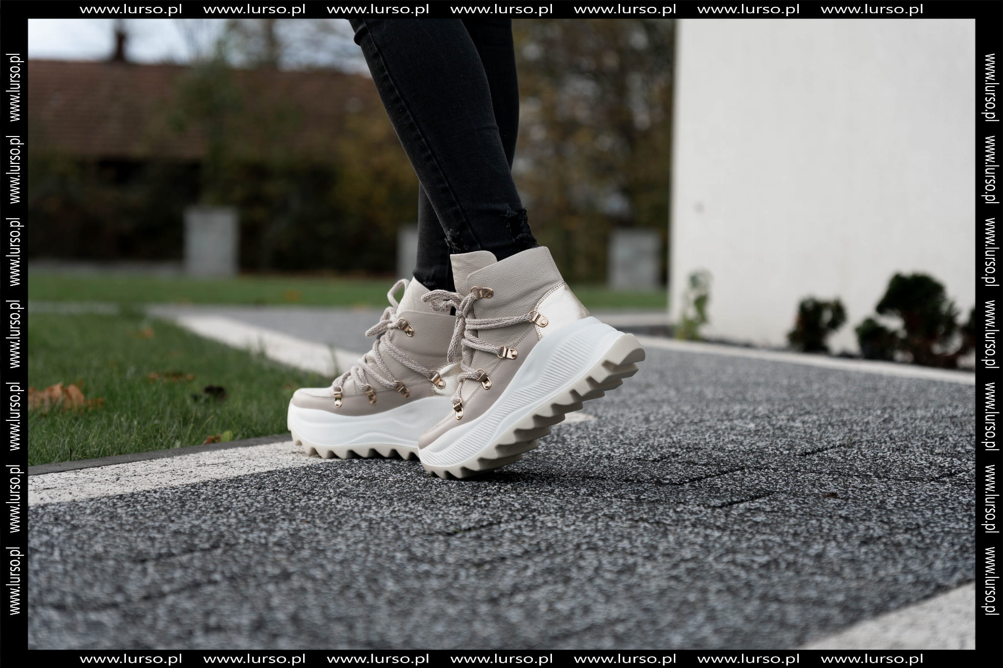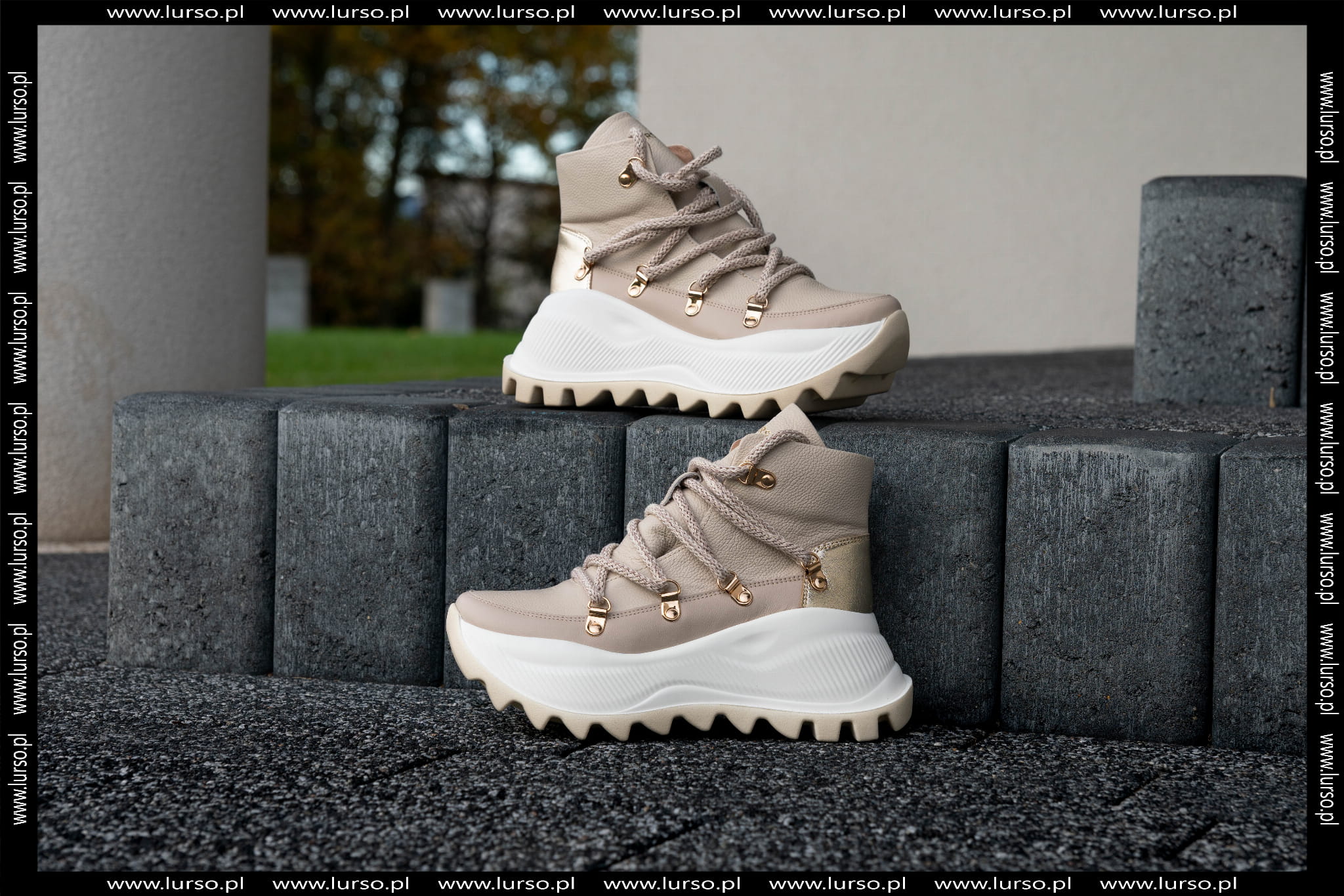 Beżowy Sneakers Damski LURSO z wyższą podeszwą model AGGIE BEIGE