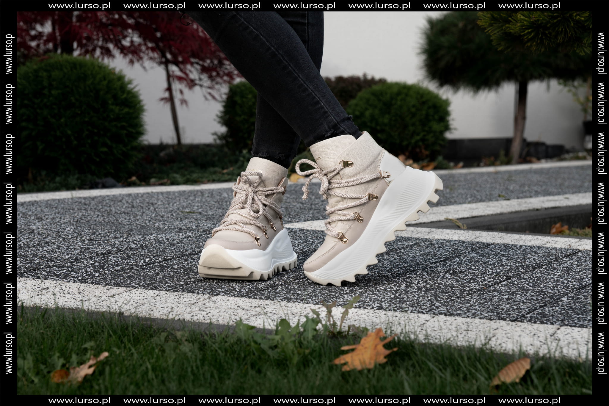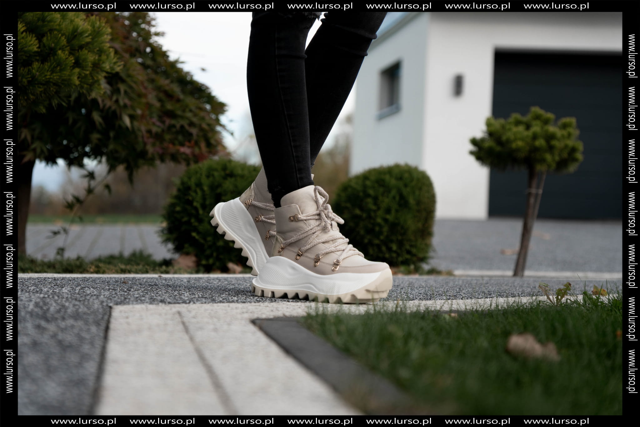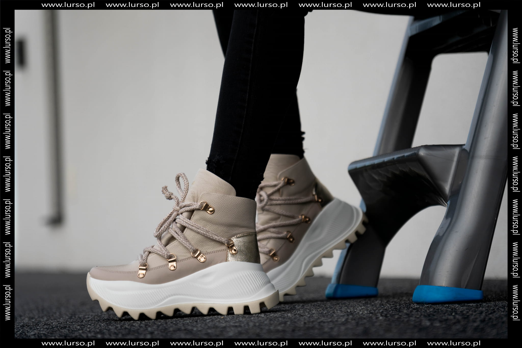 Beżowy Sneakers Damski LURSO z wyższą podeszwą model AGGIE BEIGE