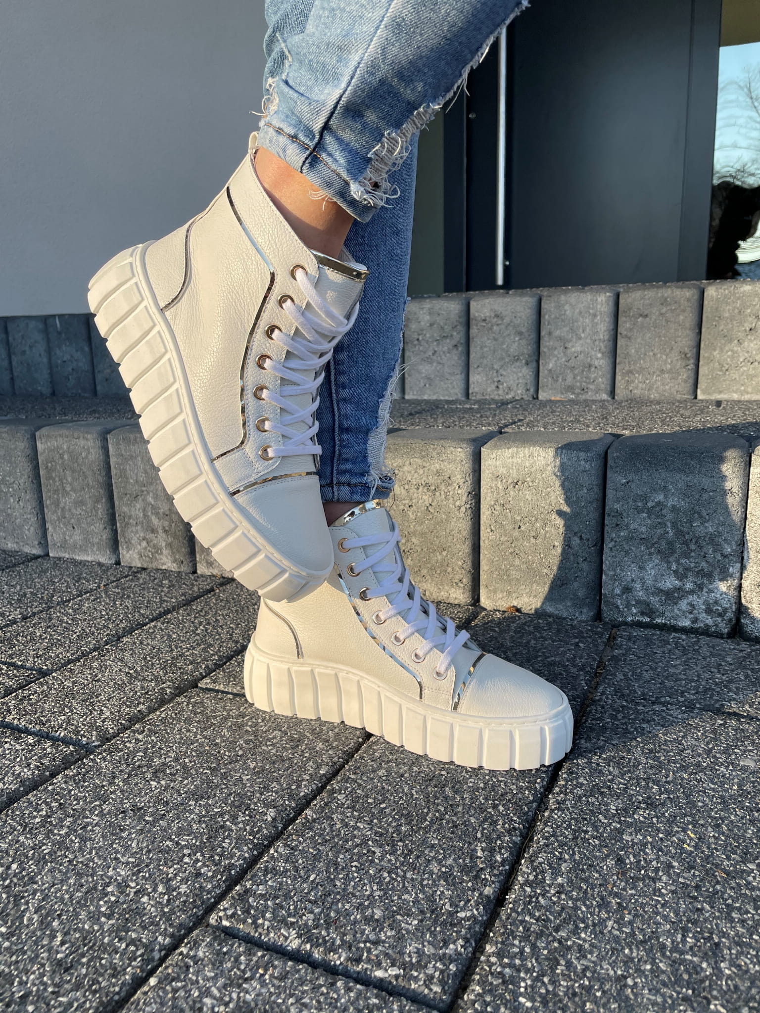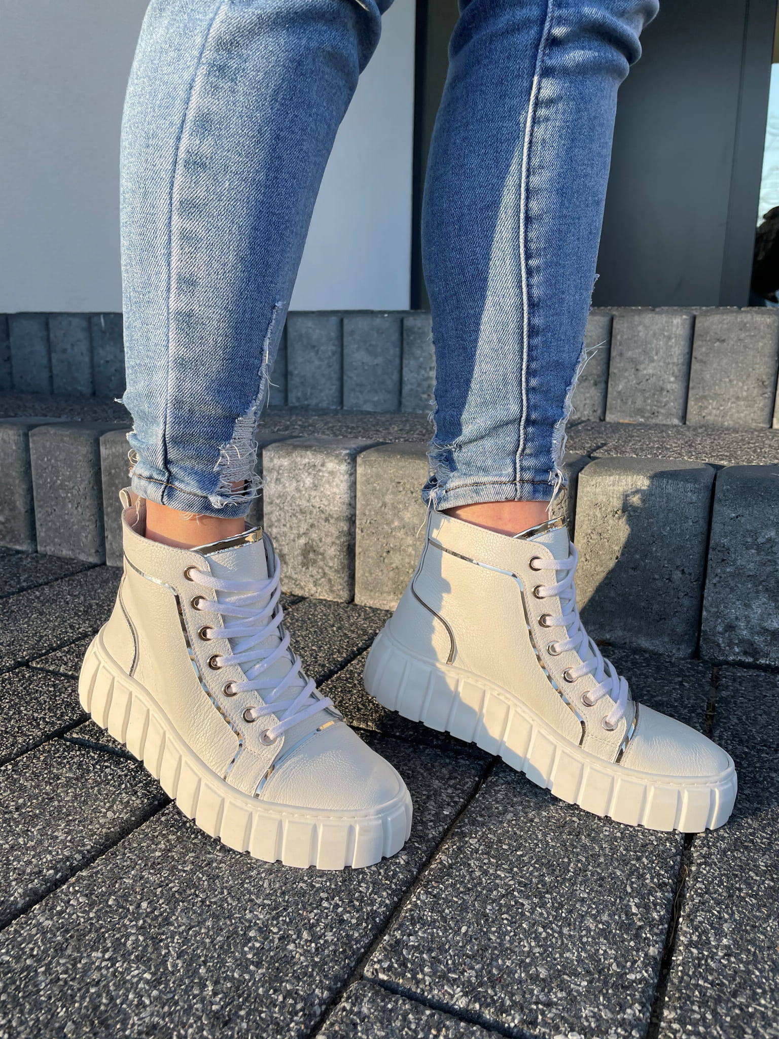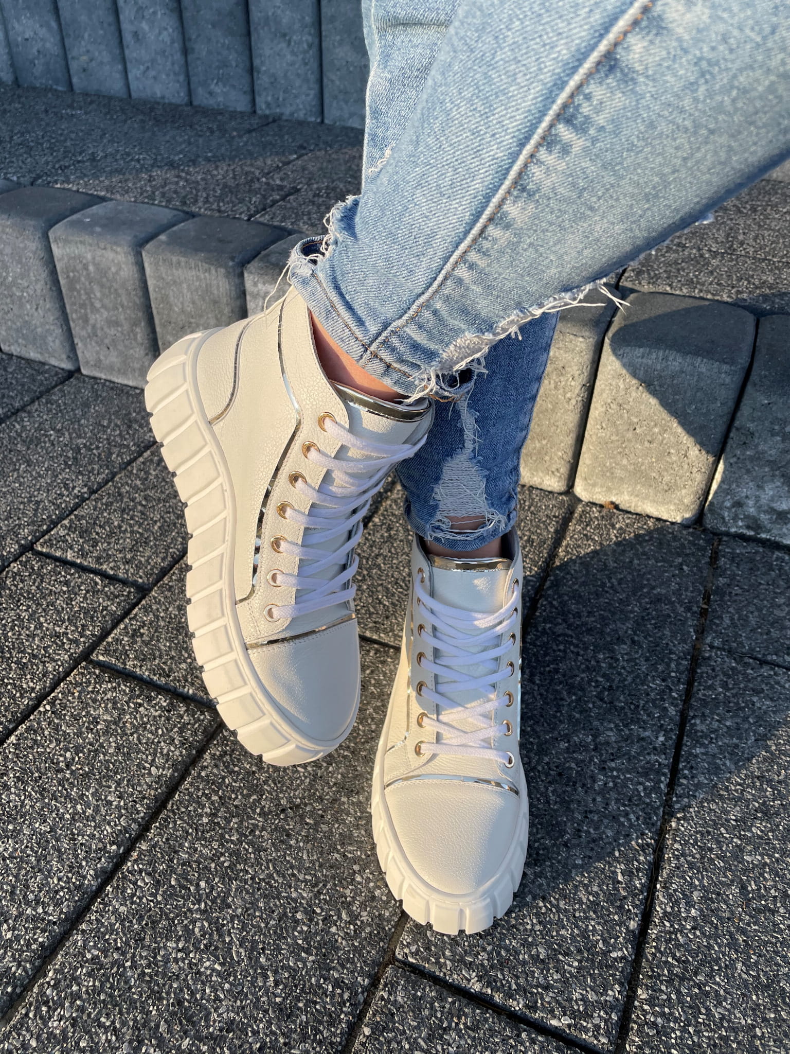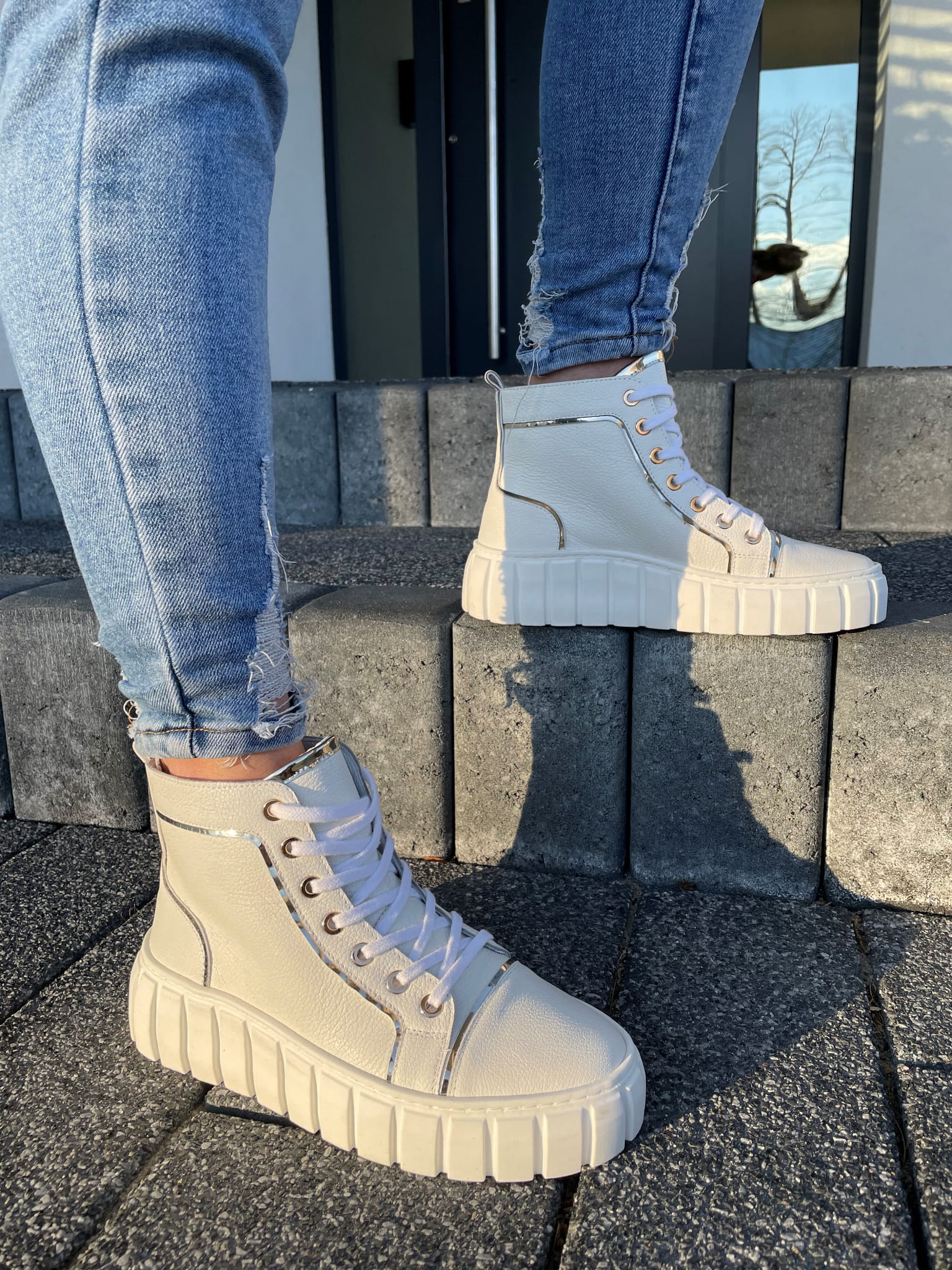 Białe Botki Damskie LURSO na platformie