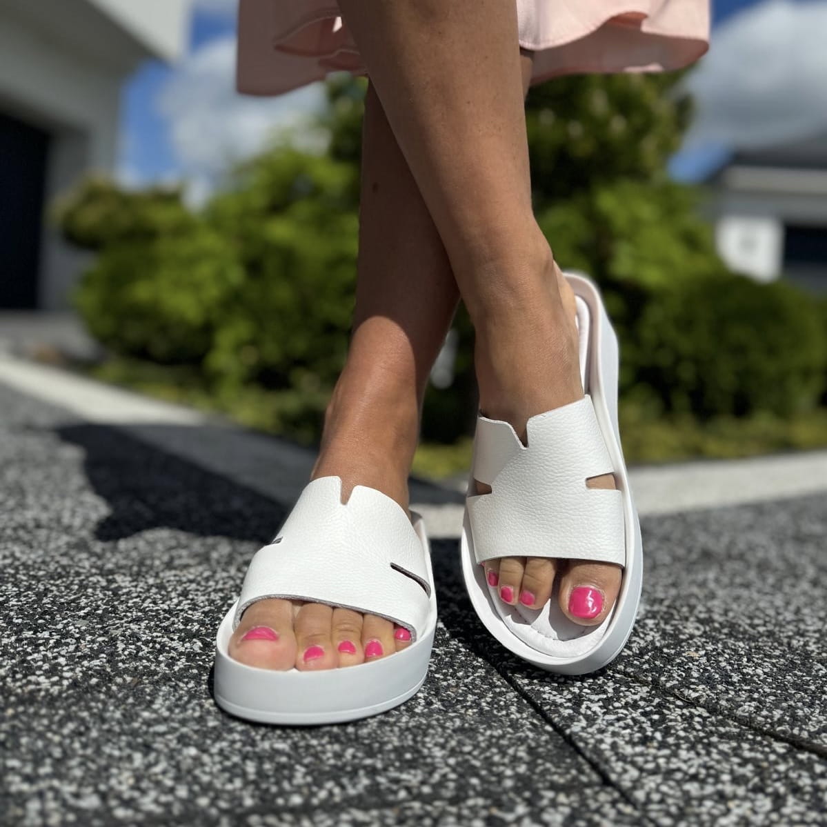 Białe Klapki Damskie LURSO model SORGA WHITE skóra naturalna
