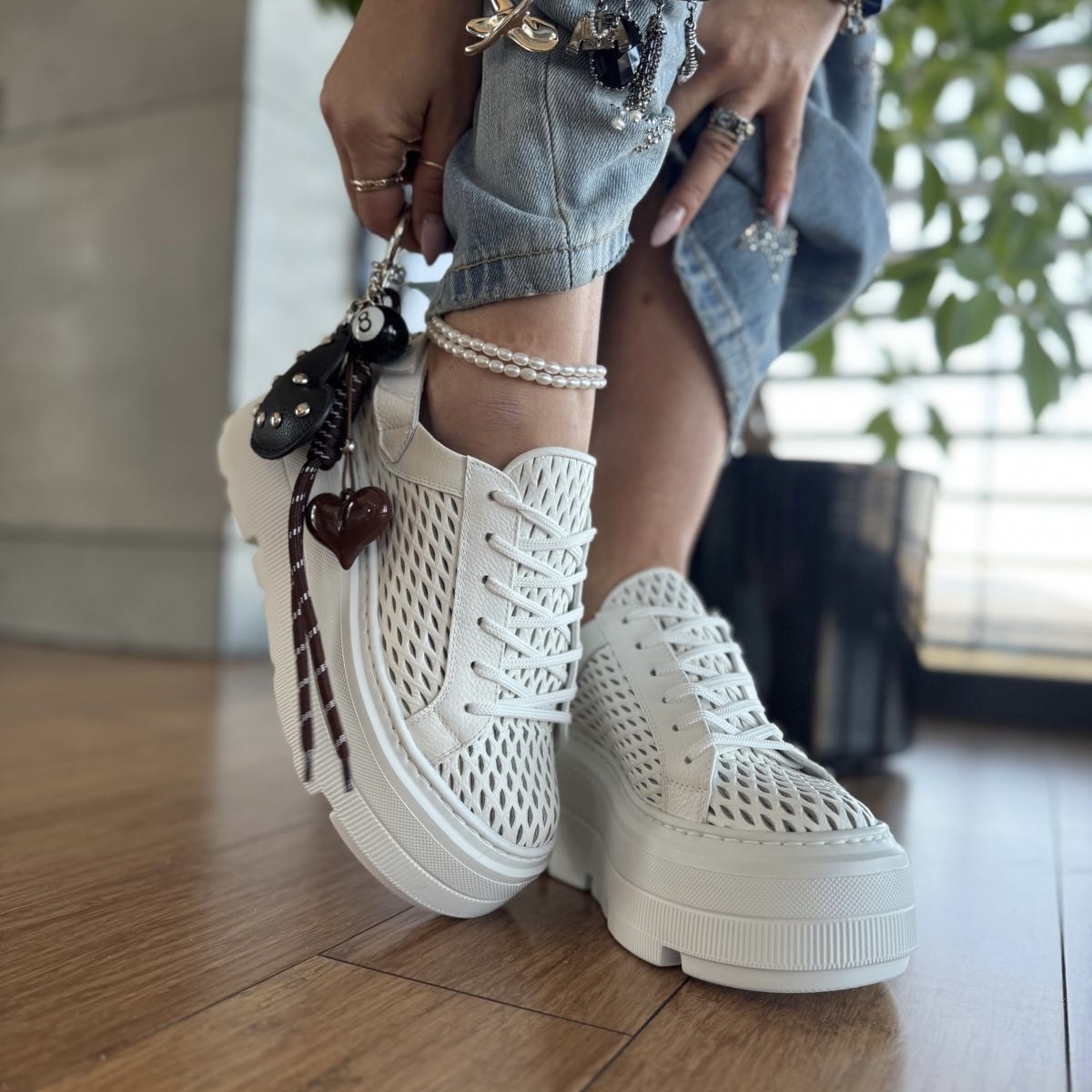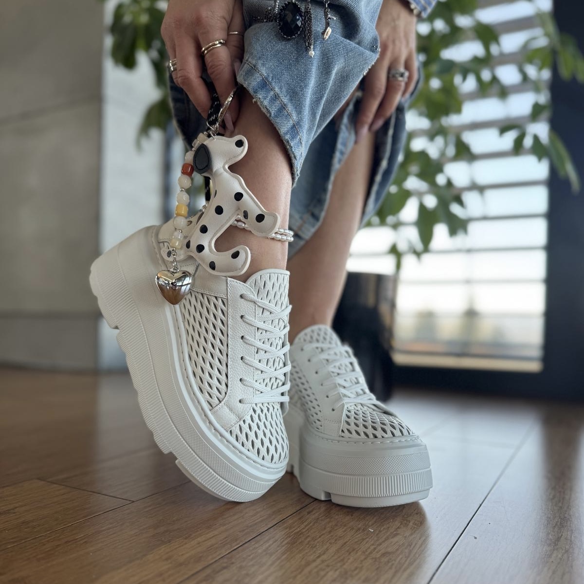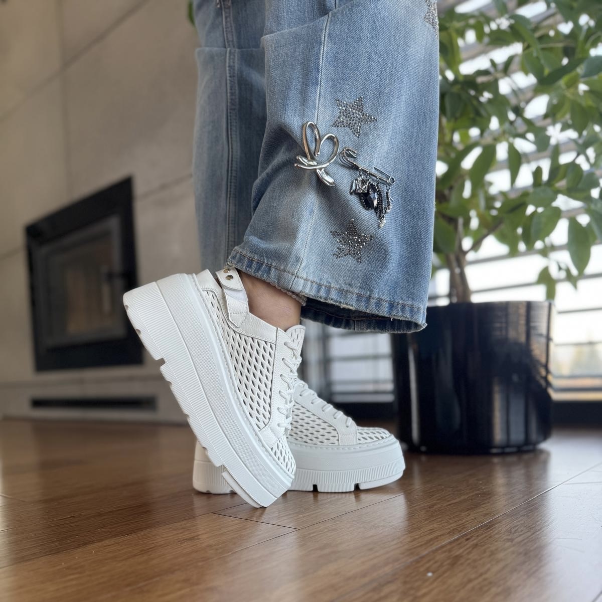 Białe Letnie Sneakersy Damskie bez pięty na platformie model ULTEN WHITE skóra naturalna