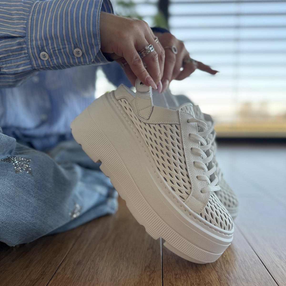 Cudowne sandały typu - sabot model Ulten. Mega przewiewne ażurowe saboty, sznurowanie pozwala dopasować obuwie do tęgości stopy użytkownika. Dzięki zastosowanemu paskowi z tyłu z rzepą możliwe jest dociągnięcie butów aby nie spadały. Buty pięknie wyglądają na nodze. Zamontowana podeszwa pomimo swojej wysokości jest lekka i wygodna a jej niepowtarzalny deasing podkreśla wyjątkowość modelu.