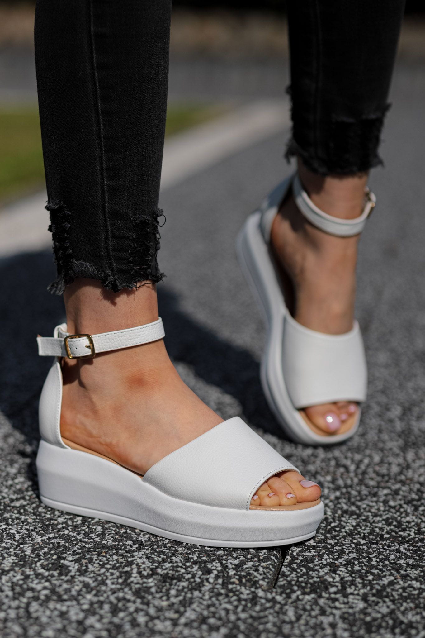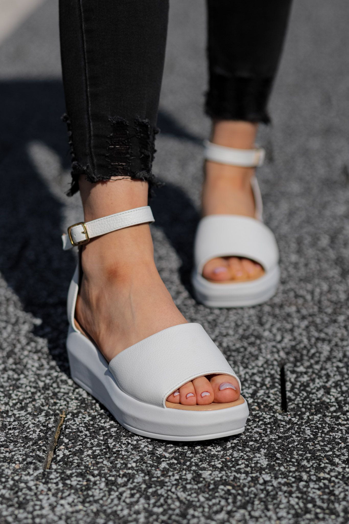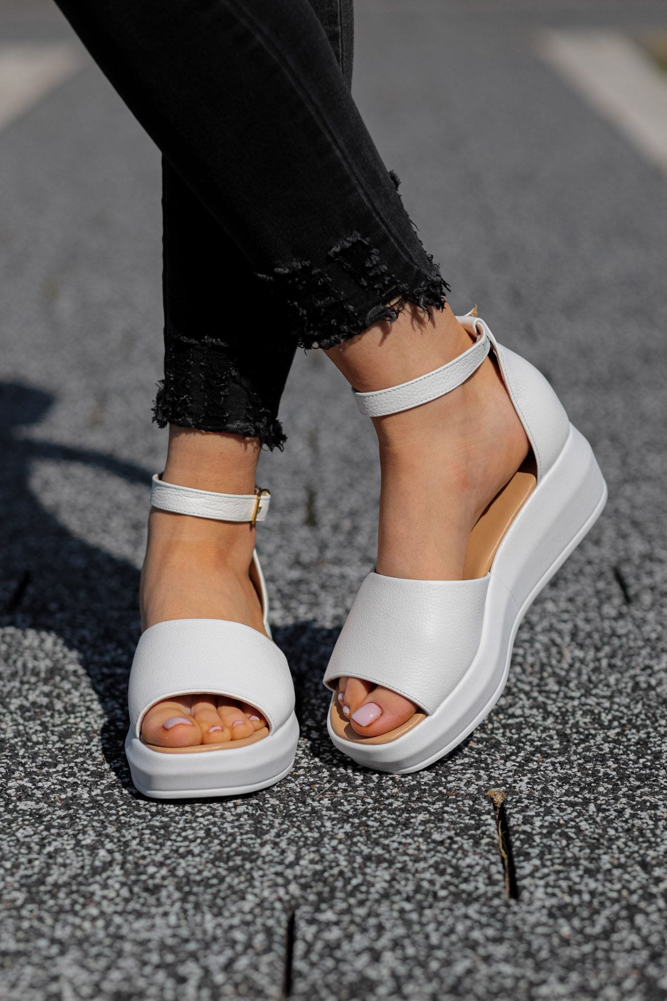 Białe Sandały Damskie LURSO model JUSTINE WHITE skóra naturalna