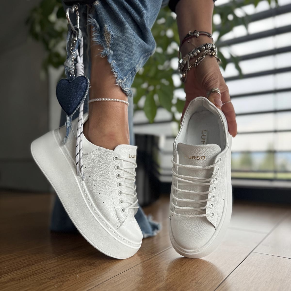 Białe Sneakersy Damskie LURSO model ARLETTE WHITE skóra naturalna