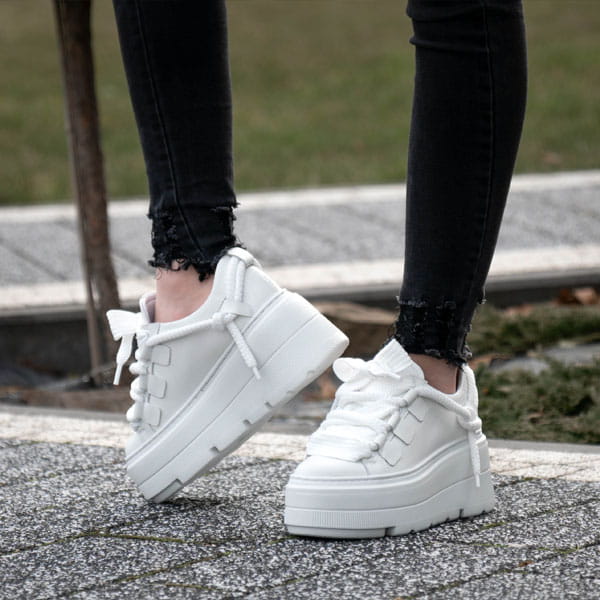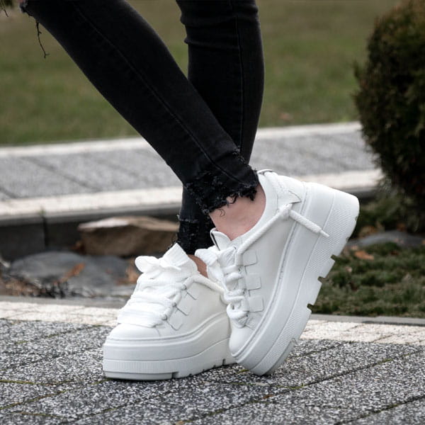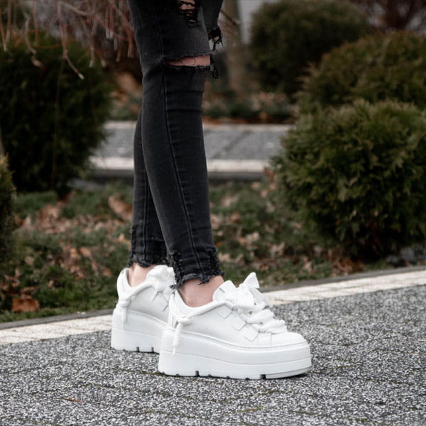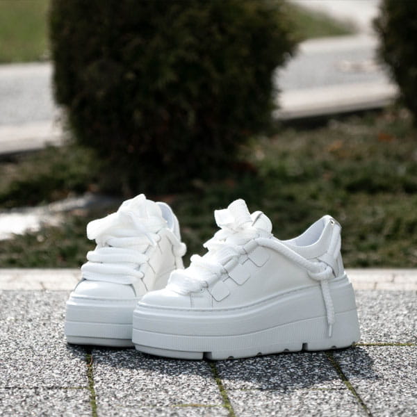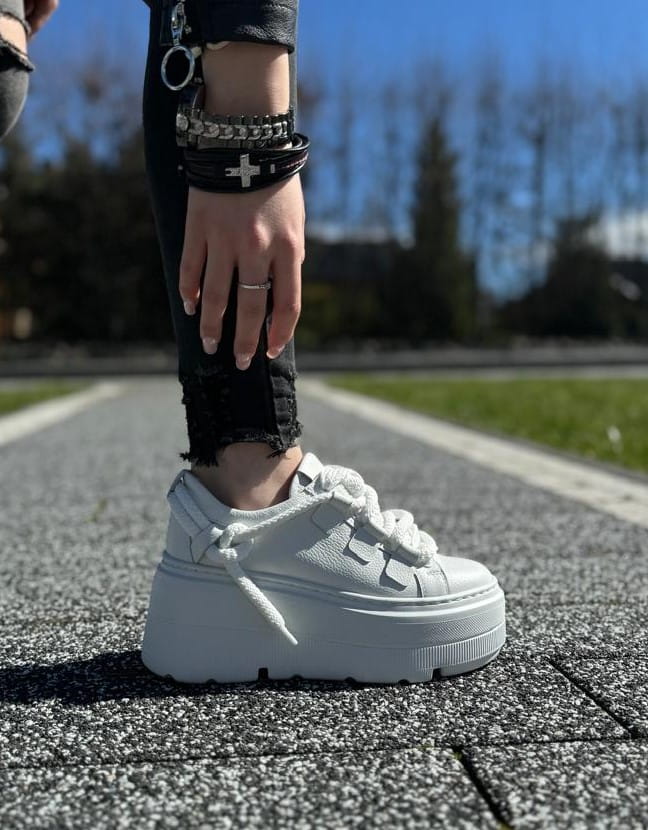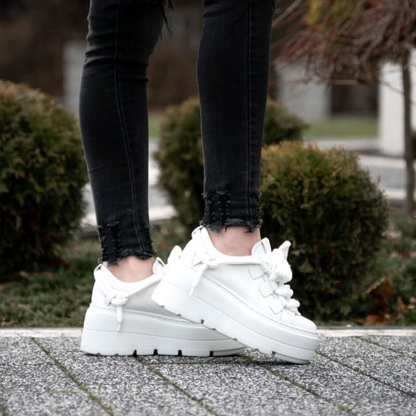 Model Trani to przepiękny sneackers. Uwagę przyciąga przede wszystkim ciekawe rozwiązanie sznurowania. Zastosowane dwie sznurówki o różnej grubości i strukturze tworzą ciekawe połączenie. Dodatkowym atutem jest podeszwa na które jest zrobiony model. Prócz tego, że wygląda bardzo modnie jest lekka i wygodna.