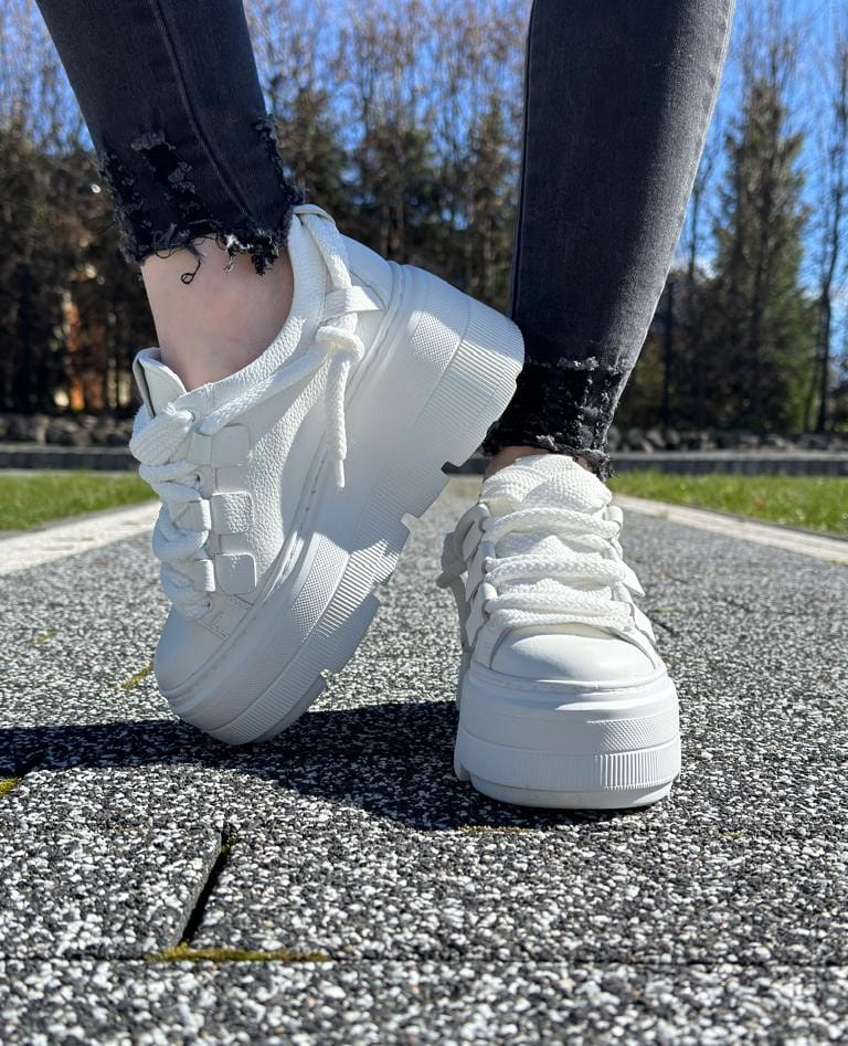 Białe Sneakersy Damskie LURSO model TRANI WHITE skóra naturalna