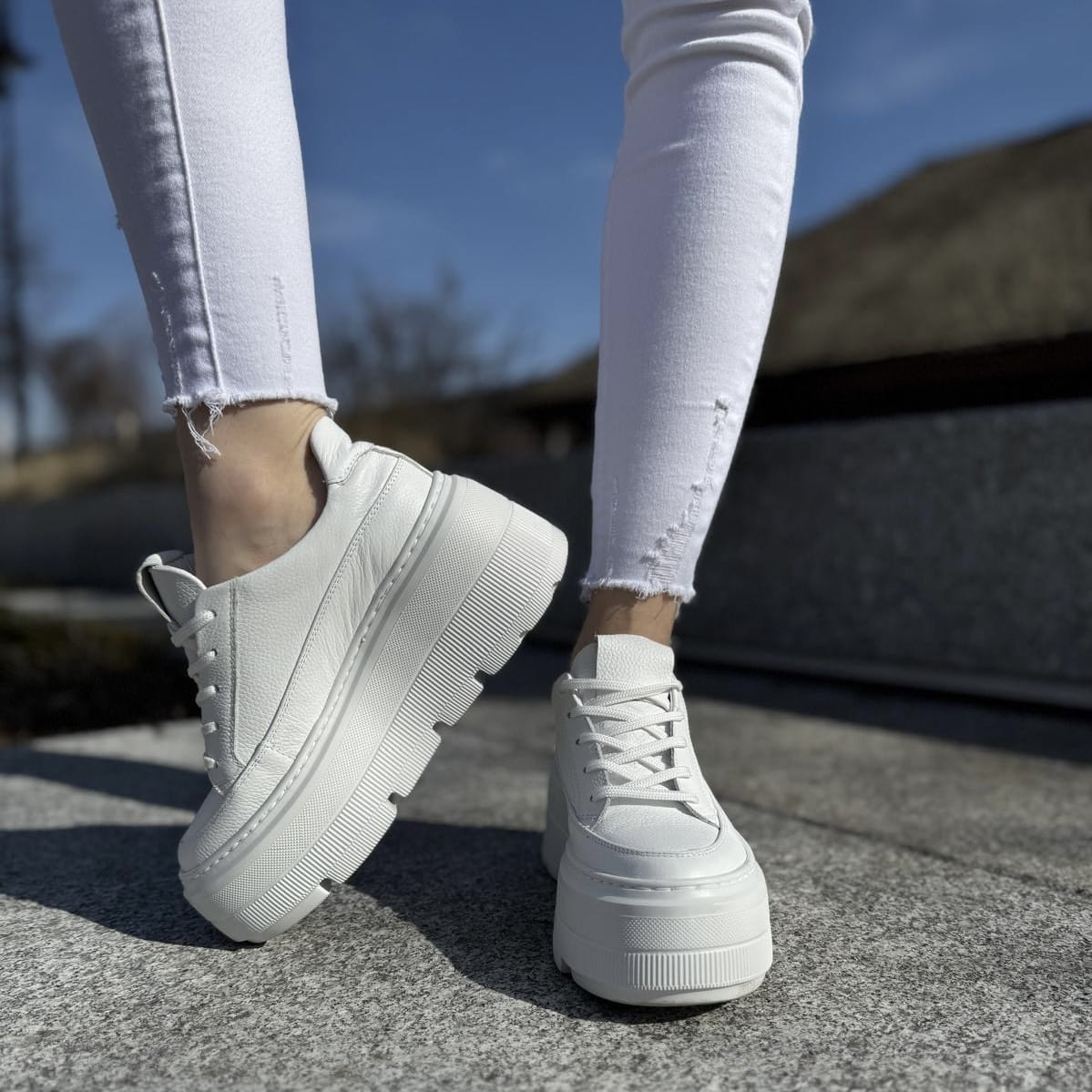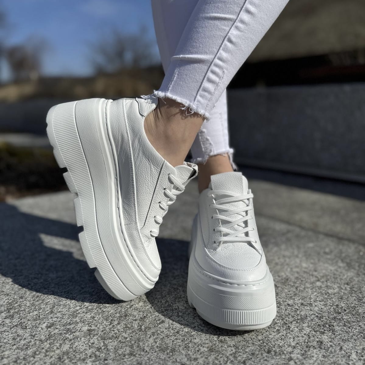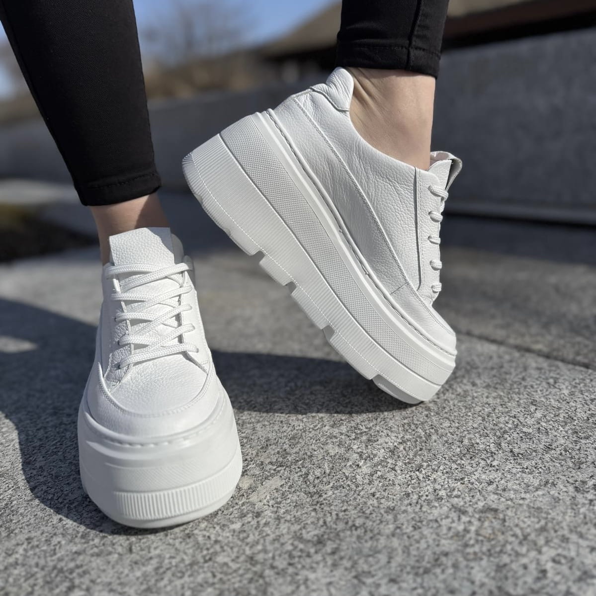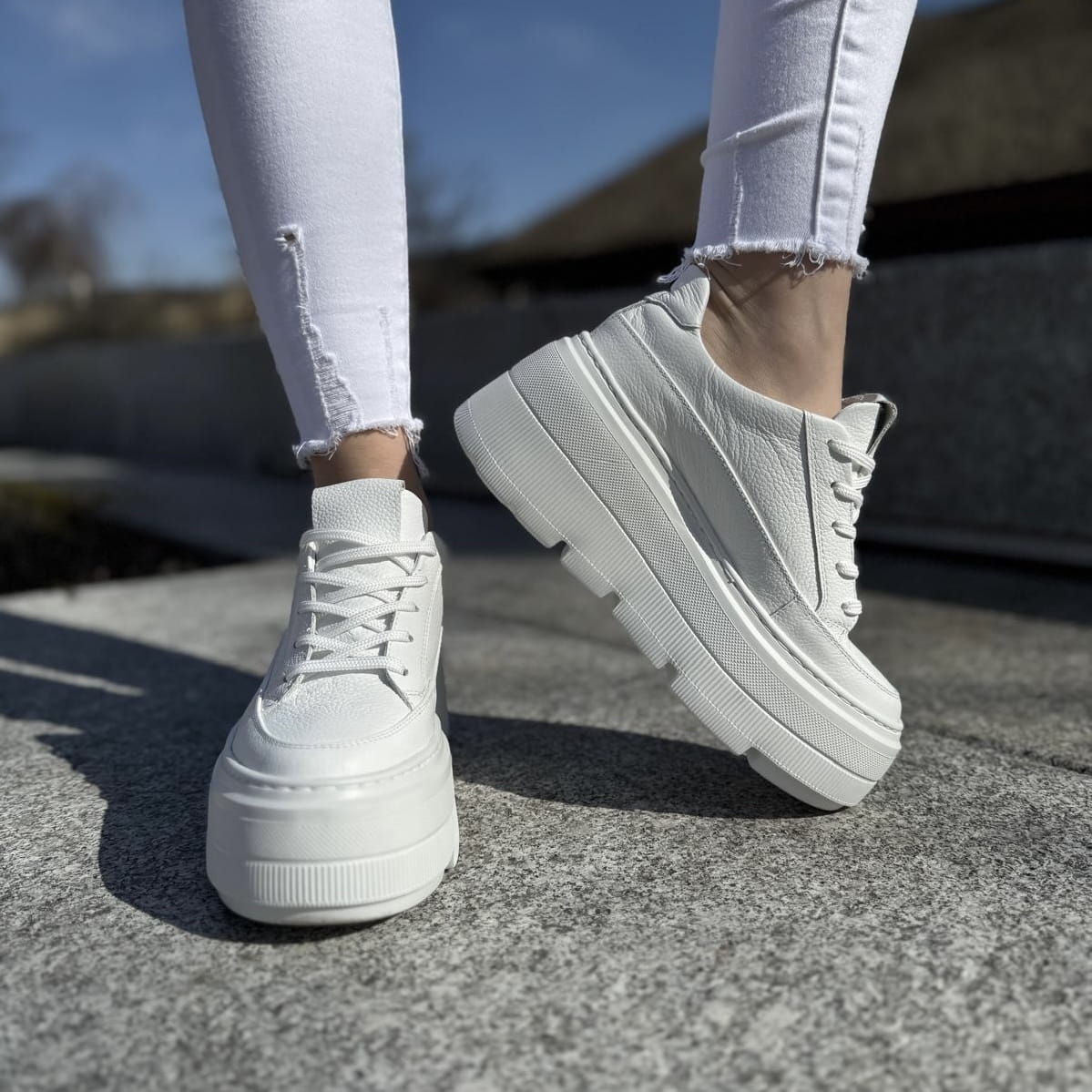 Białe Sneakersy Damskie LURSO na platformie model GIOVE WHITE skóra naturalna