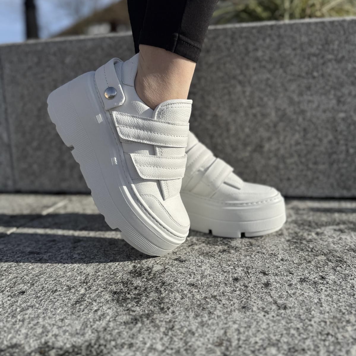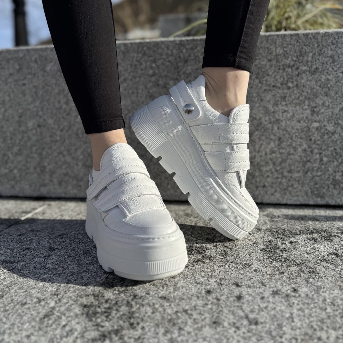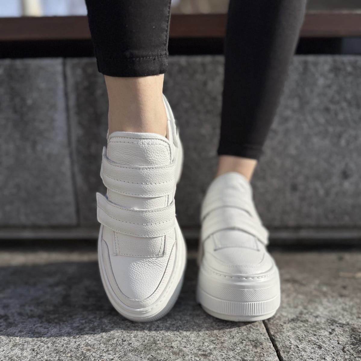 Białe Sneakersy Damskie LURSO na podwyższonej podeszwie FORINO WHITE skóra naturalna
