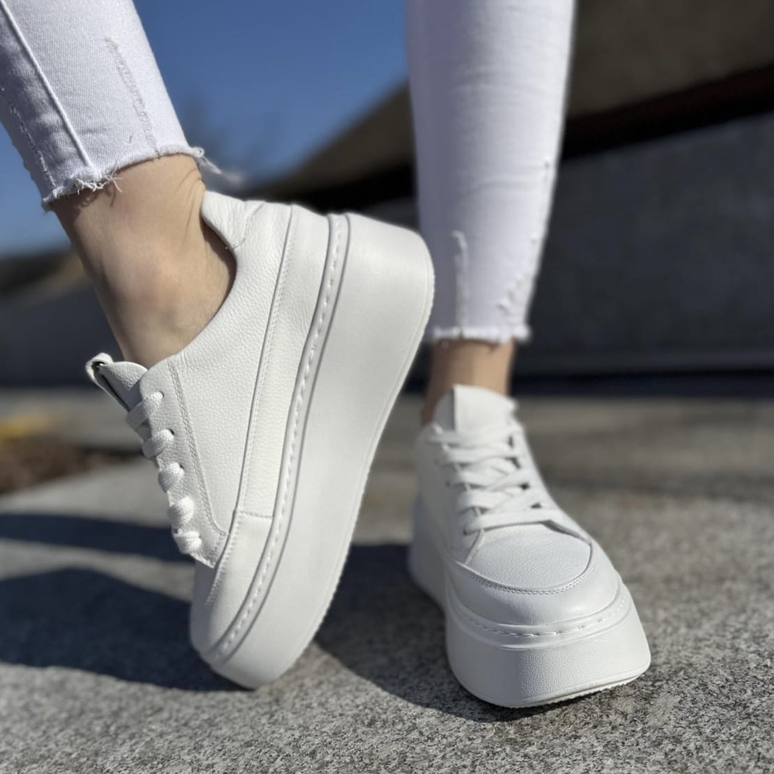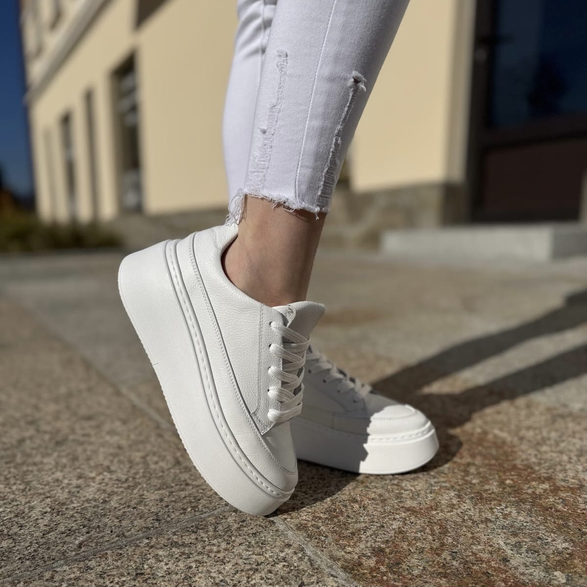 Białe Sneakersy Damskie na podwyższonej podeszwie MURLO WHITE skóra naturalna