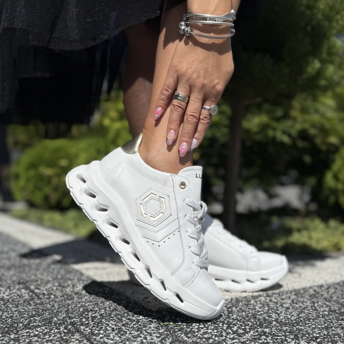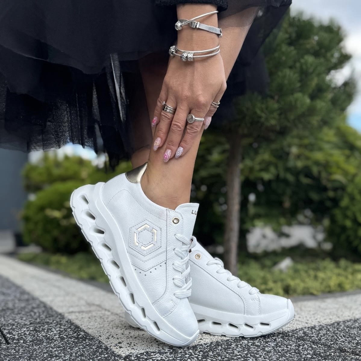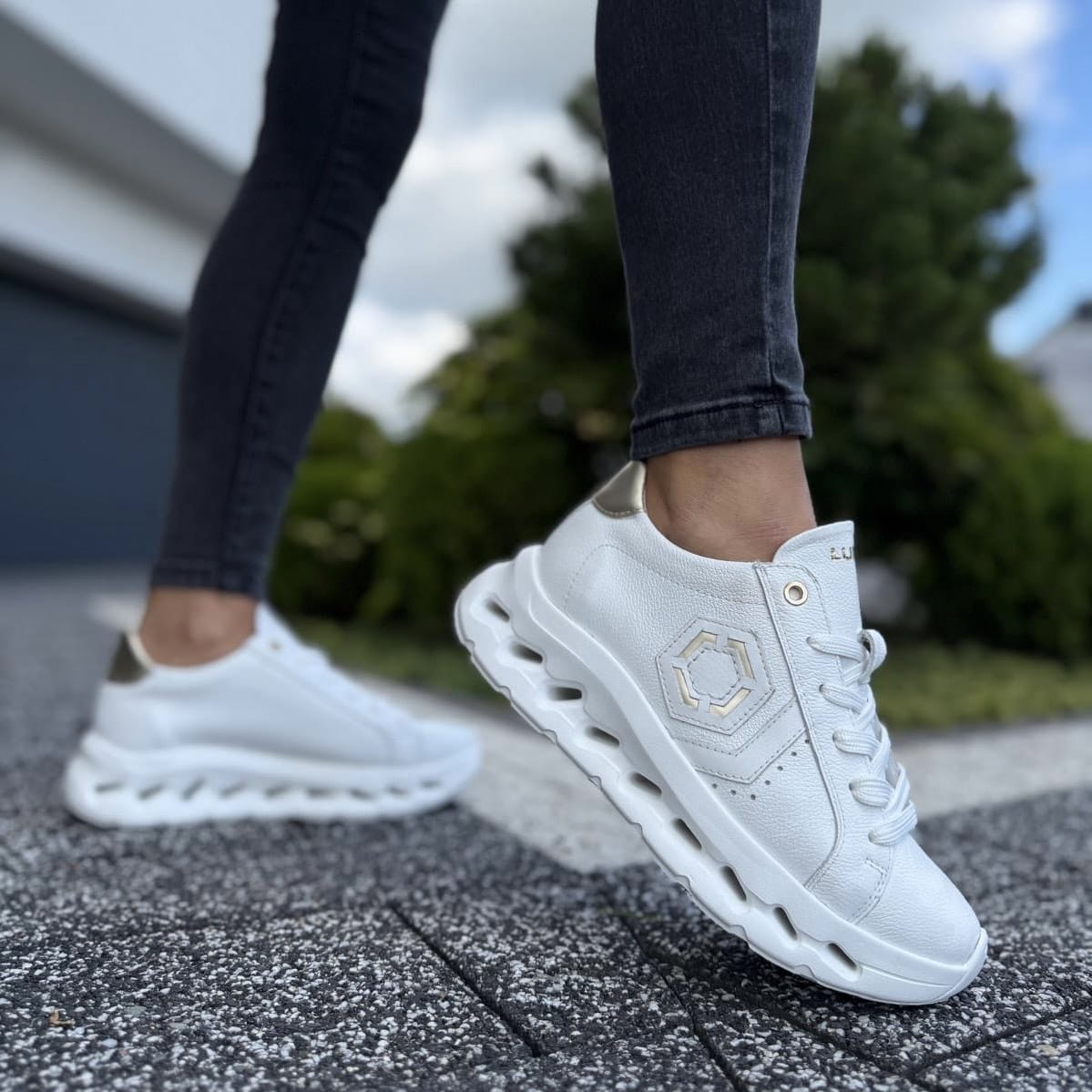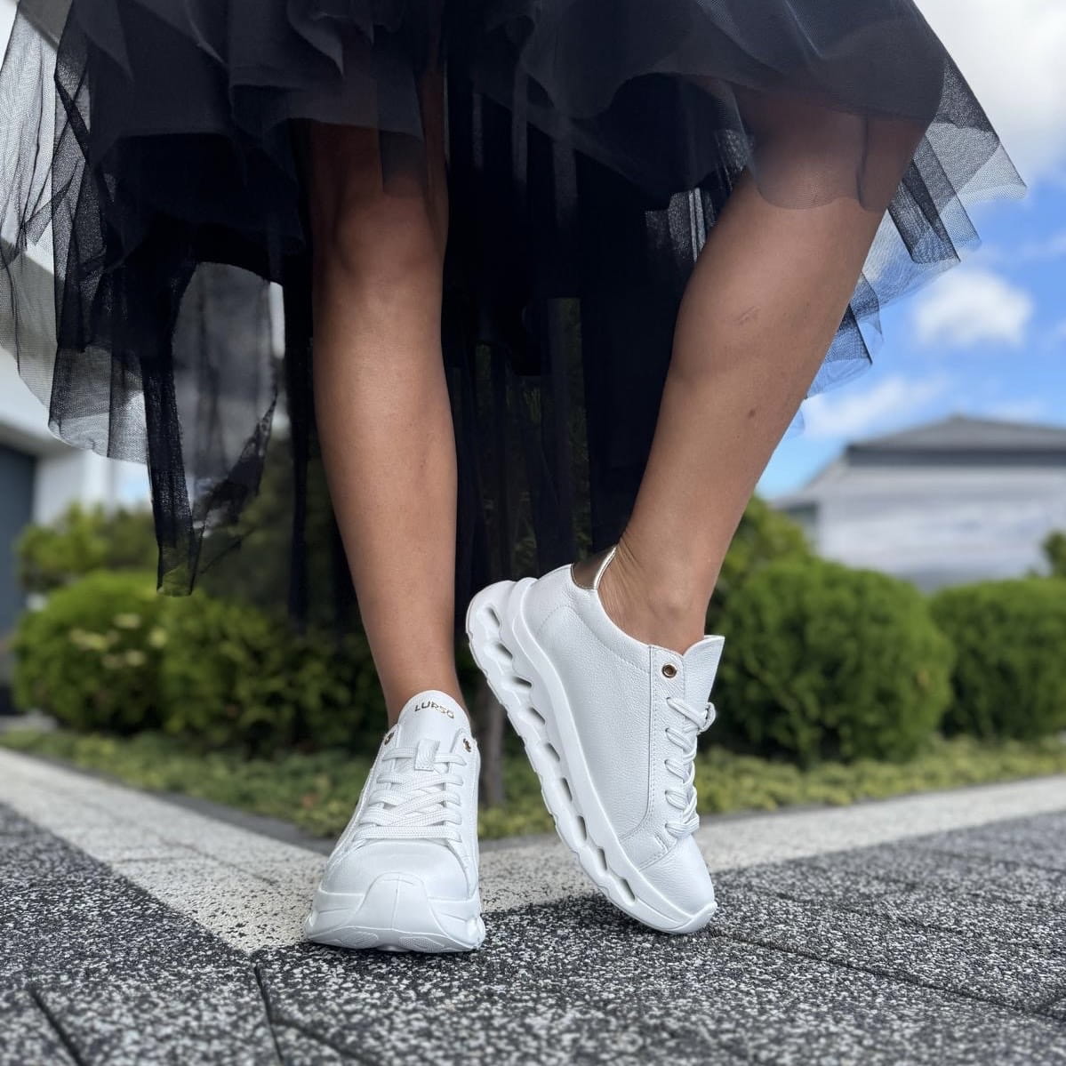 Białe Sneakersy Damskie na sportowej podeszwie RUBANO WHITE skóra naturalna
