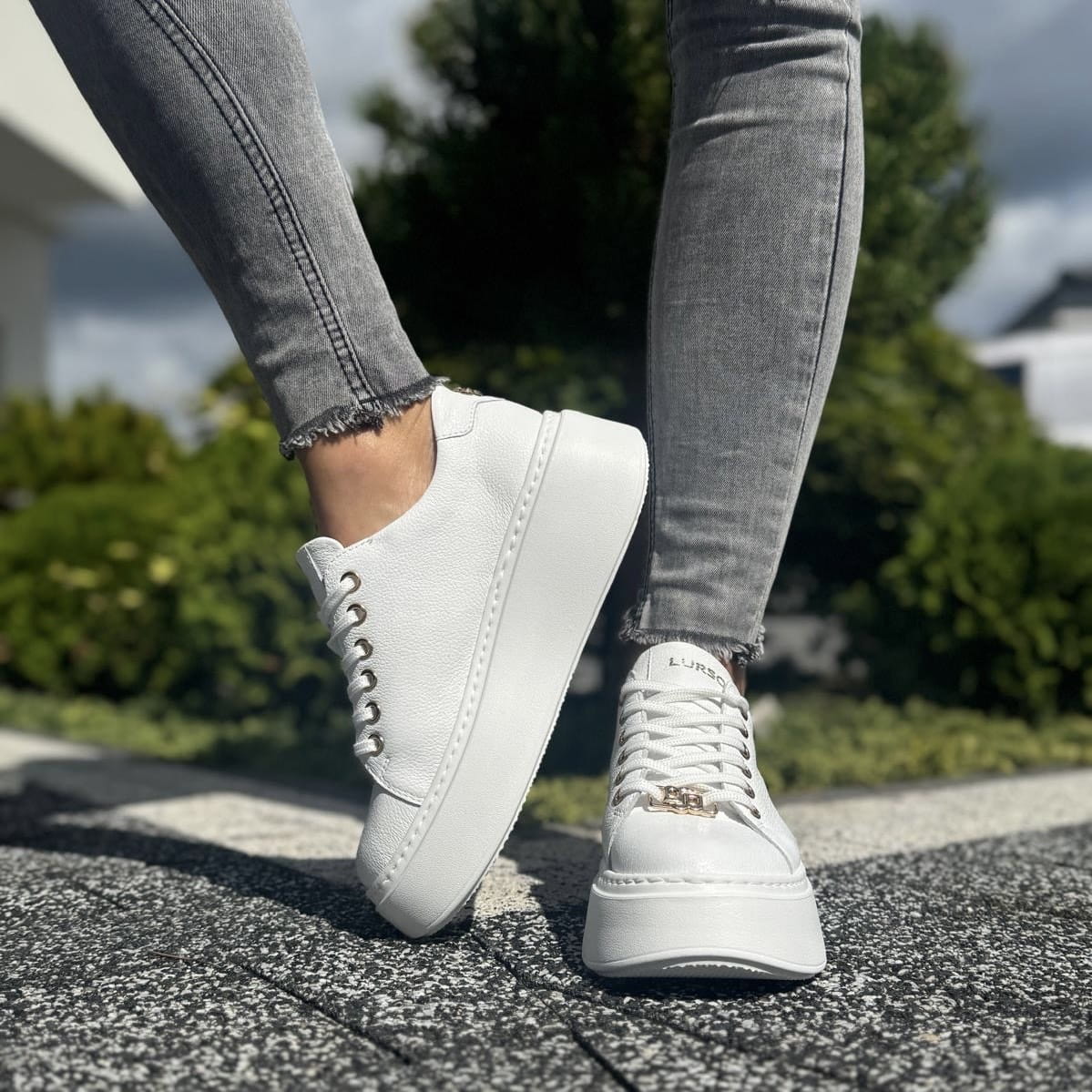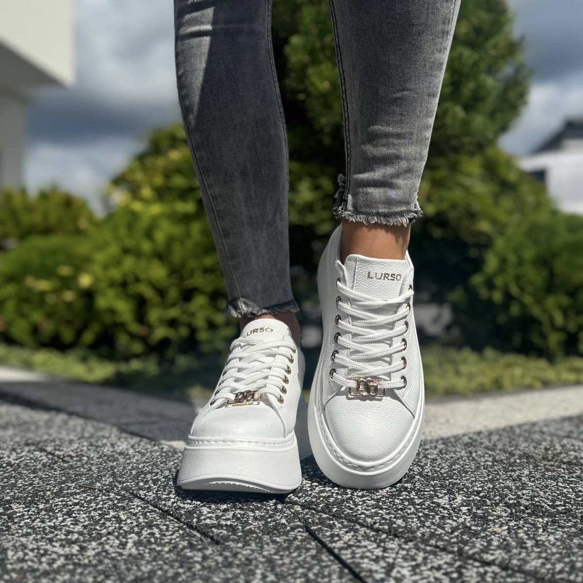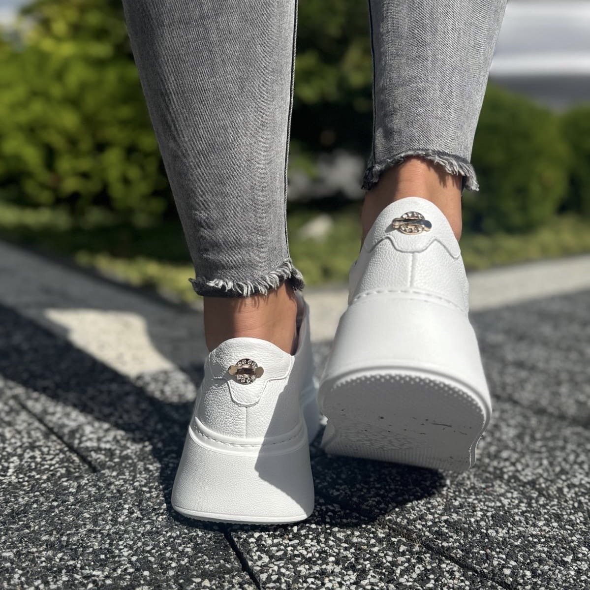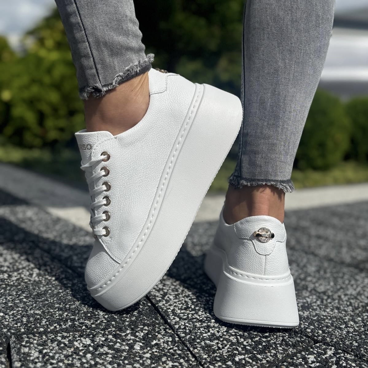 Białe Sneakersy Damskie ze złotą ozdobą PONSO WHITE skóra naturalna