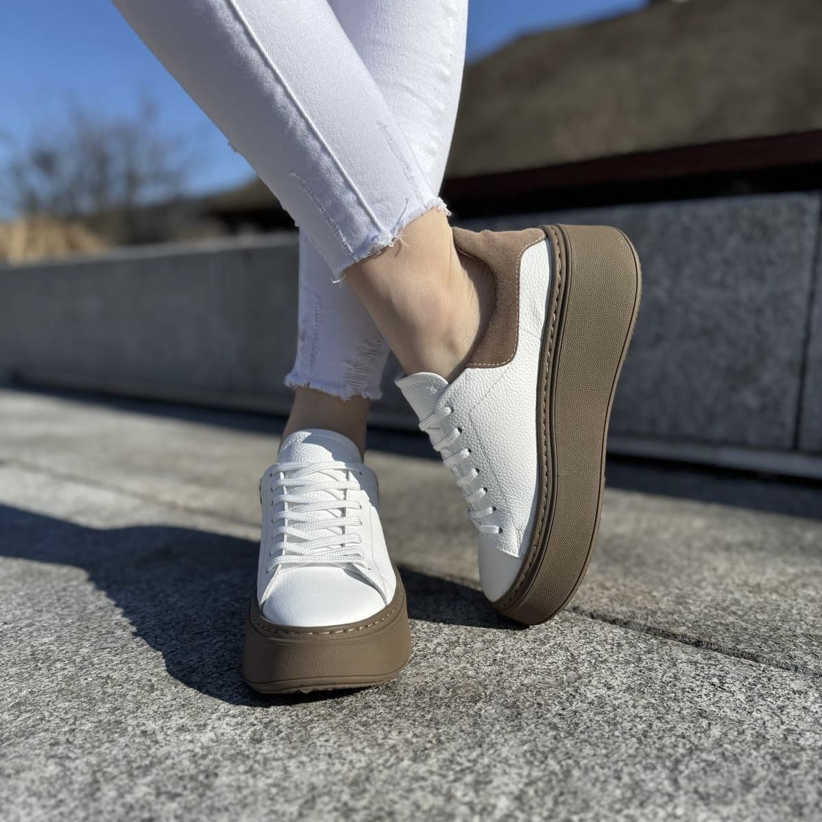 Białe Trampki Damskie LURSO model ARLETTE WHITE BEIGE skóra naturalna