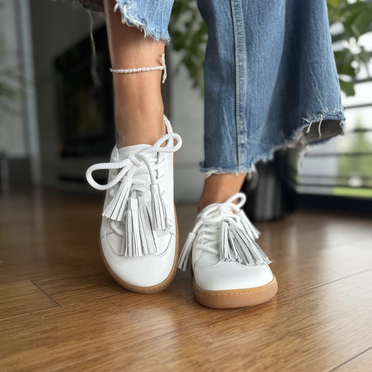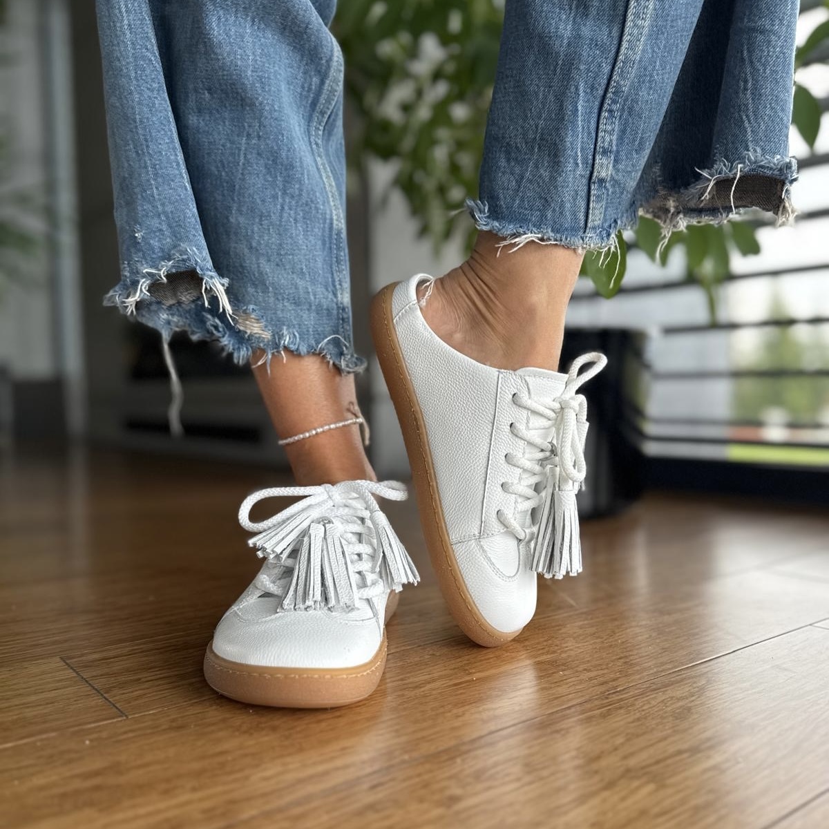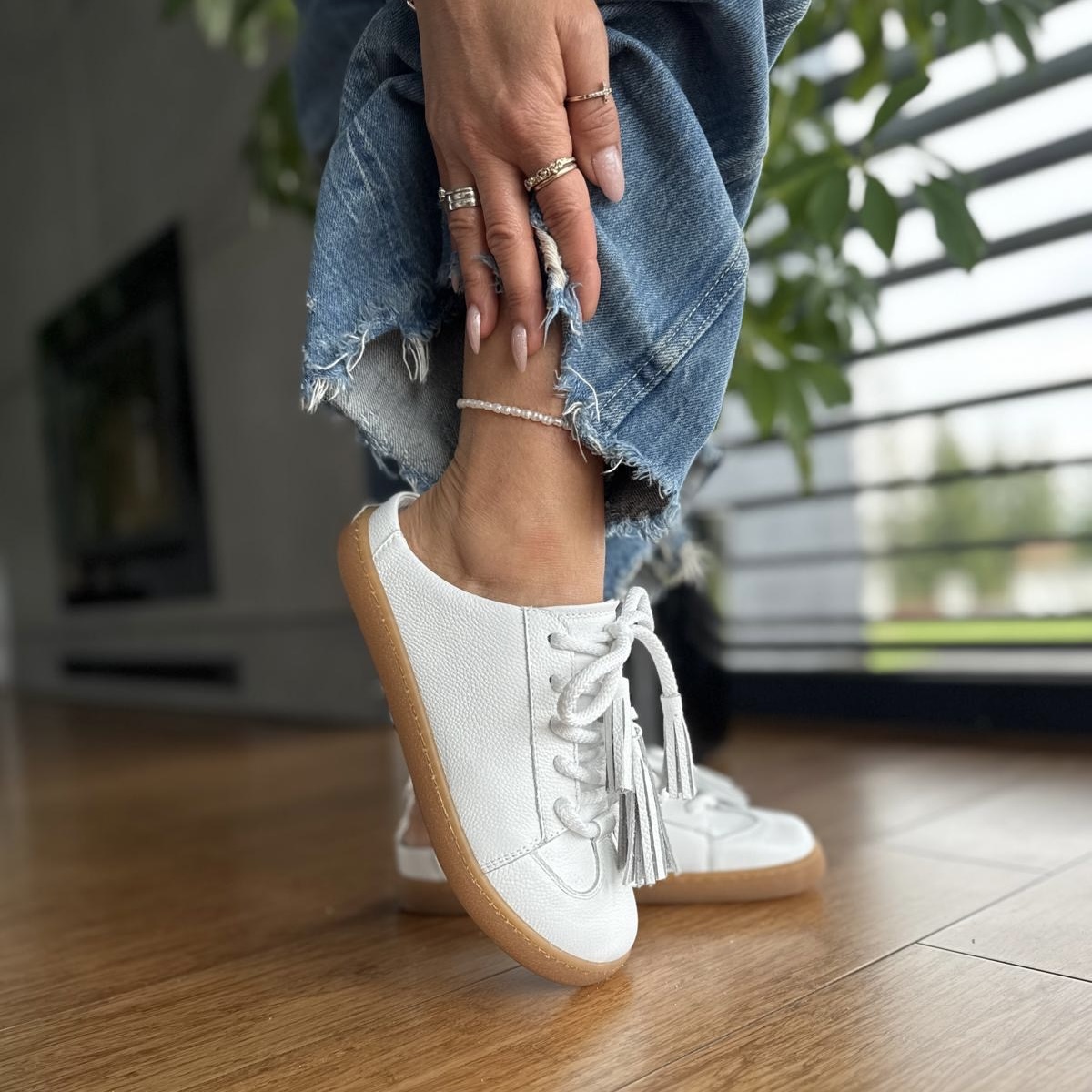 Białe Trampki Damskie LURSO typu barefoot bez pięty model CAVA WHITE skóra naturalna