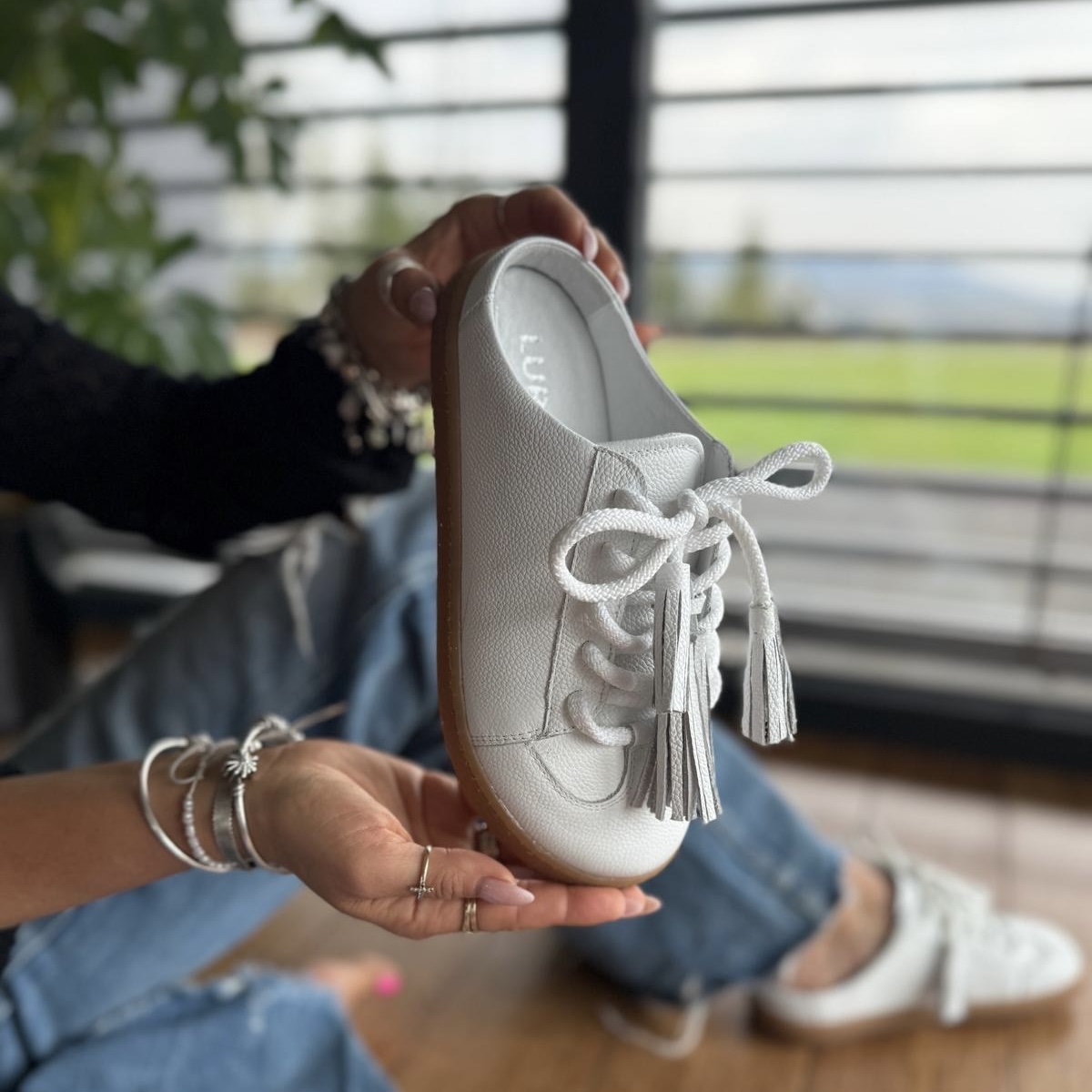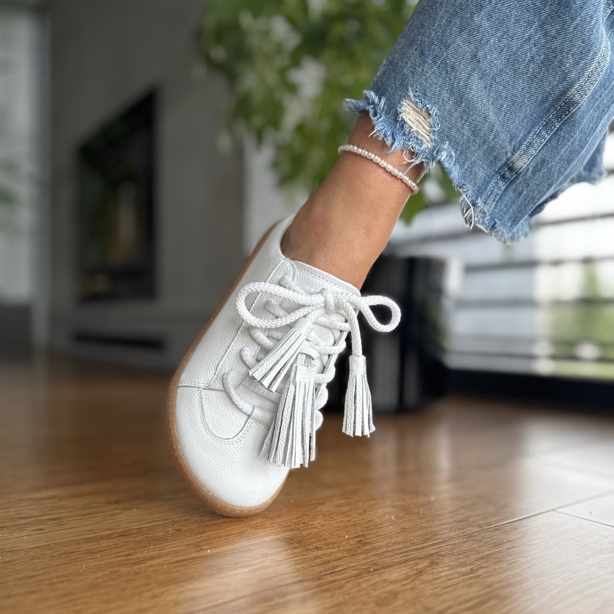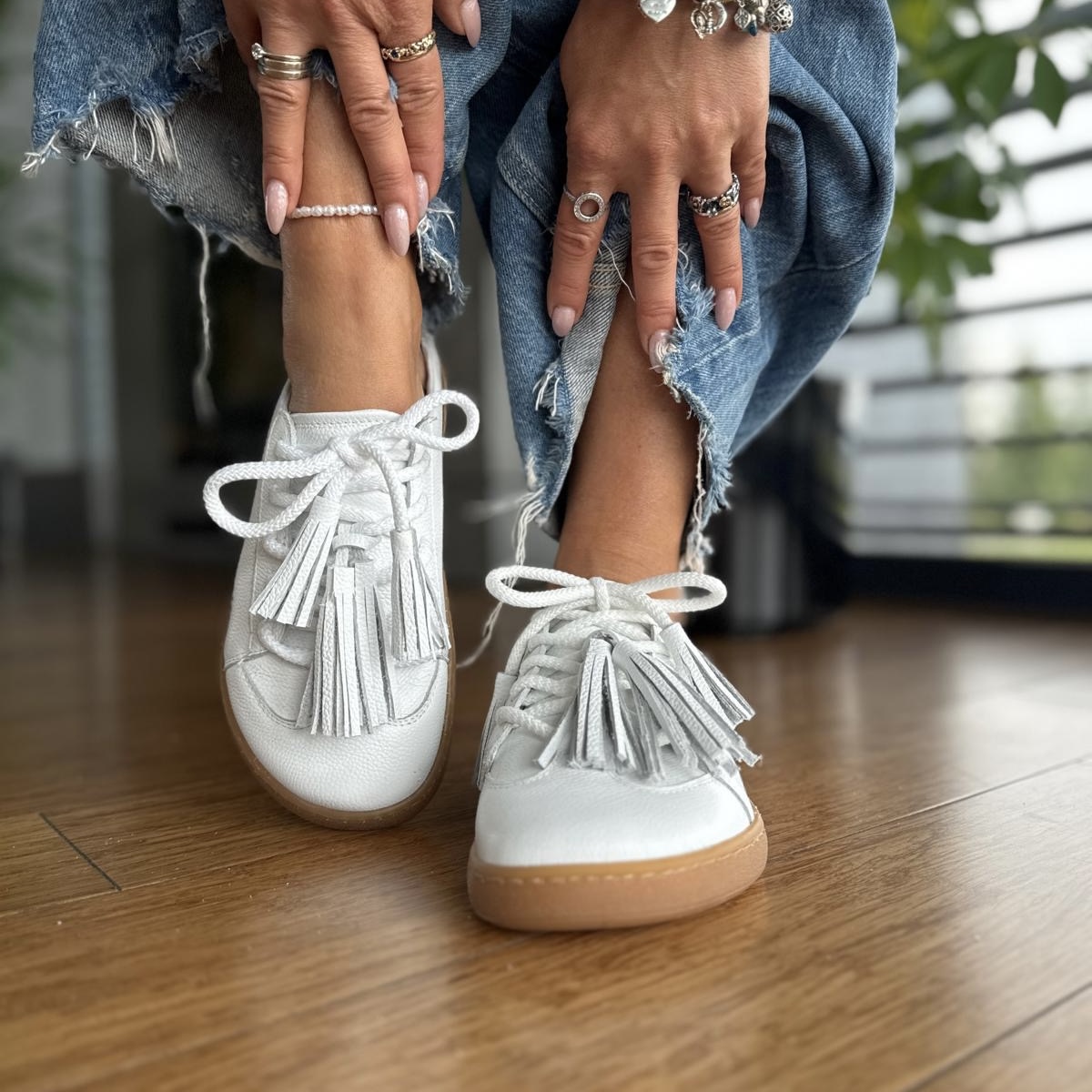 Białe Trampki Damskie LURSO typu barefoot bez pięty model CAVA WHITE skóra naturalna