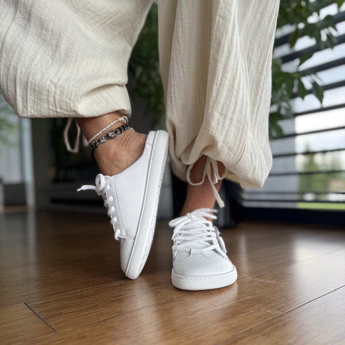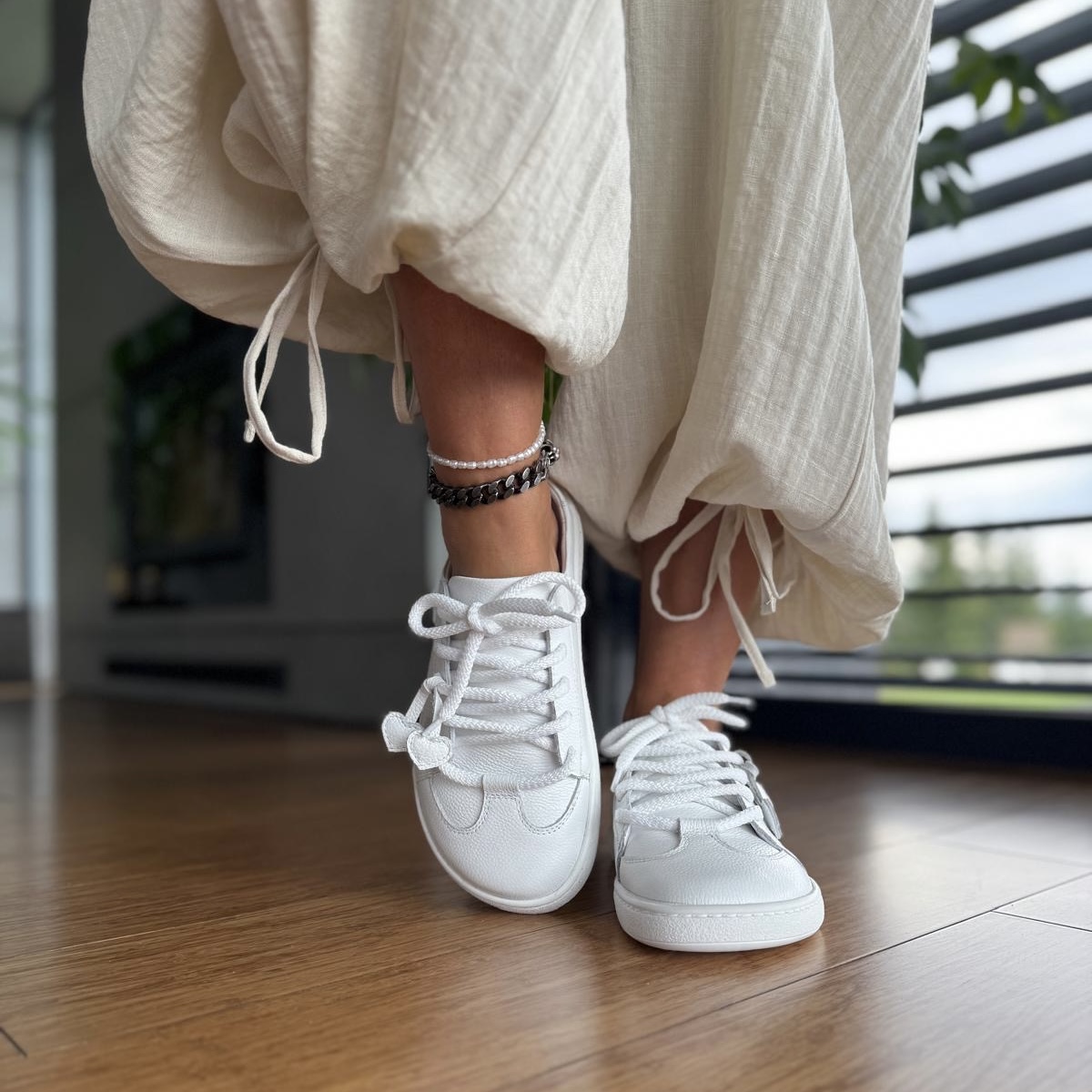 Białe Trampki Damskie LURSO typu barefoot bez pięty model ENZO WHITE skóra naturalna