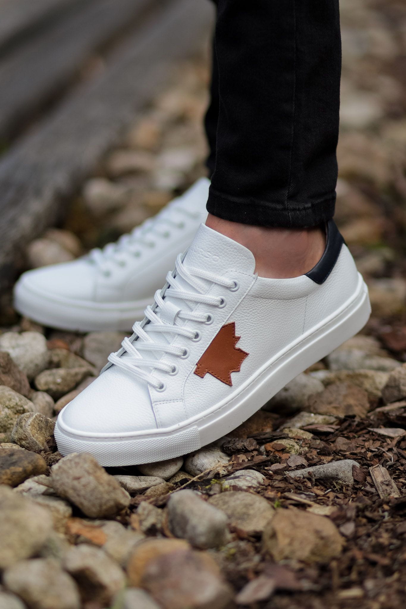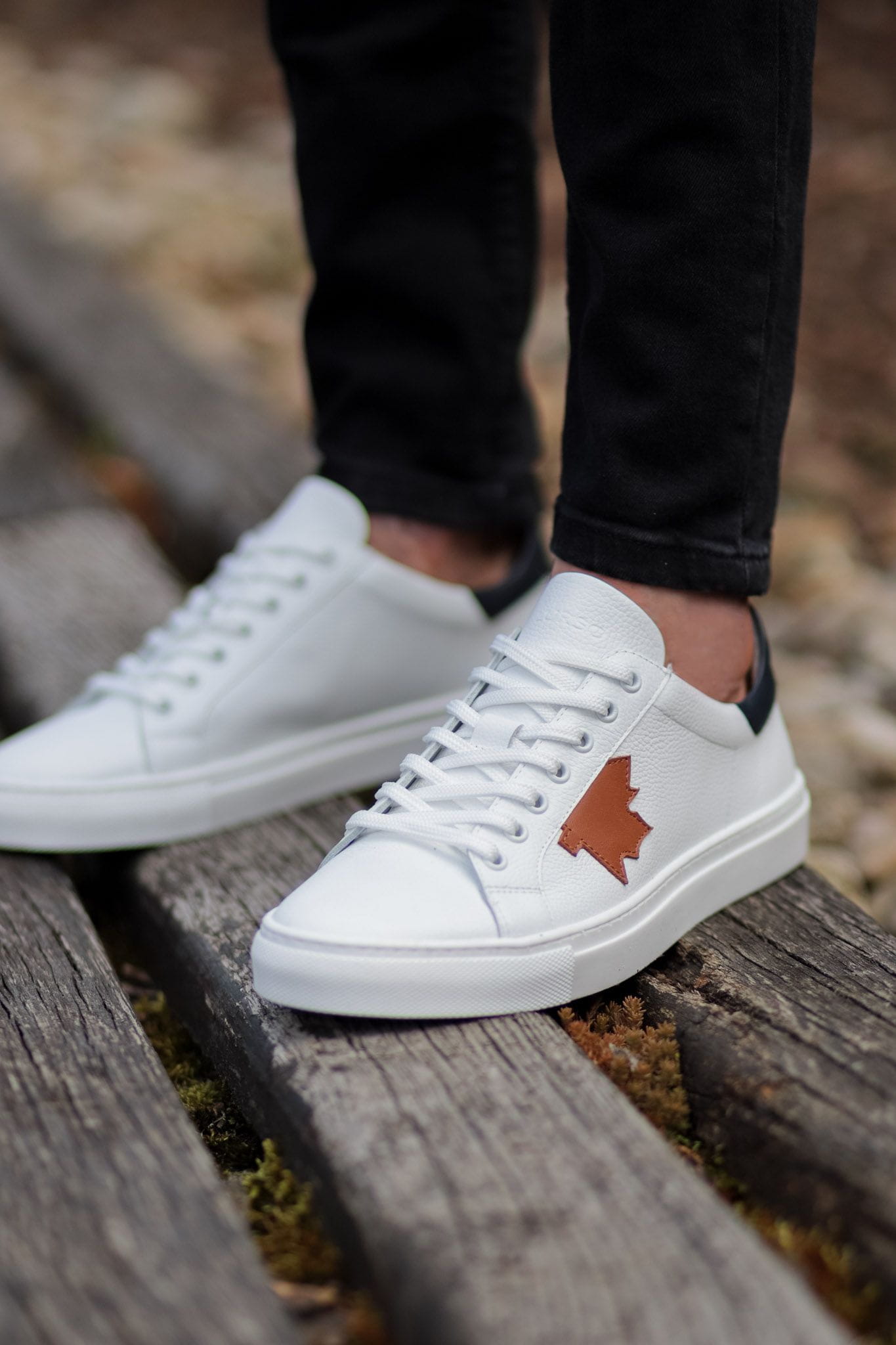Białe Trampki Męskie LURSO model YERRES WHITE/BROWN skóra naturalna