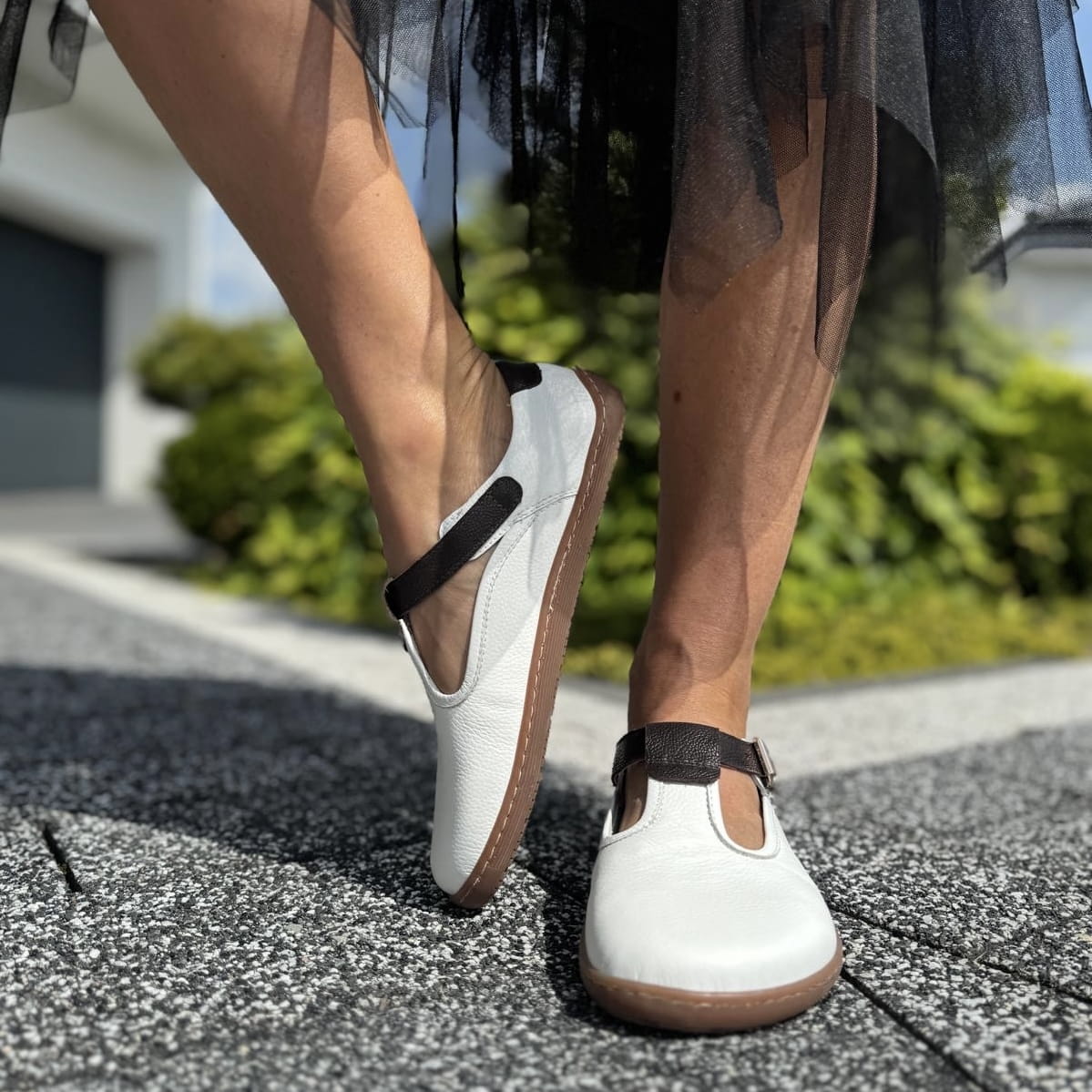 Biało-brązowe loafersy LURSO typu barefoot model LIONI WHITE BROWNE skóra naturalna