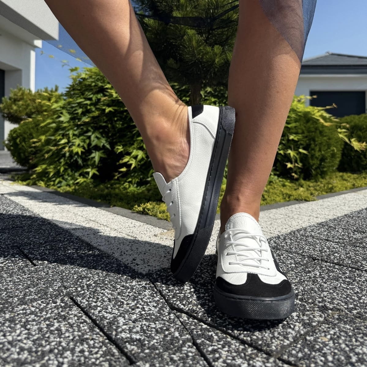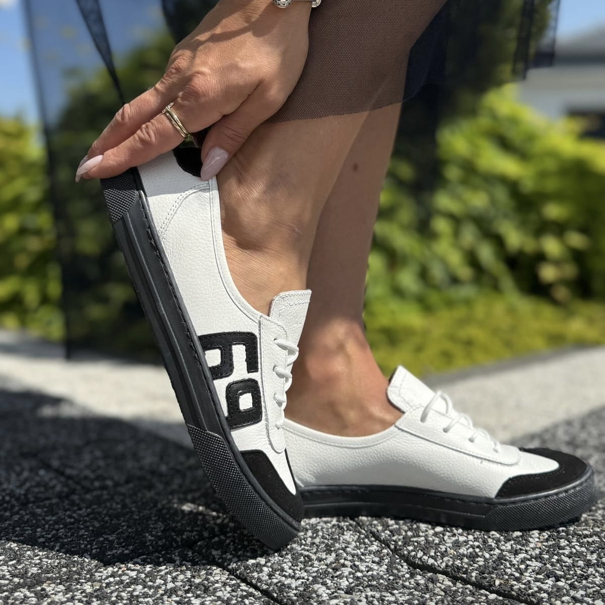 Biało-czarne Trampki Damskie LURSO na płaskiej podeszwie ALGHERO BLACK AND WHITE skóra naturalna