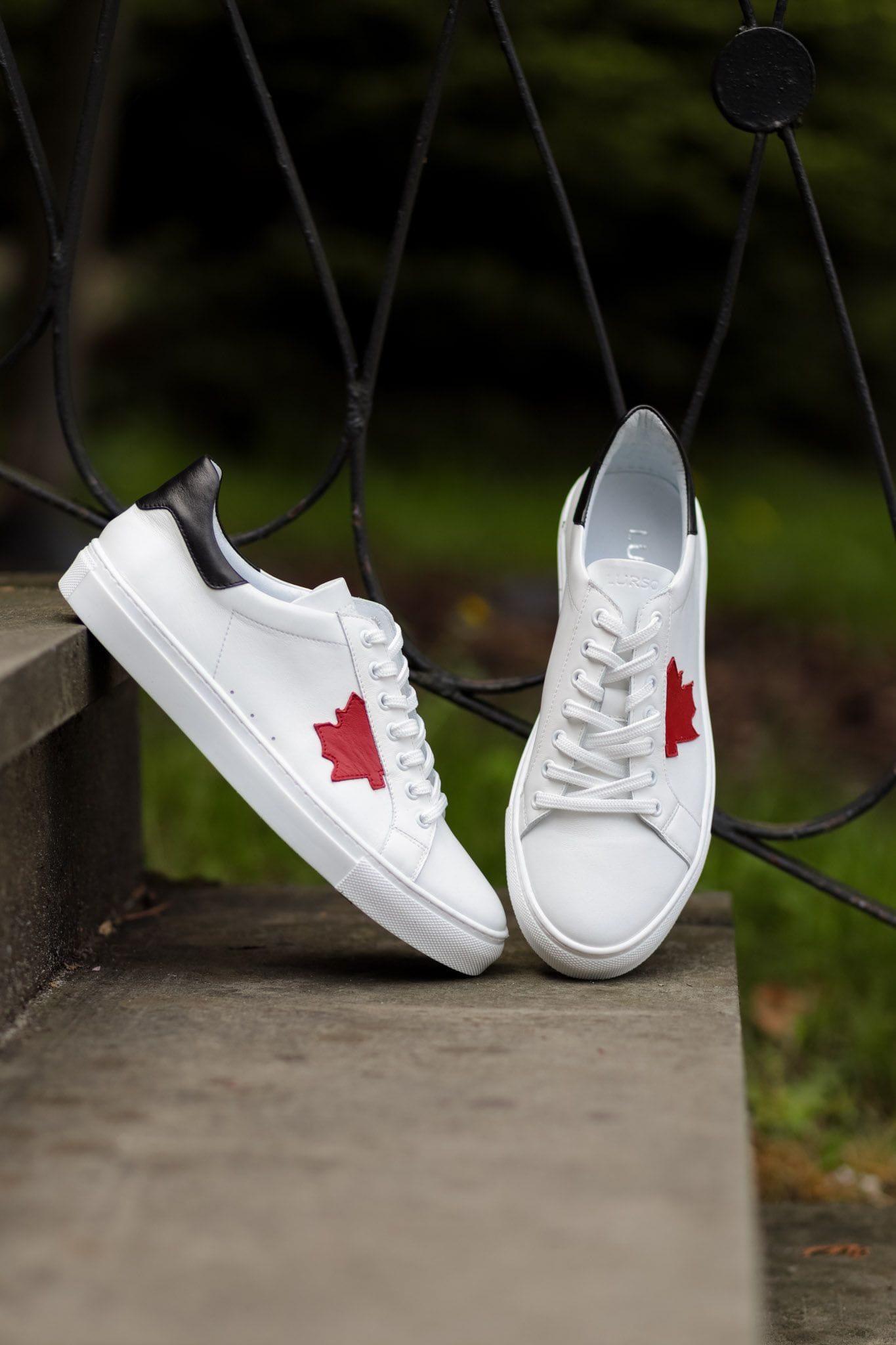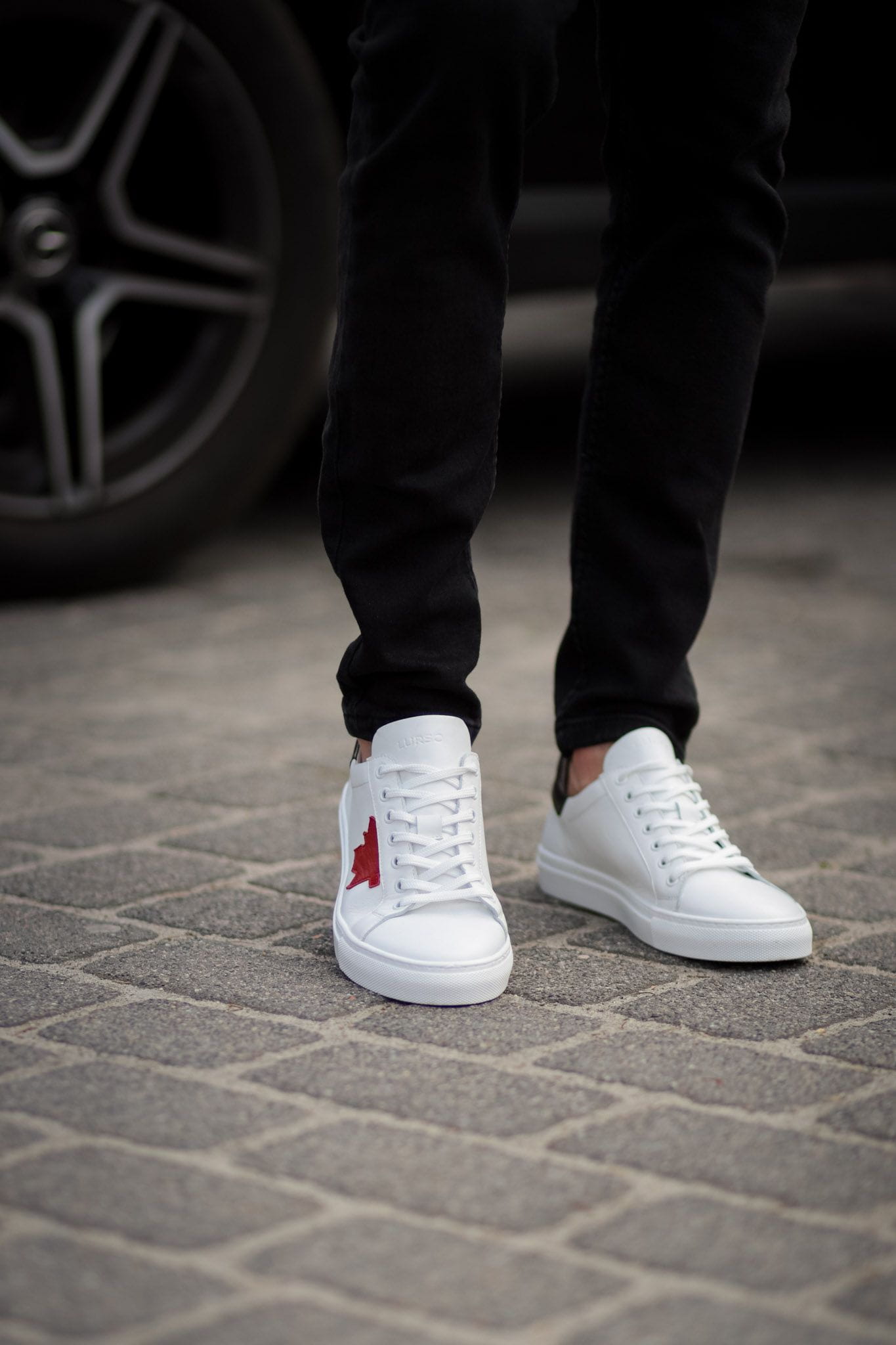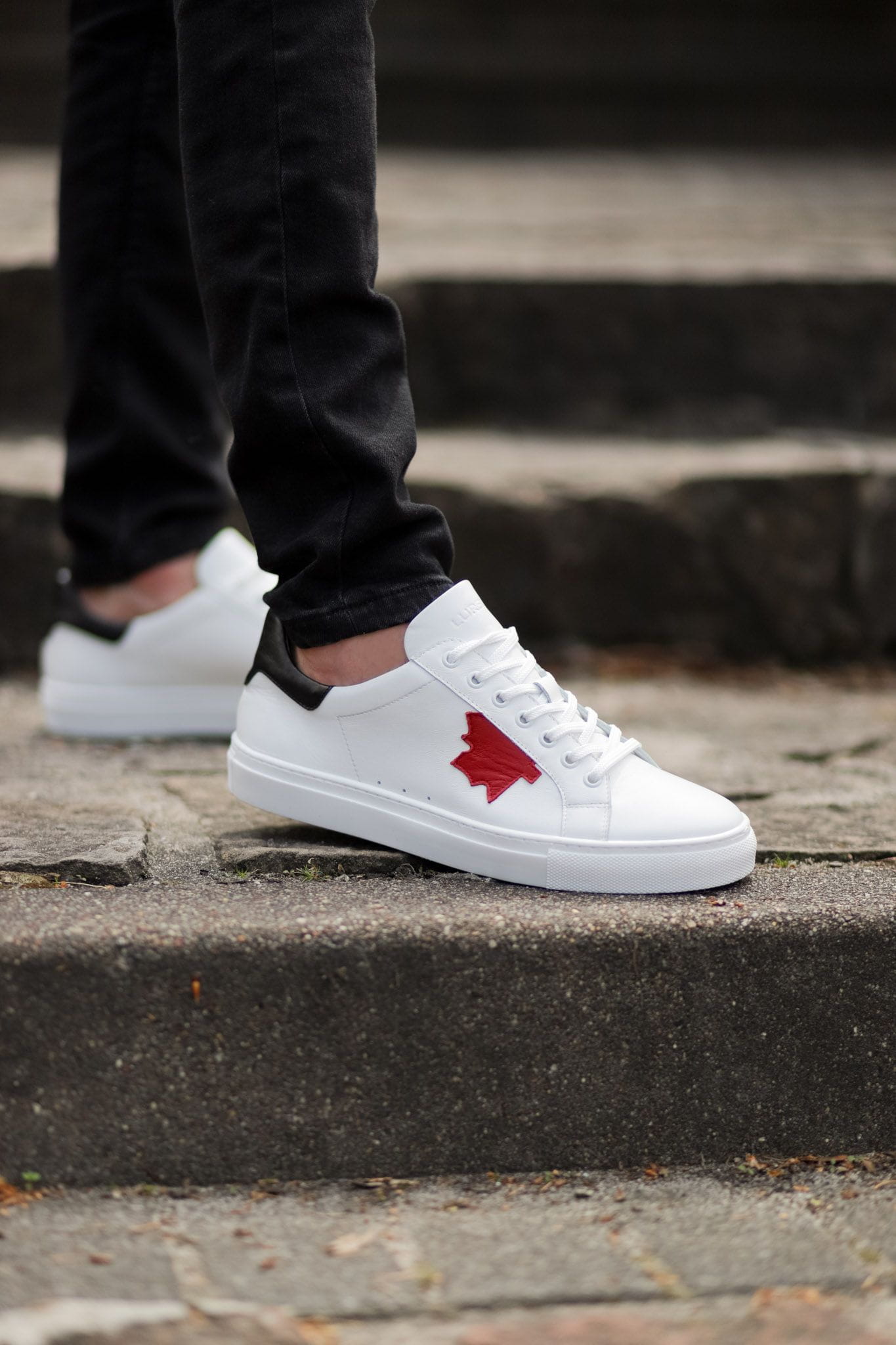 Biało-czerwone Trampki Męskie LURSO model YERRES WHITE/RED skóra naturalna