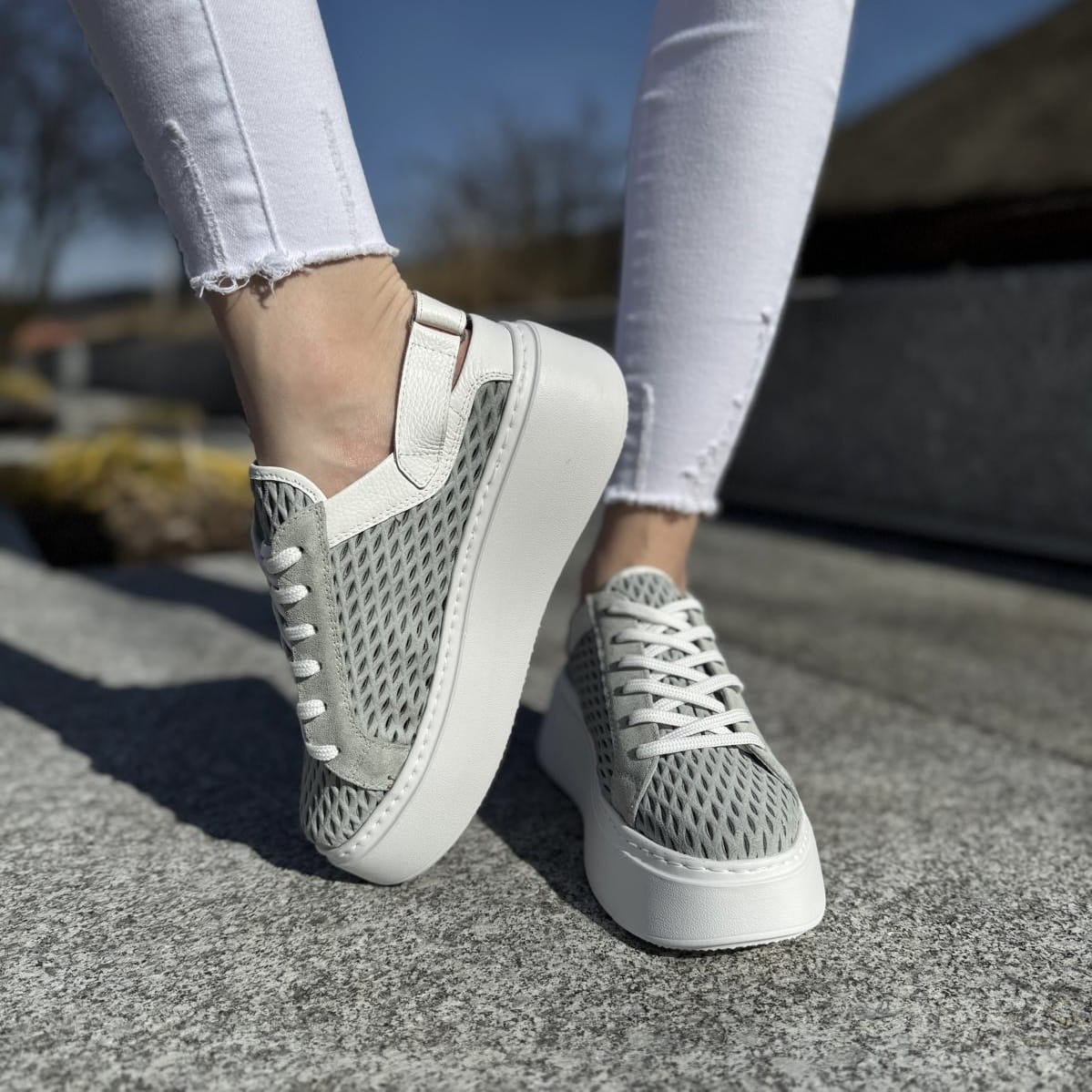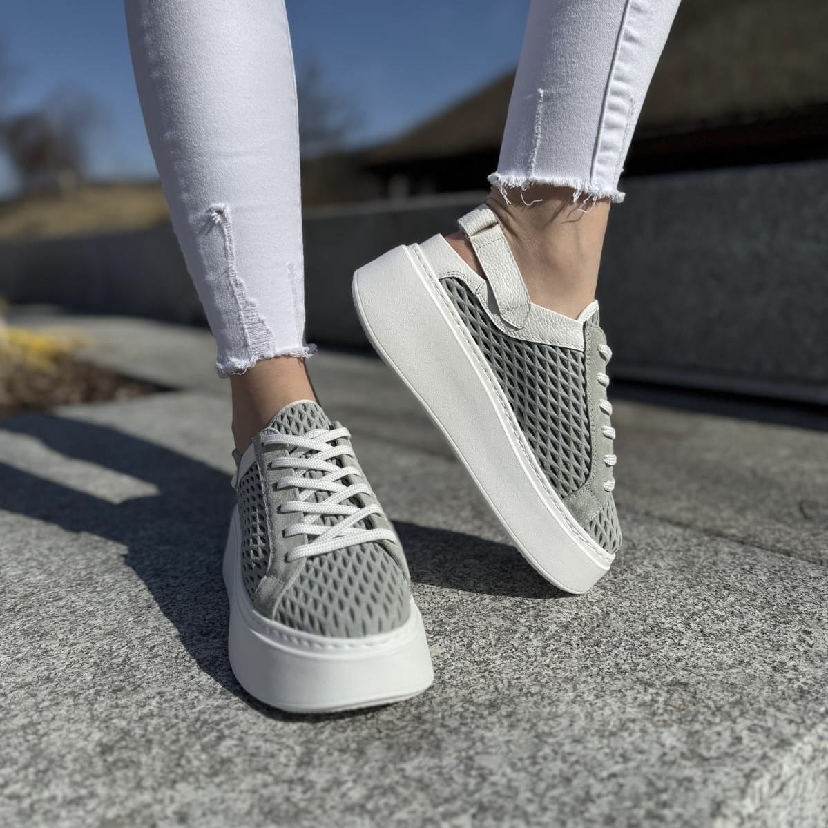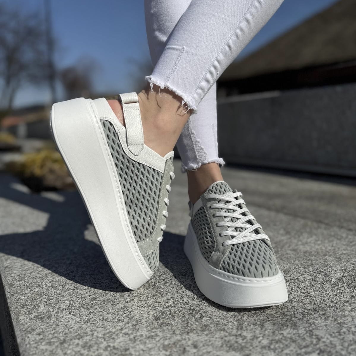 Cudowne sneakersy typu - sabot model Mals. Mega przewiewne ażurowe saboty, sznurowanie pozwala dopasować obuwie do tęgości stopy użytkownika. Dzięki zastosowanemu paskowi z tyłu z rzepą możliwe jest dociągnięcie butów aby nie spadały. Buty pięknie wyglądają na nodze.