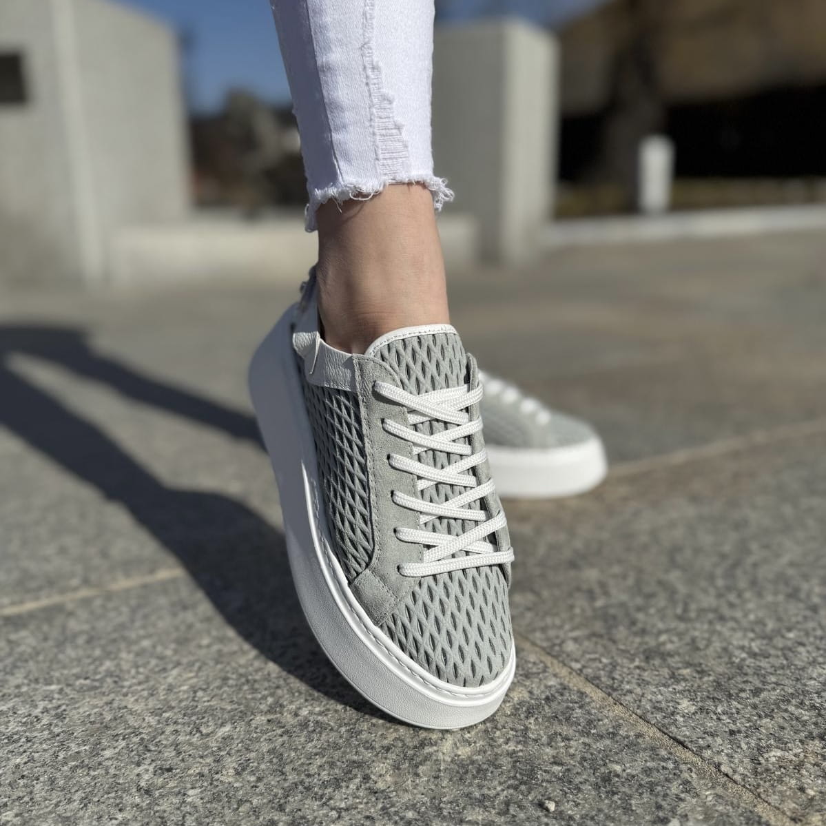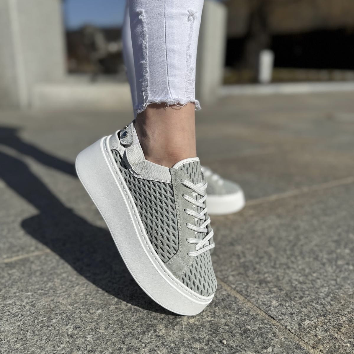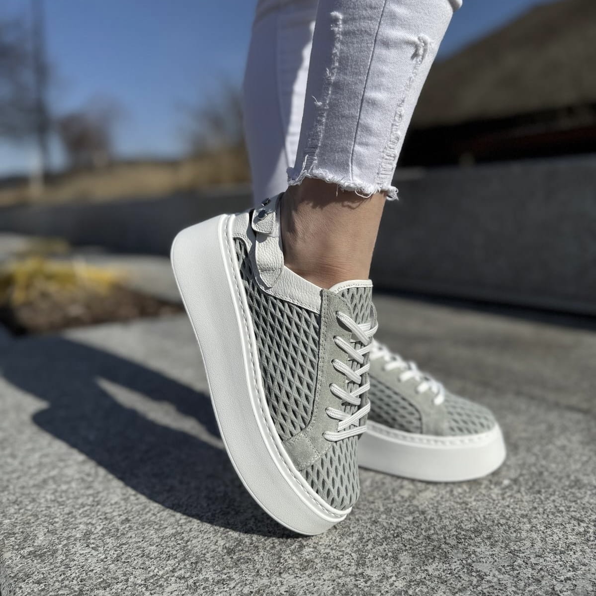 Cudowne sneakersy typu - sabot model Mals. Mega przewiewne ażurowe saboty, sznurowanie pozwala dopasować obuwie do tęgości stopy użytkownika. Dzięki zastosowanemu paskowi z tyłu z rzepą możliwe jest dociągnięcie butów aby nie spadały. Buty pięknie wyglądają na nodze.