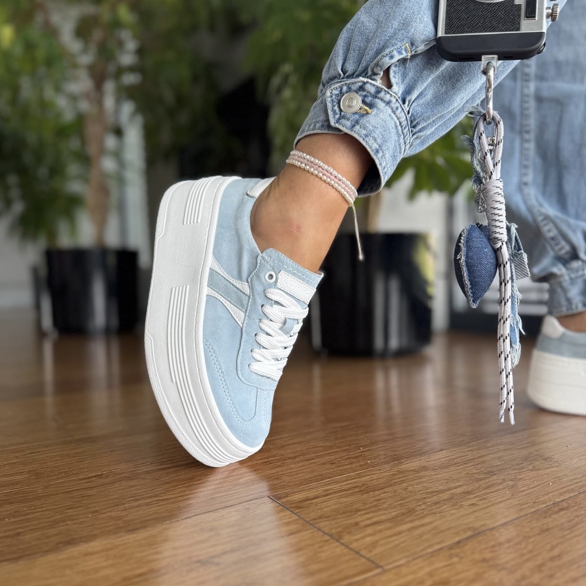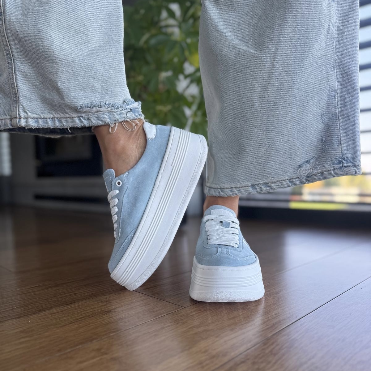 Błękitne Sneakersy Damskie na platformie TERME BLUE skóra naturalna