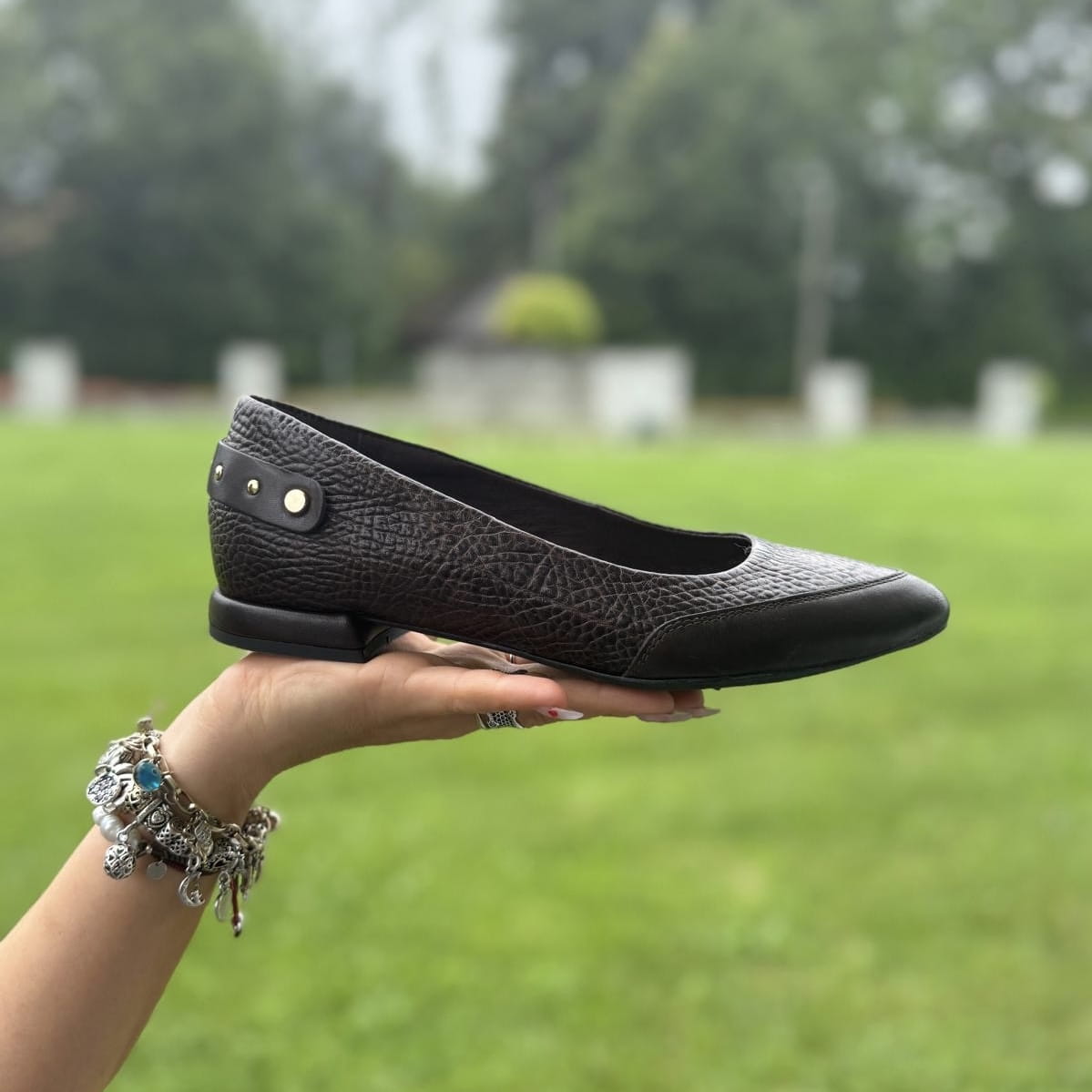 Baleriny model Morole to przepiękne buty. Klasyczny krój baleriny, który sprawdzi się do każdej stylizacji został położony na klasycznej podeszwie i oblekanym obcasie. Zastosowane połączenia skór przyciągają uwagę. Piękny ozdobny pasek z nitami podkreśla wyjątkowość modelu. Jest to wzór który znajdzie zastosowanie tak w klasycznych stylizacji jak i w tych bardziej modowych.