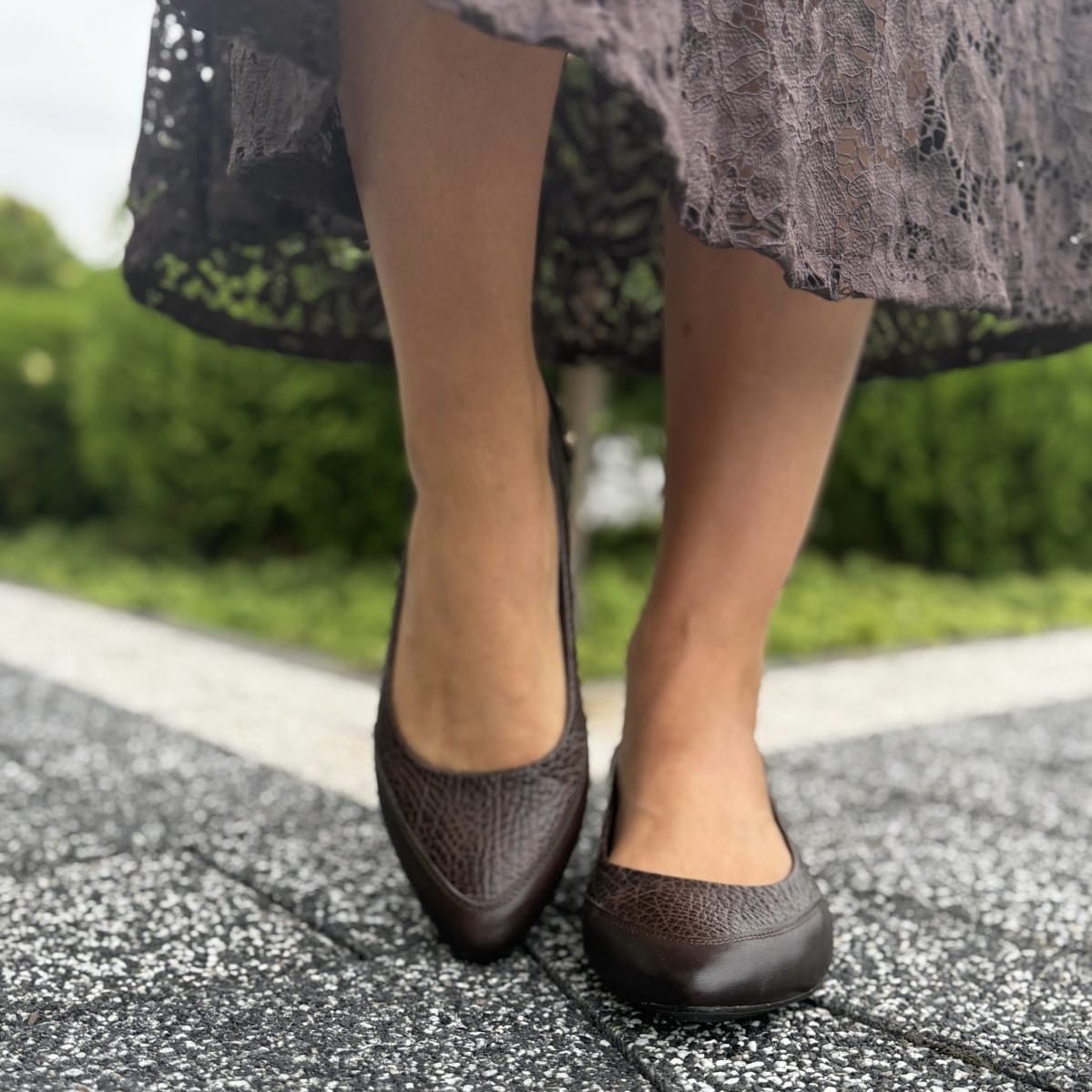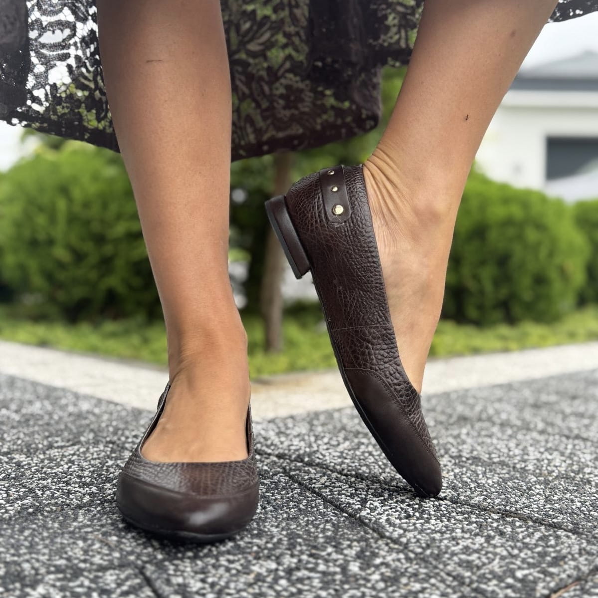 Brązowe Baleriny Damskie LURSO model MOROLO BROWN skóra naturalna