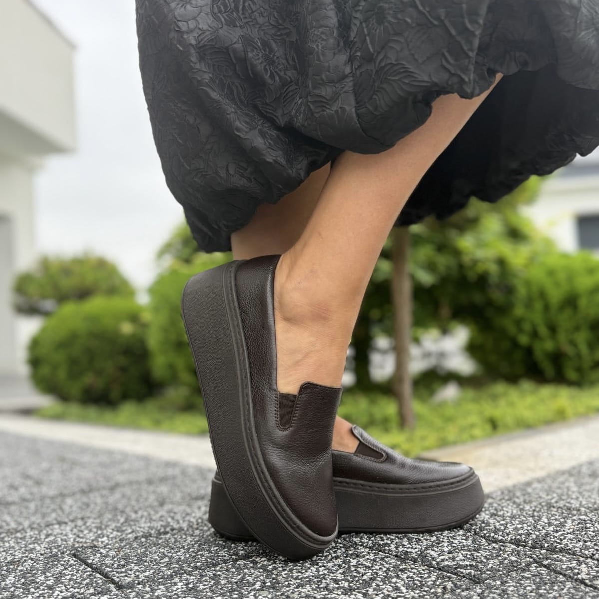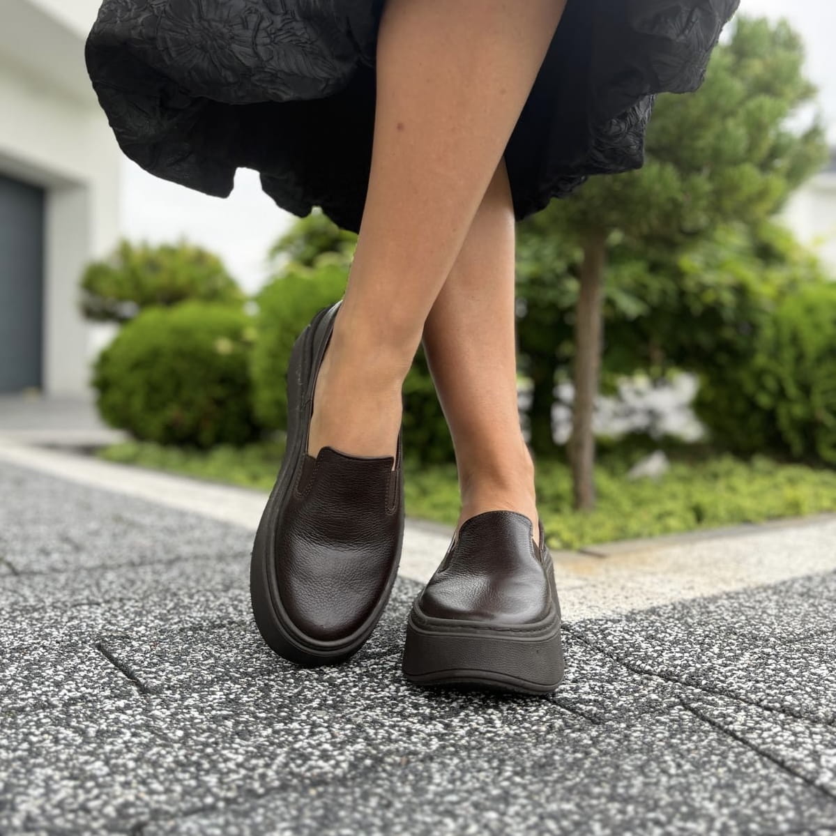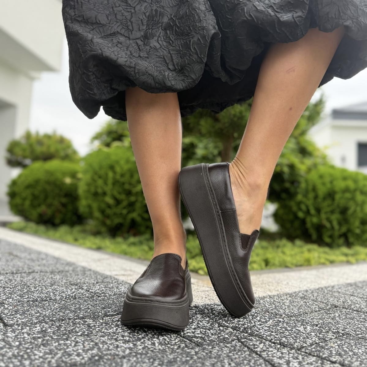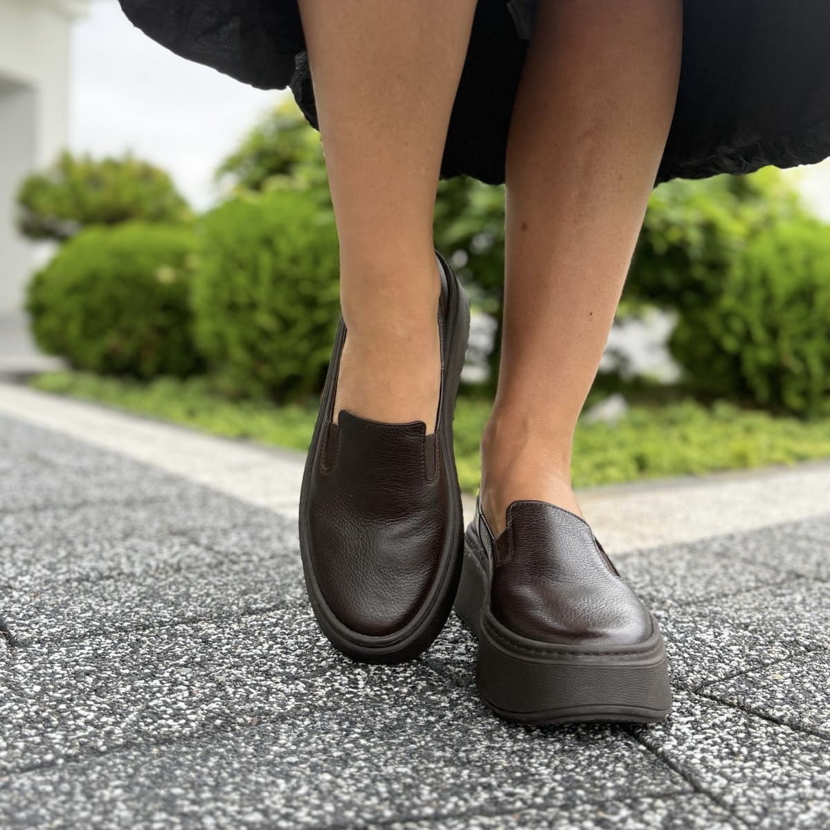 Brązowe Slipony Damskie LURSO na podwyższonej podeszwie model ELINI CHOCOLATE BROWN skóra naturalna
