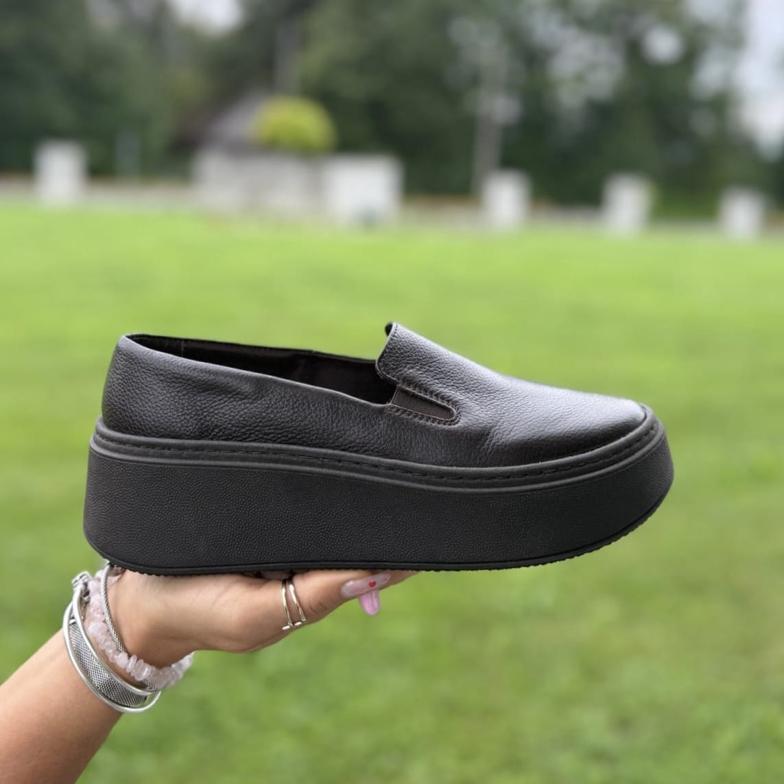 Przepiękny model Elini. Klasyczny slipon w cudownym kolorze czekoladowym brązie. Buty w całości wykonany ze skóry naturalne. Wzór wykonany jest na bardzo wygodnej podwyższanej podeszwie.