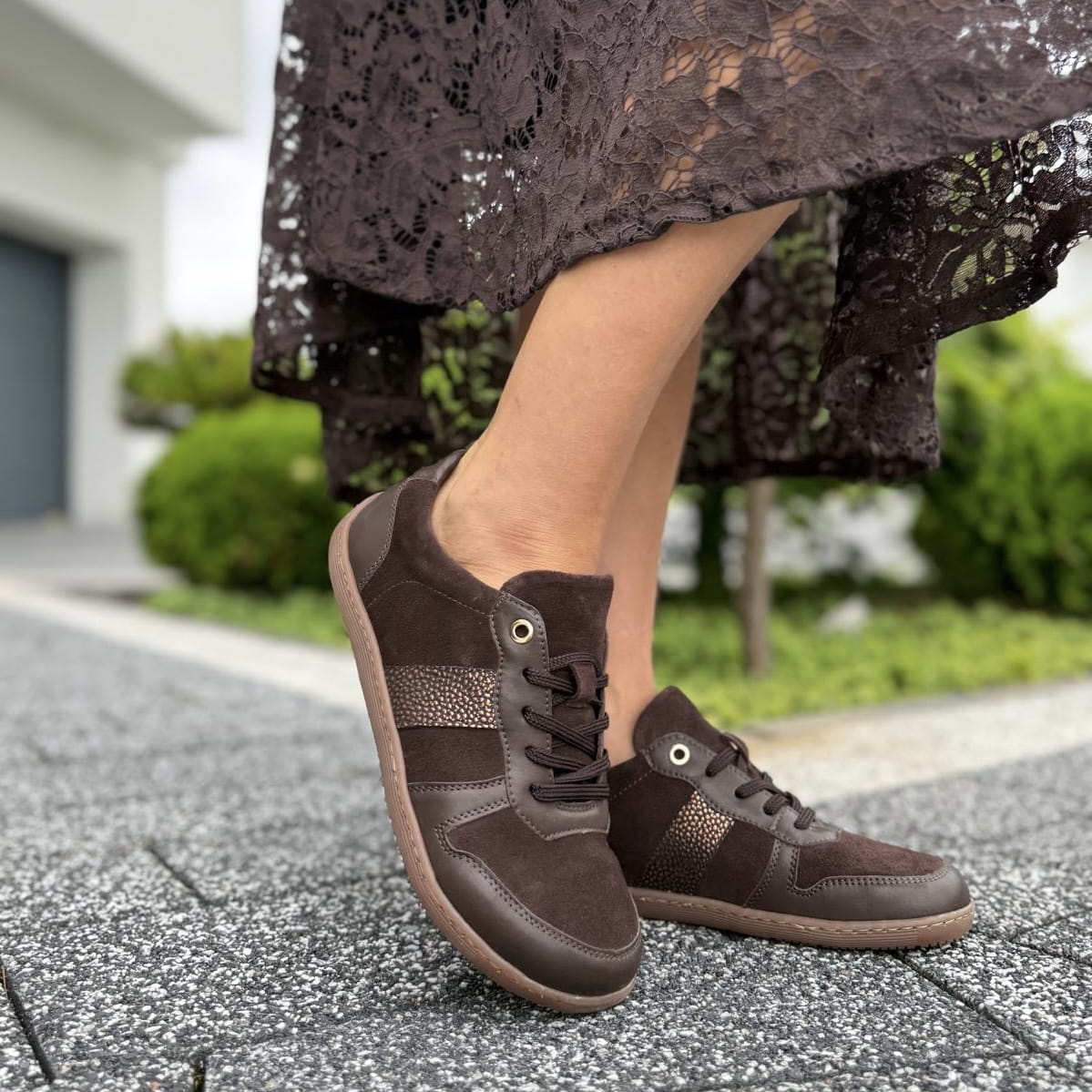Brązowe Trampki Damskie LURSO typu barefoot model PIGLIO BROWN skóra naturalna