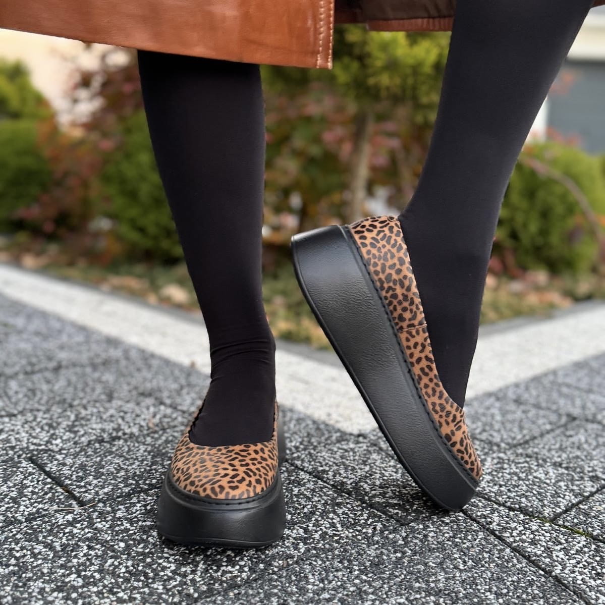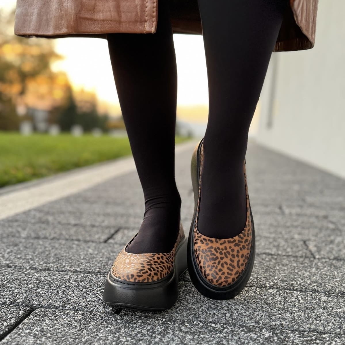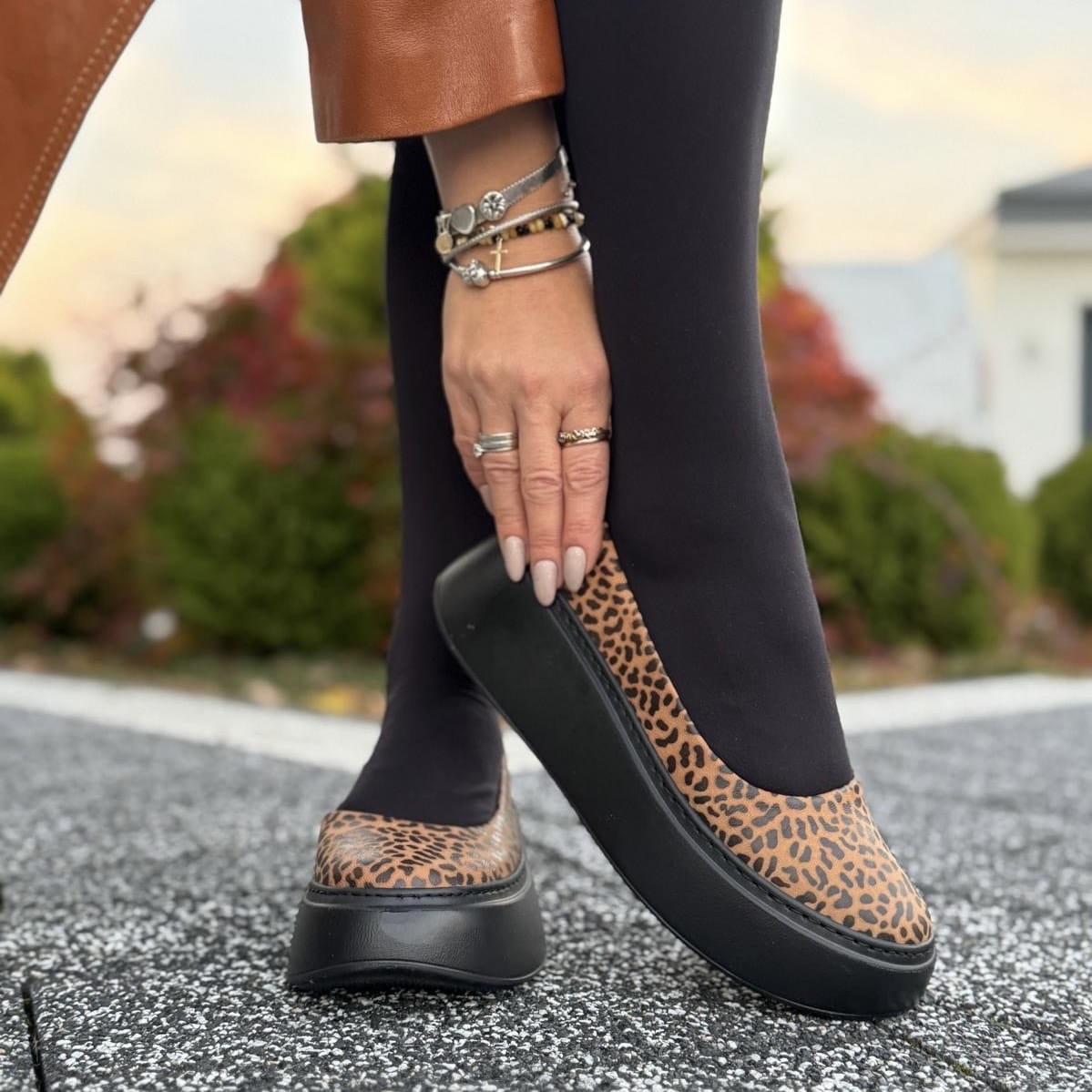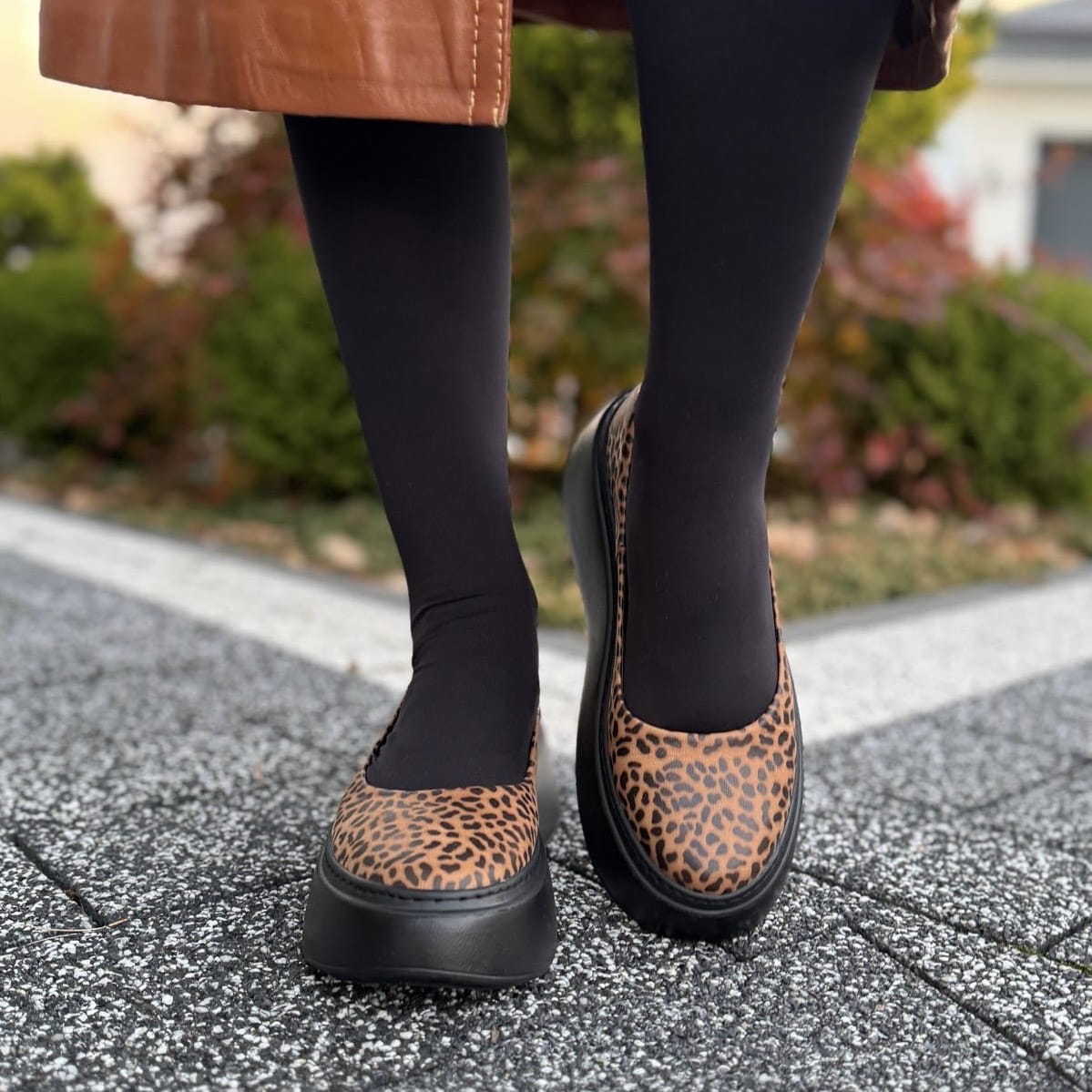 Cętkowane Baleriny Damskie LURSO model FRISO BROWN skóra naturalna