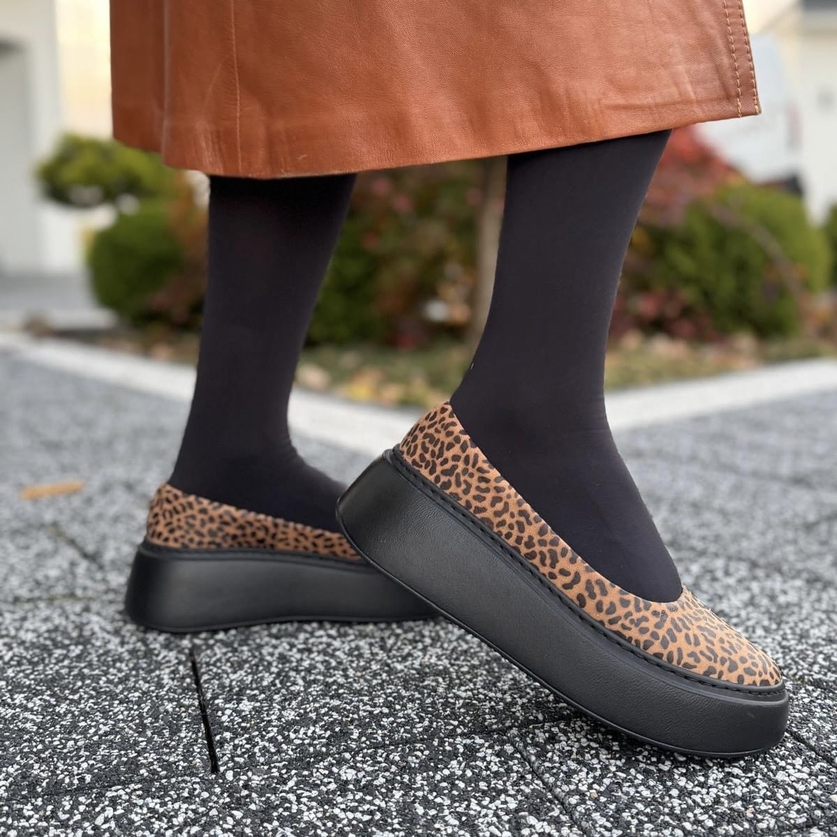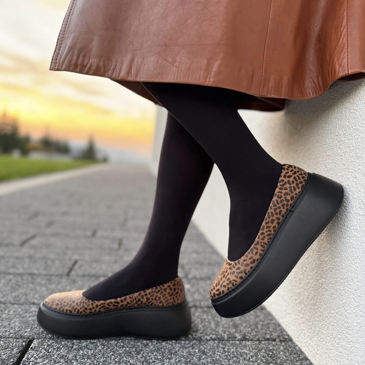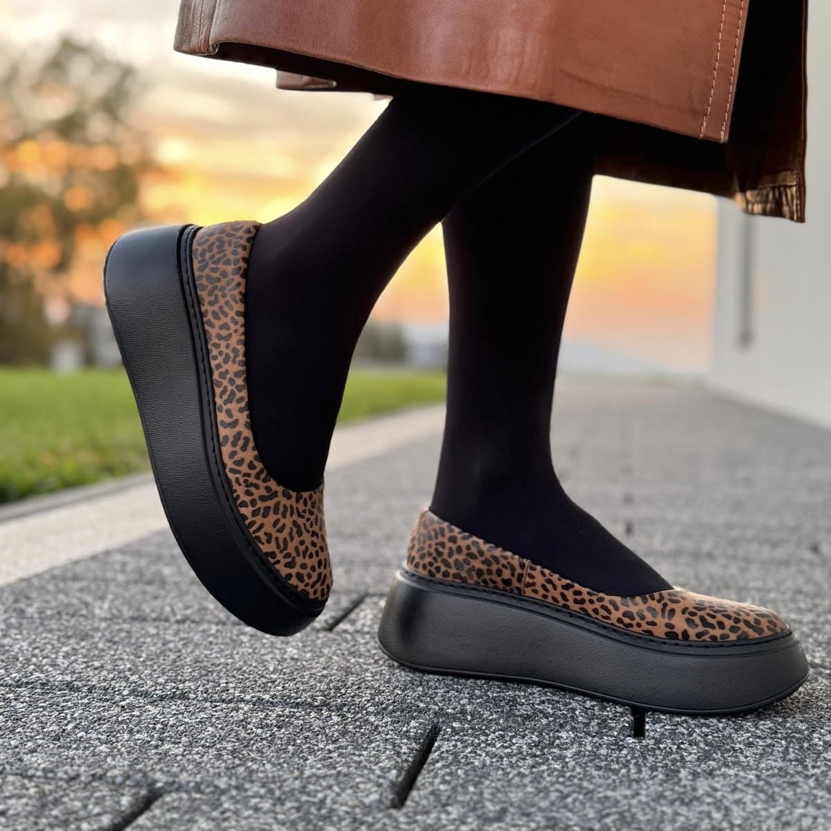Cętkowane Baleriny Damskie LURSO model FRISO BROWN skóra naturalna
