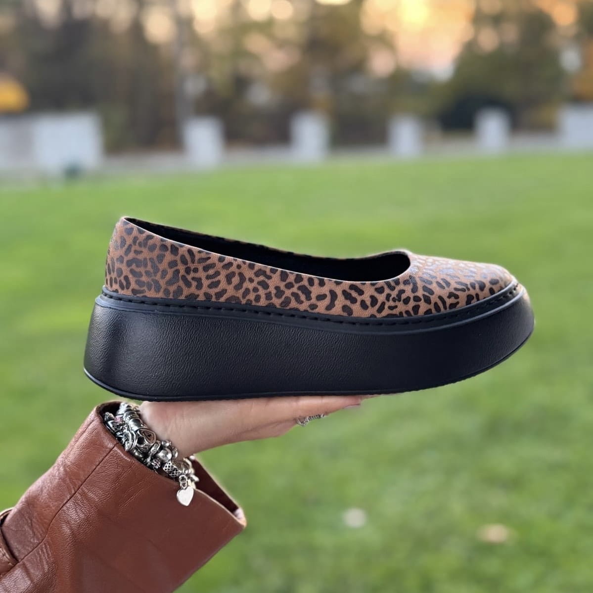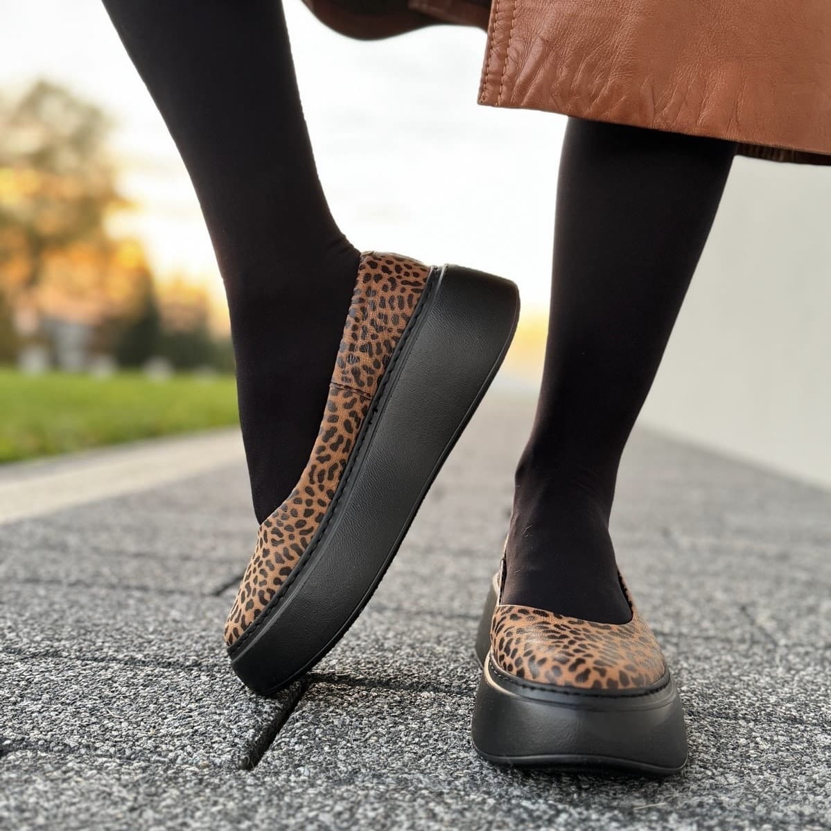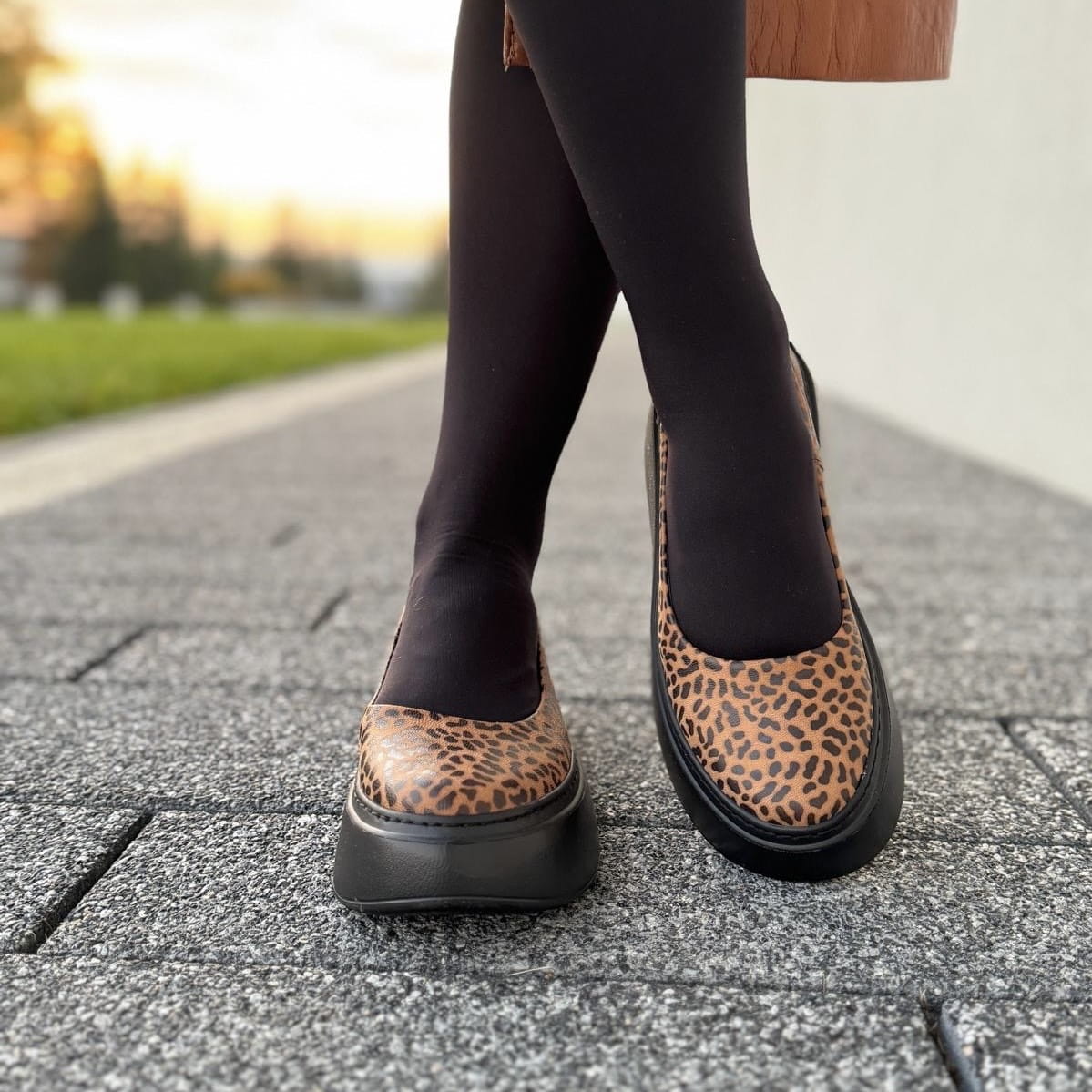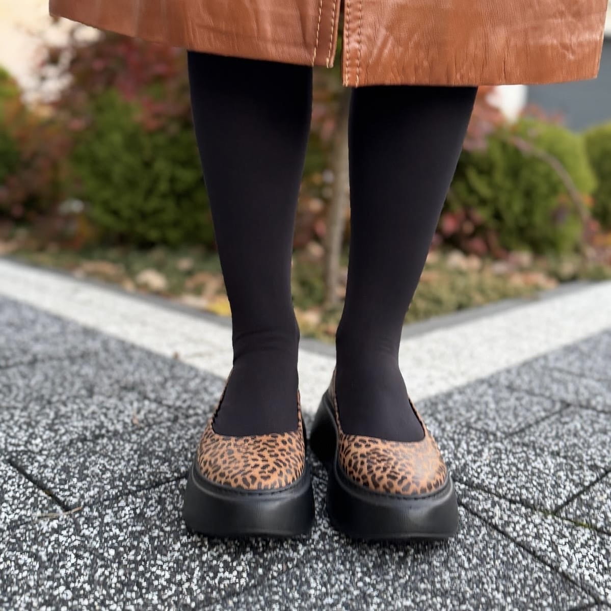 Cętkowane Baleriny Damskie LURSO model FRISO BROWN skóra naturalna