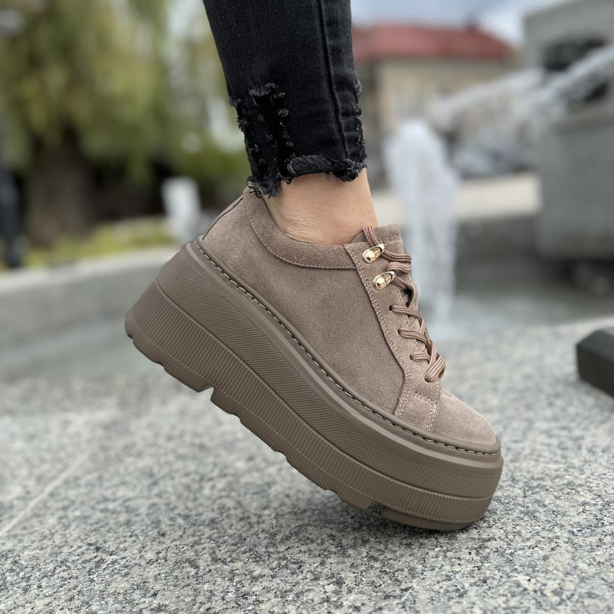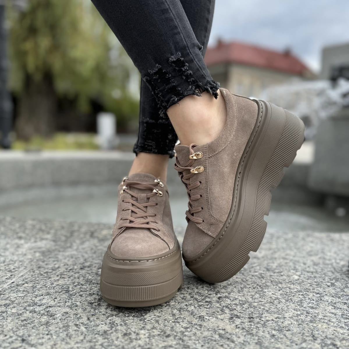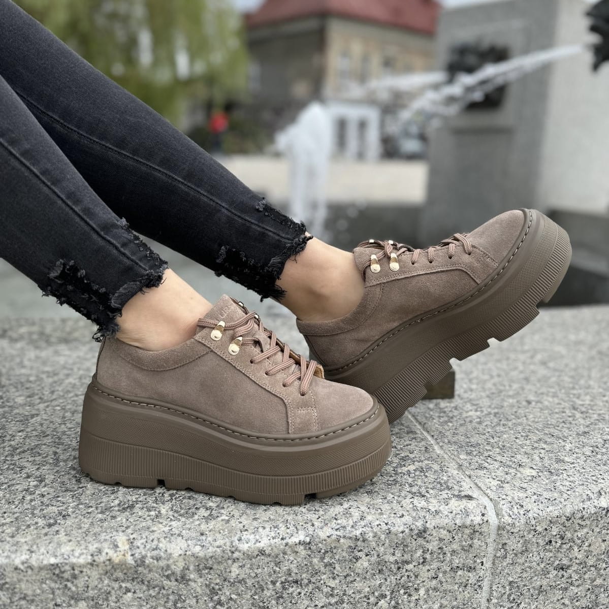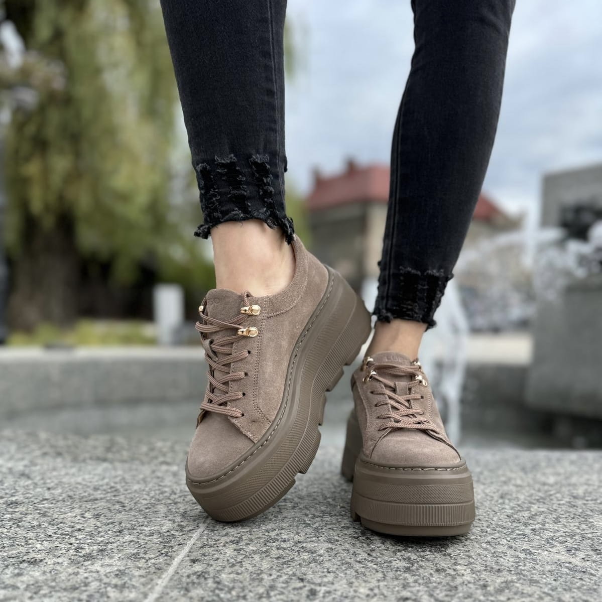 Ciemno beżowe Sneakersy Damskie na podwyższonej podeszwie GELA TAUPE