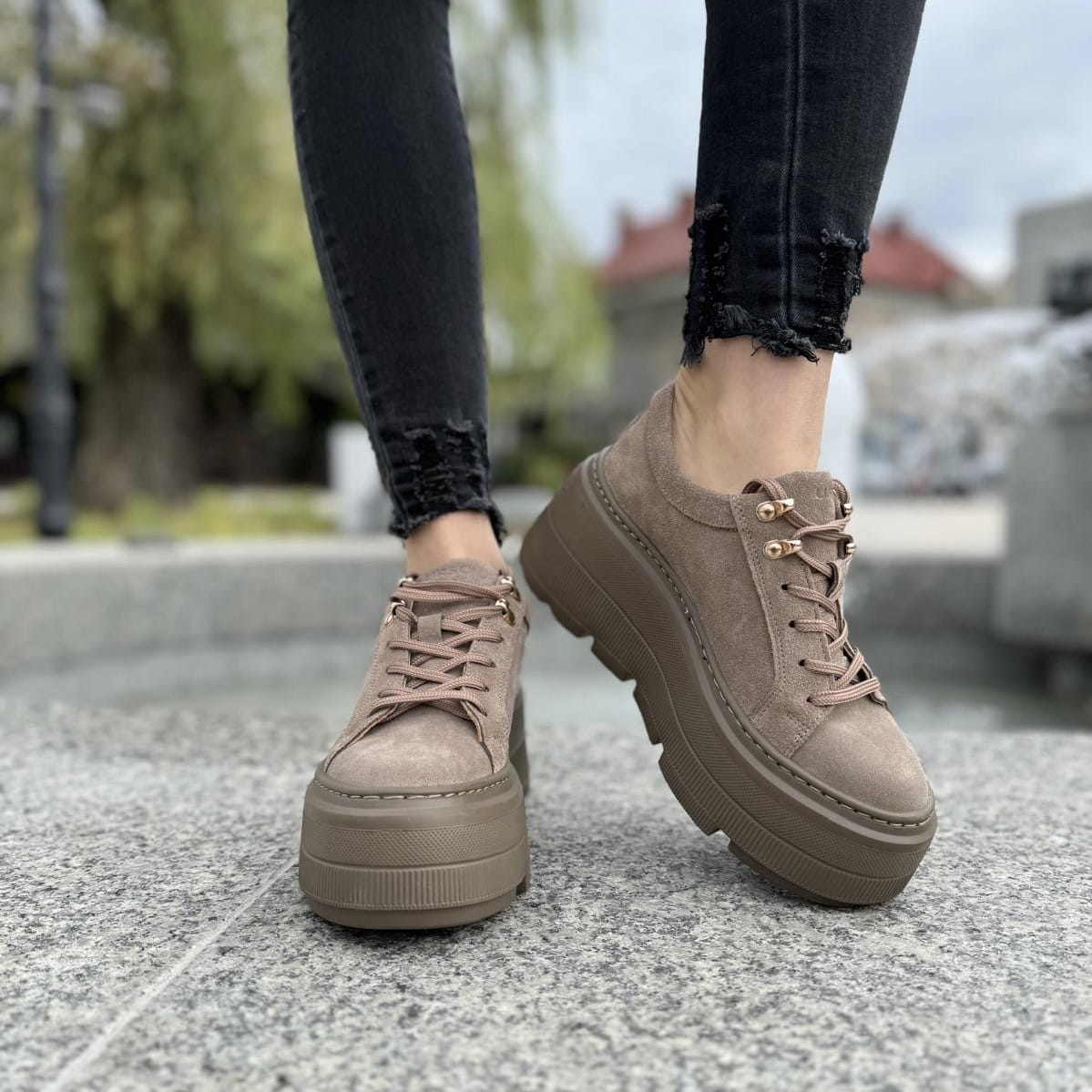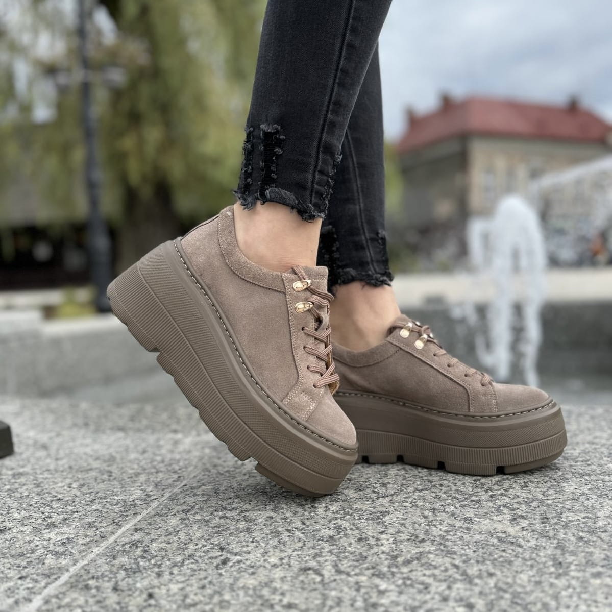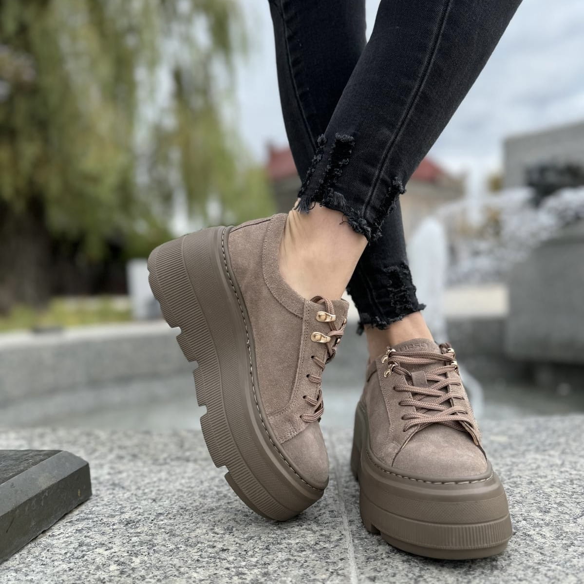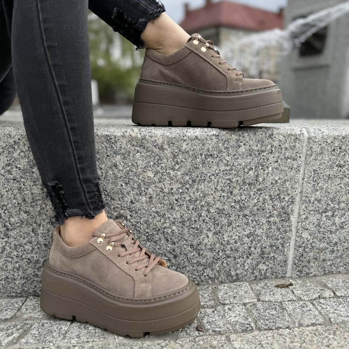 Ciemno beżowe Sneakersy Damskie na podwyższonej podeszwie GELA TAUPE