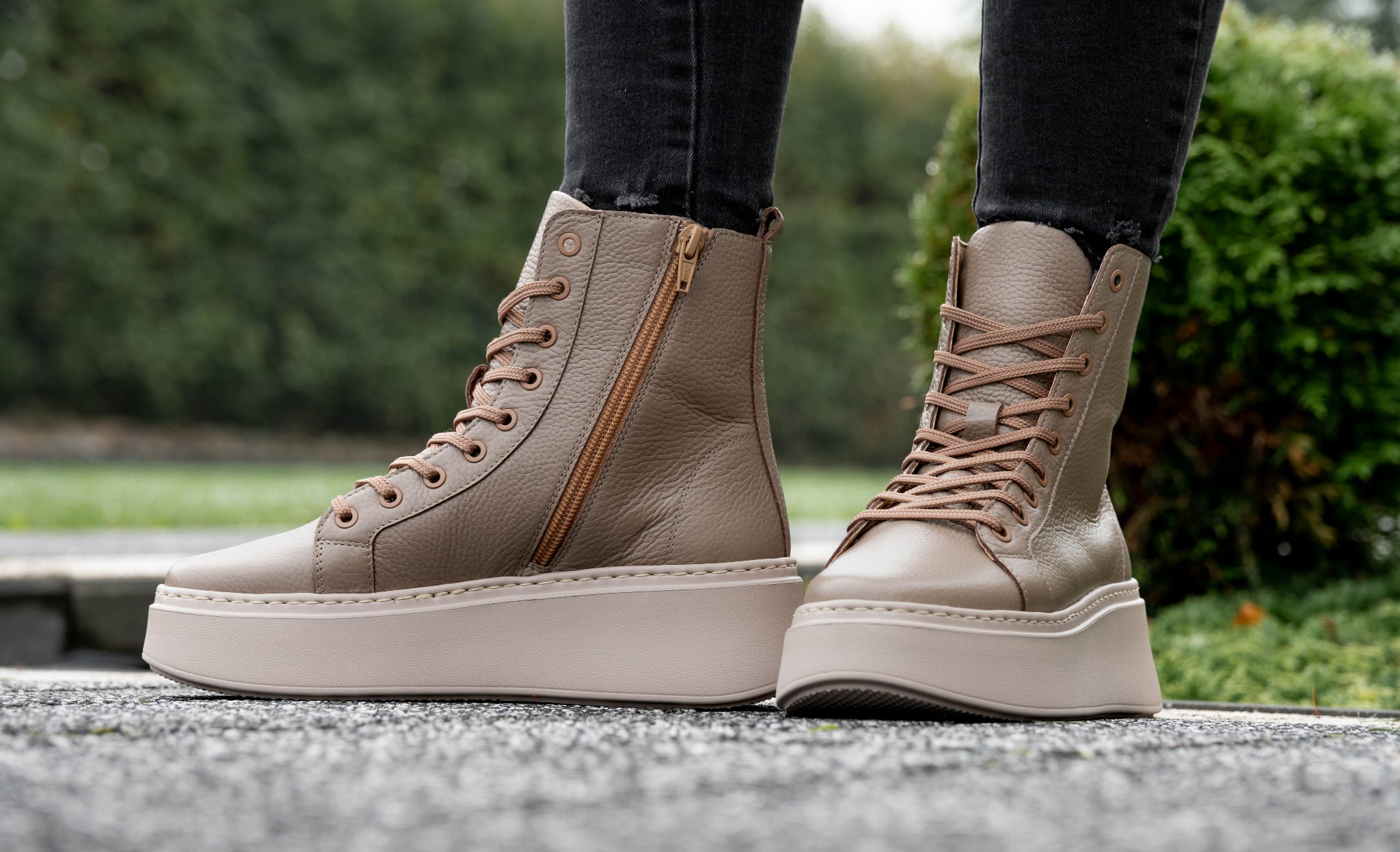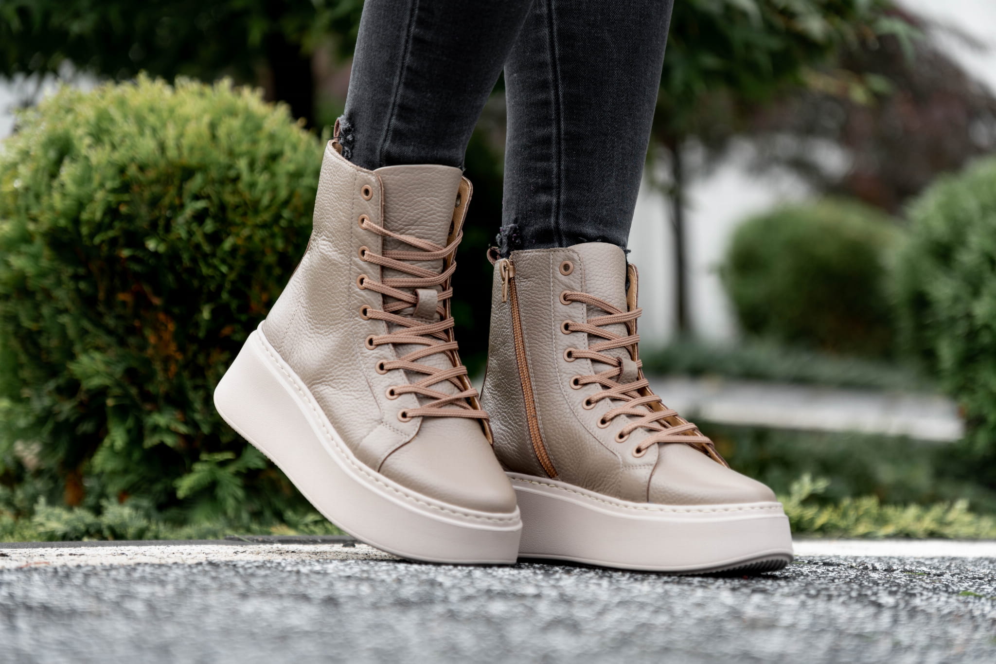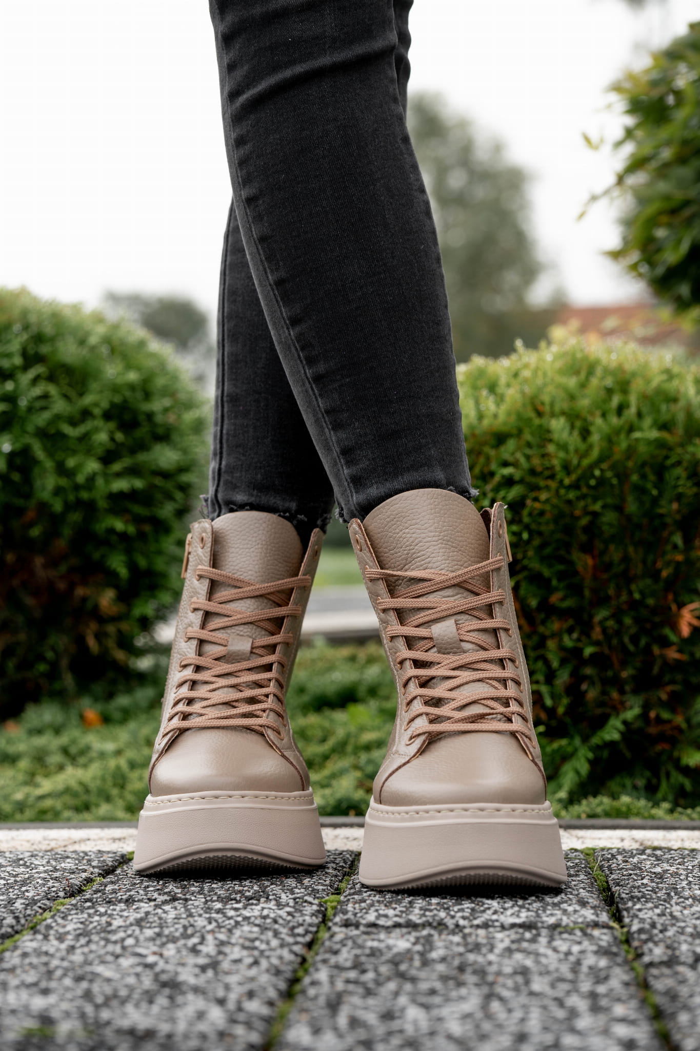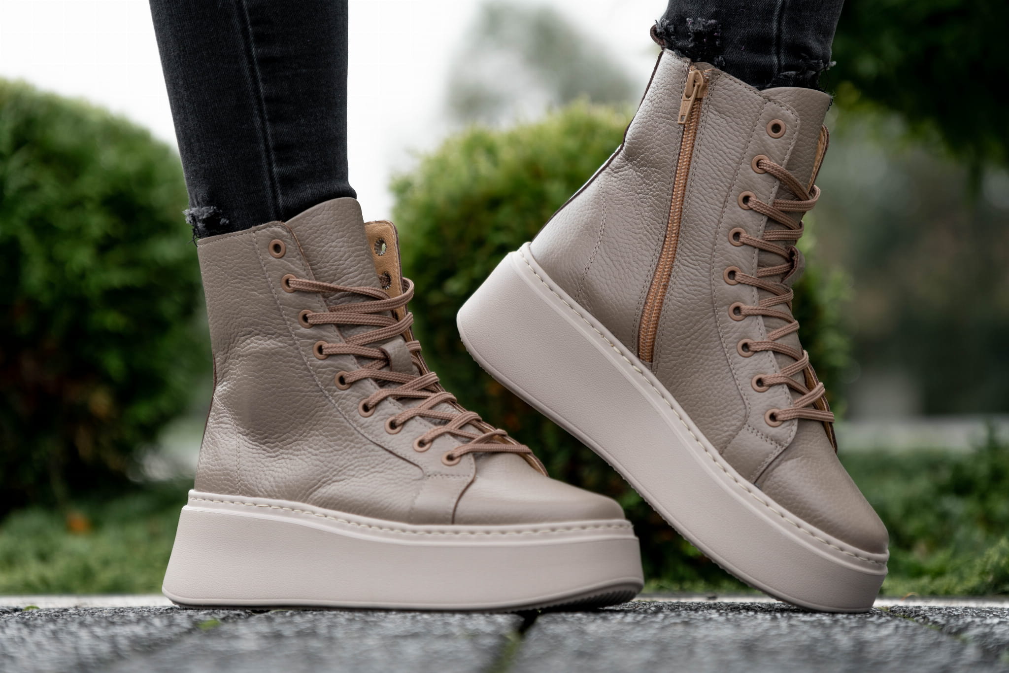 Ciemno beżowy Sneakers Damski LURSO z podwyższoną cholewą model TAYLOR BEIGE